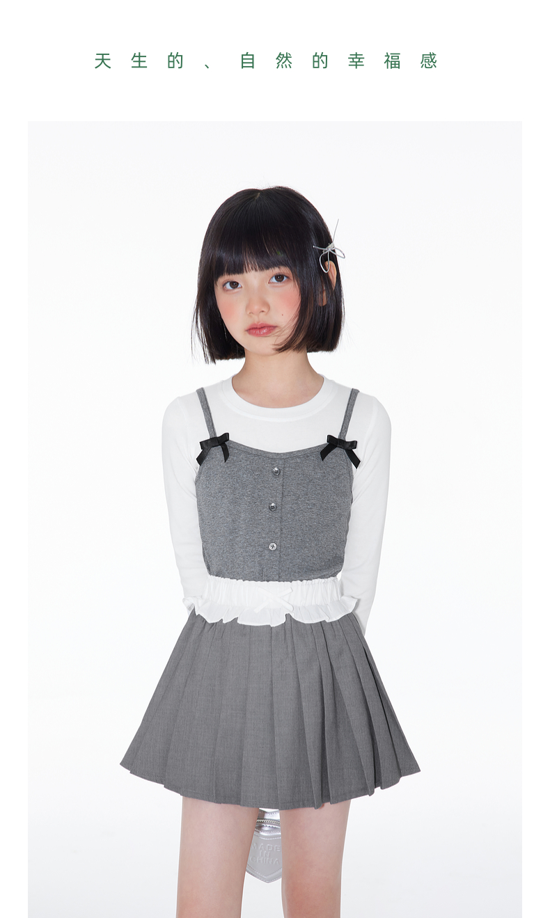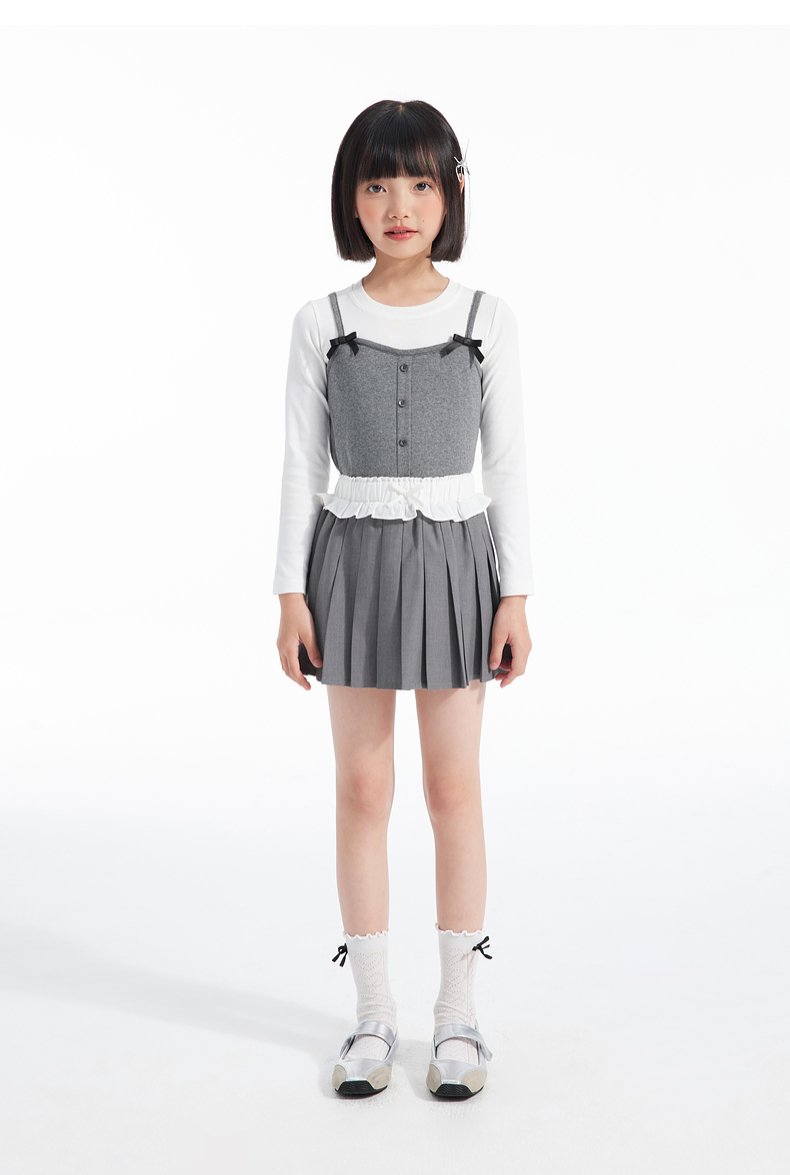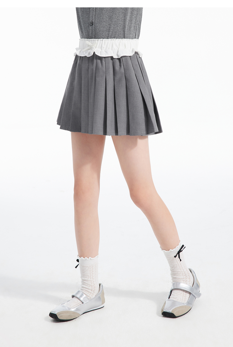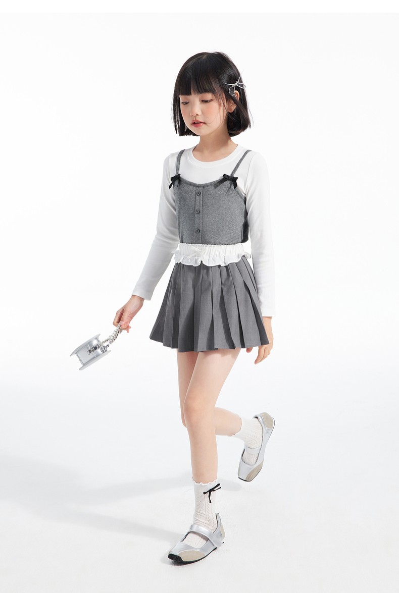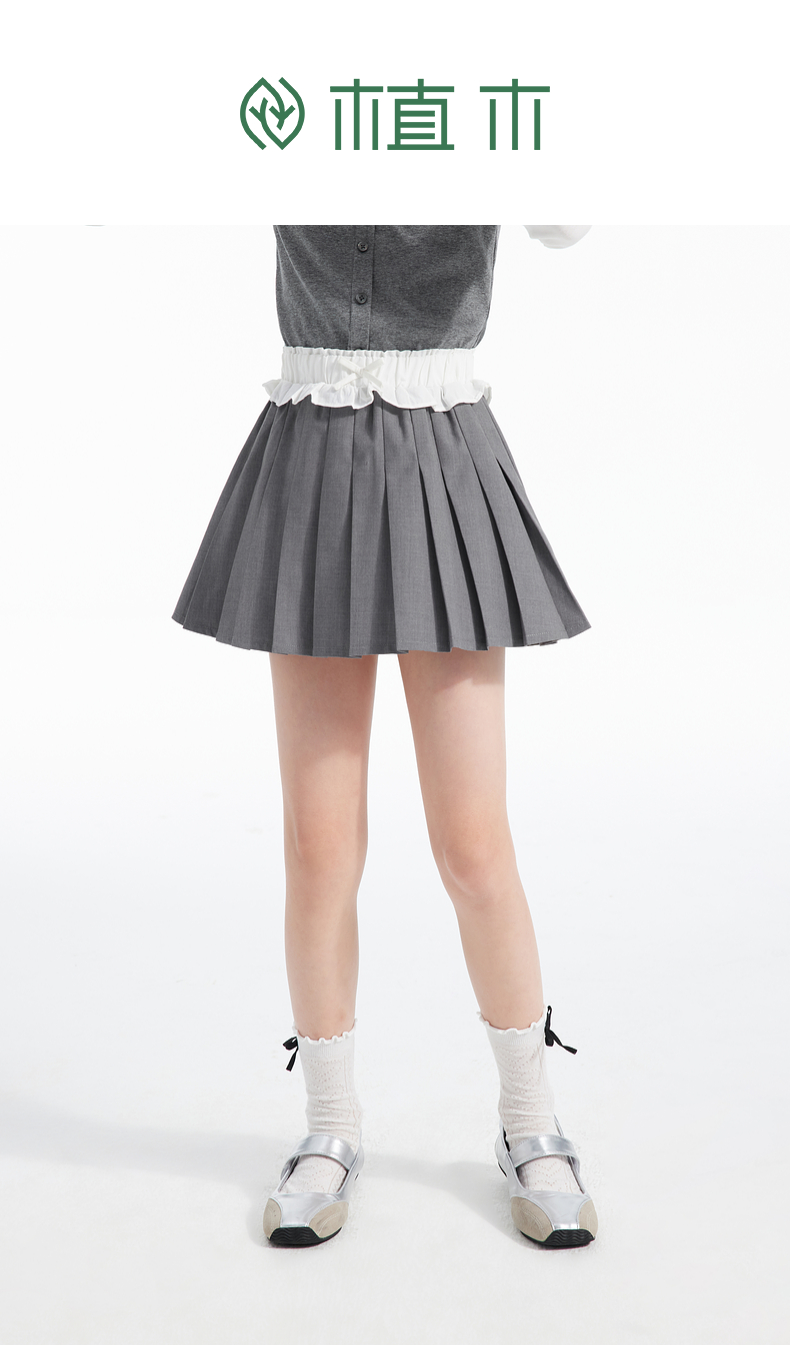 植木童装女童裙子2025春季新款中大童蝴蝶结百褶半身裙儿童半身裙