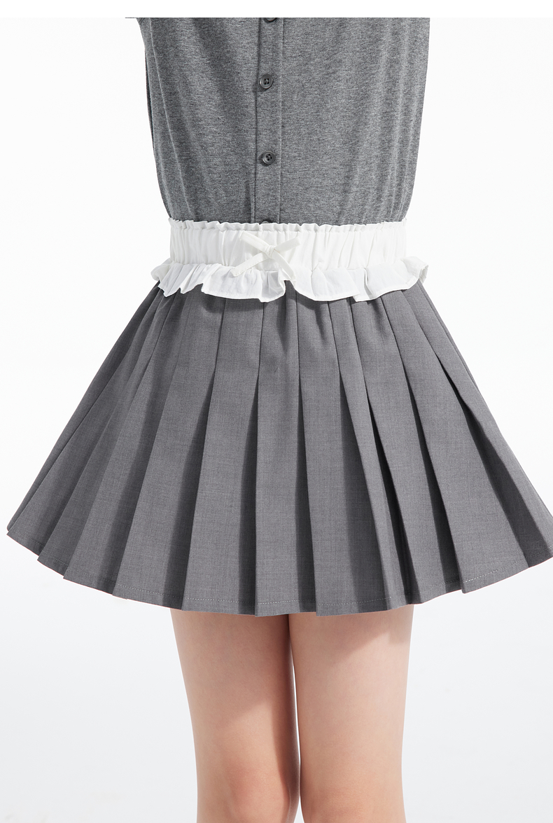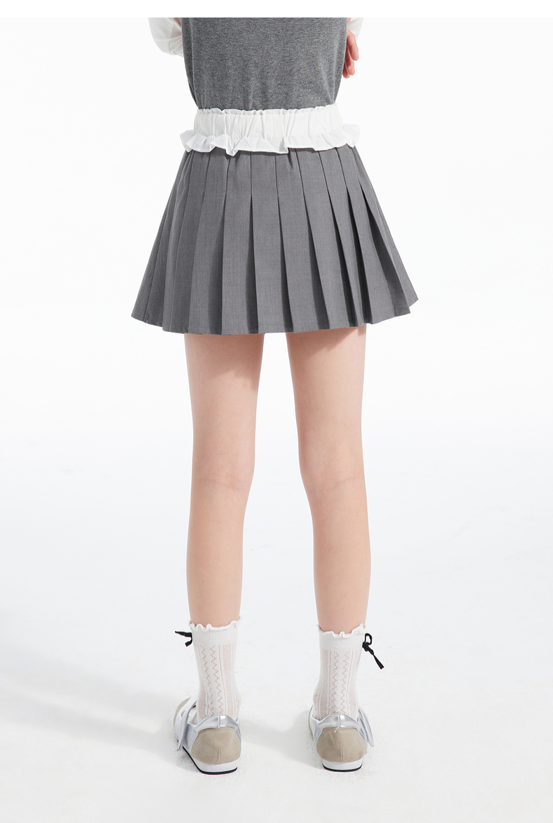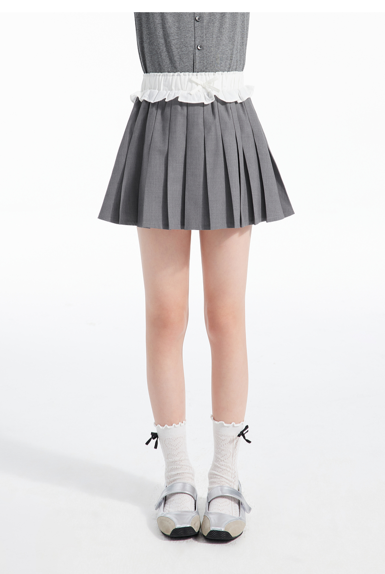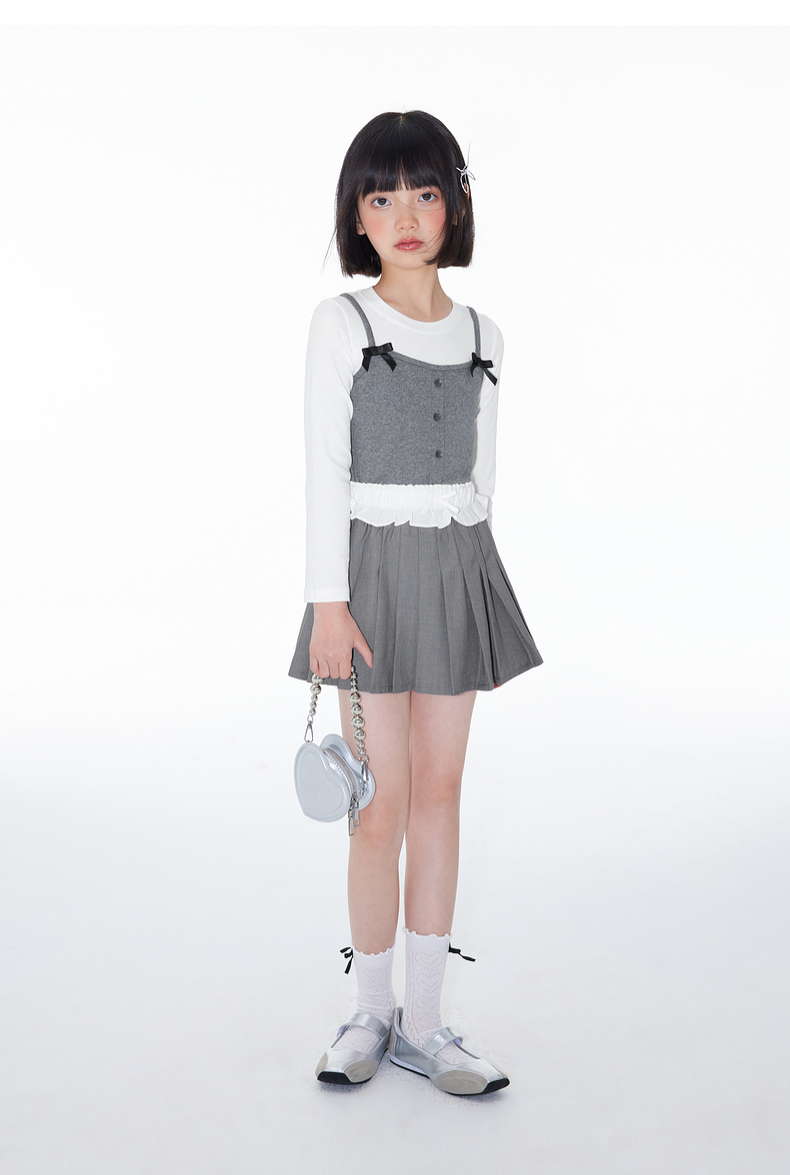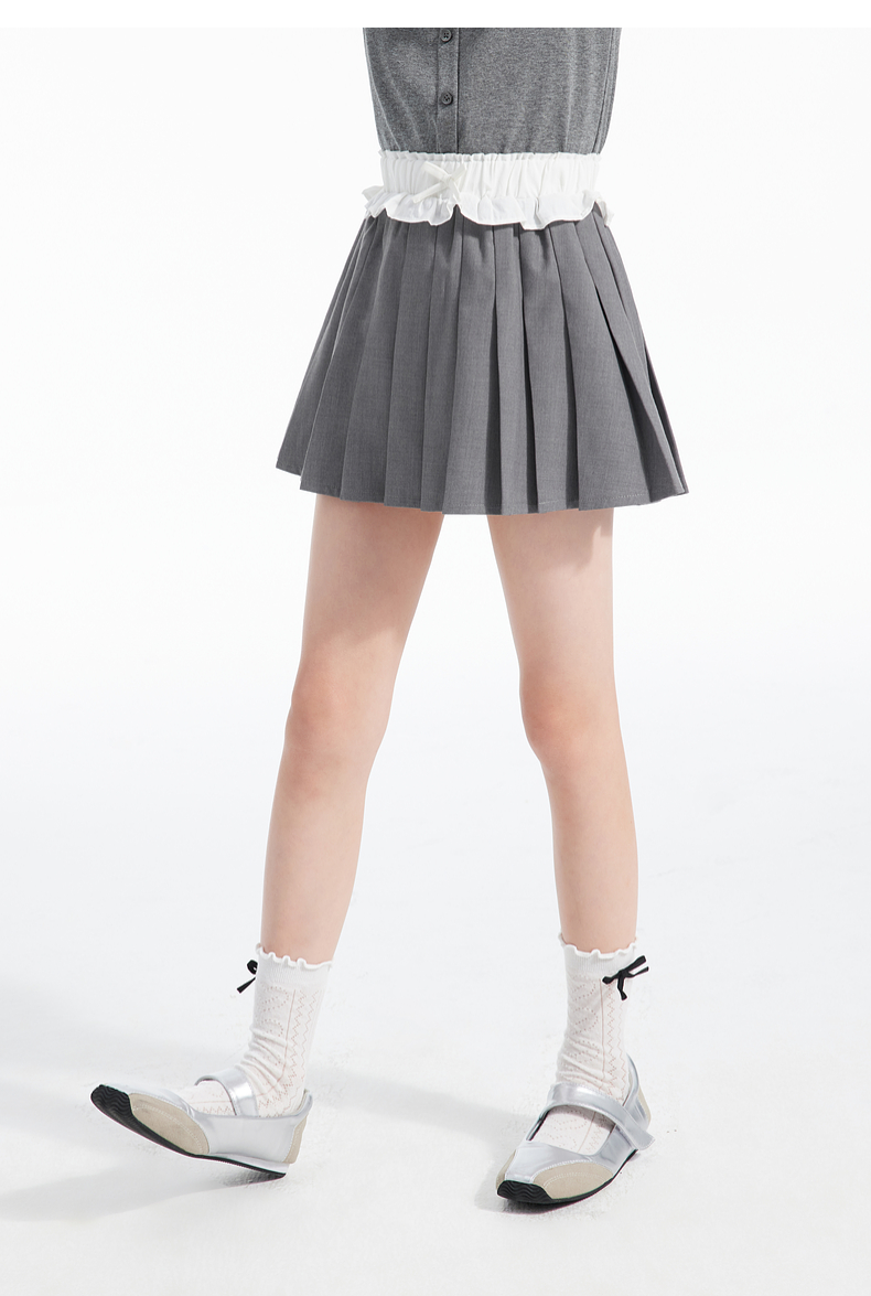 植木童装女童裙子2025春季新款中大童蝴蝶结百褶半身裙儿童半身裙