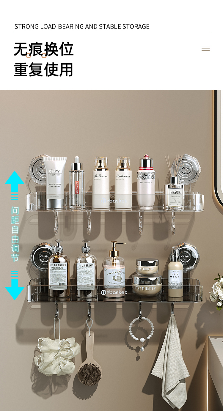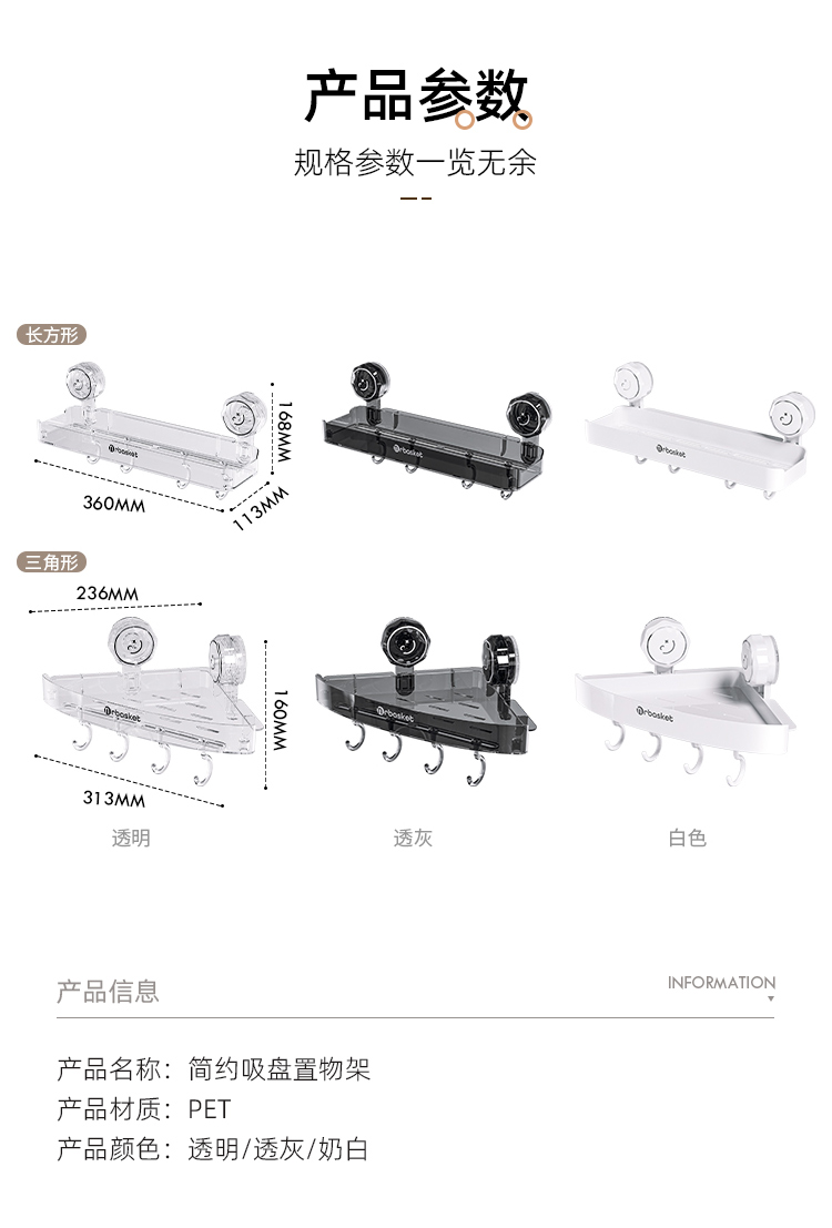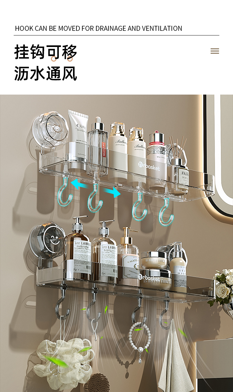 吸盘置物架浴室壁挂厕所洗手台洗漱用品挂墙架免打孔卫生间收纳架