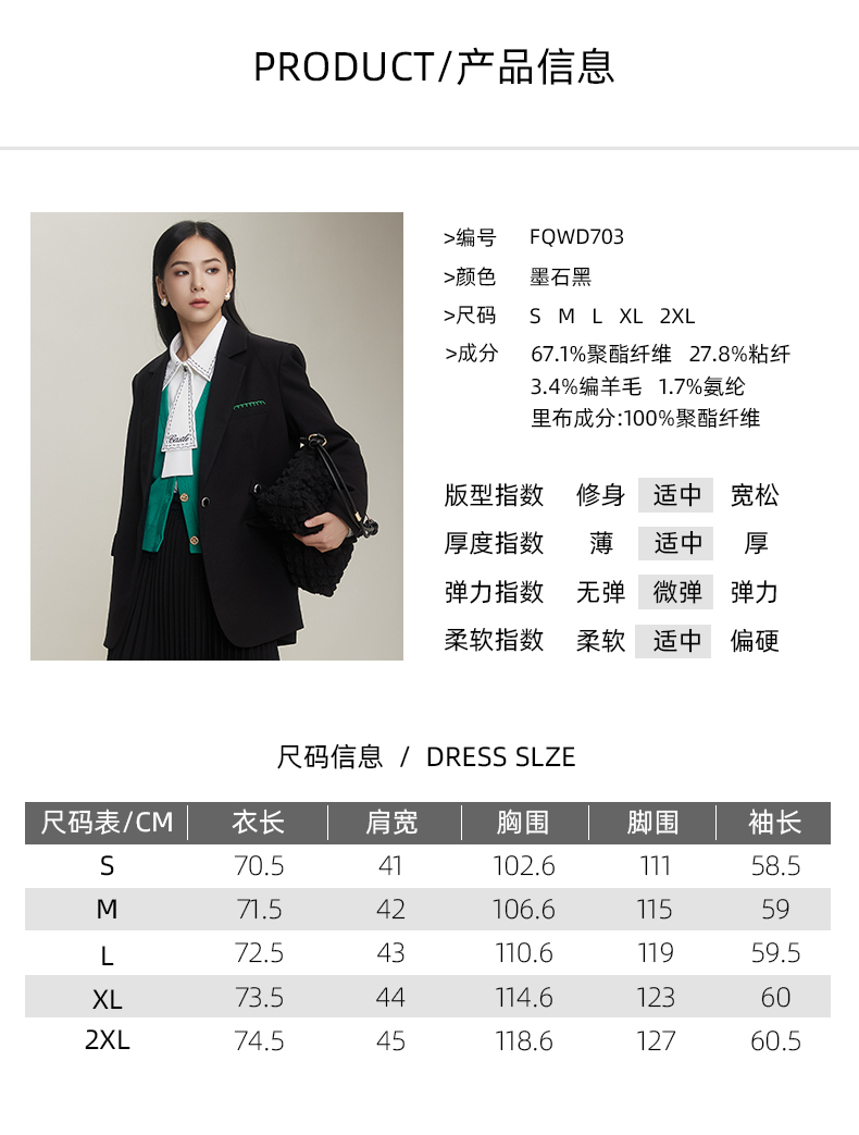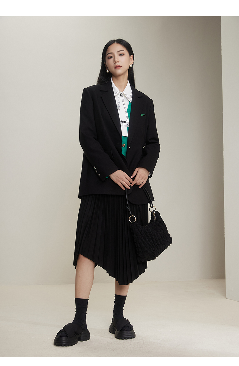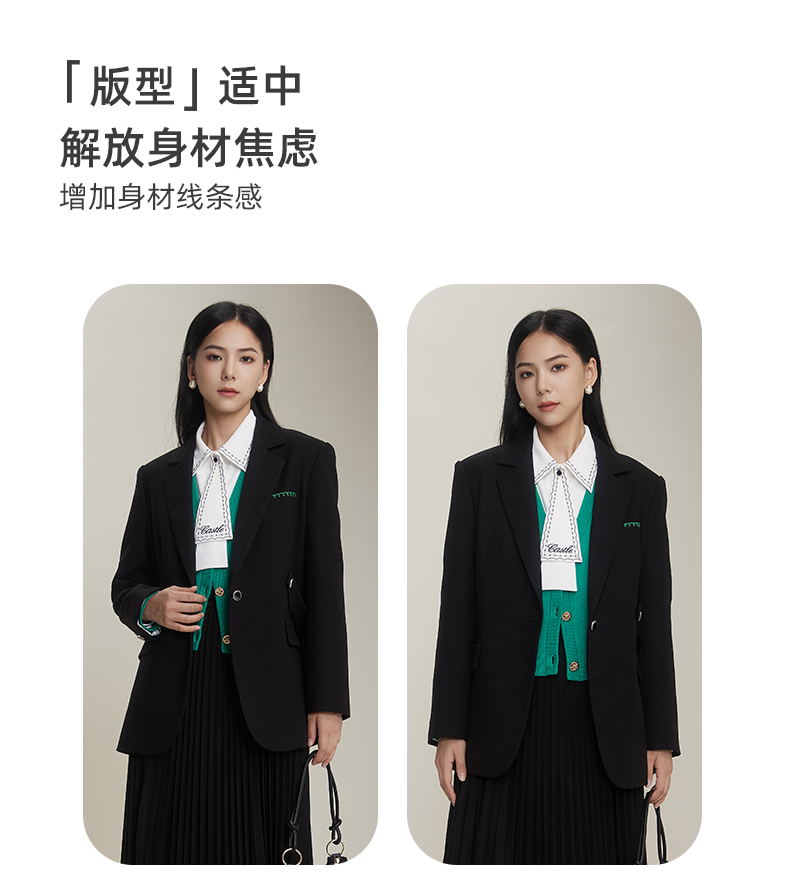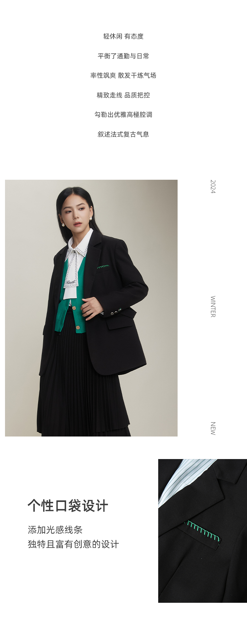 梵凯女西装2024冬设计感气质西装外套一粒扣斜开叉黑色春秋冬西装