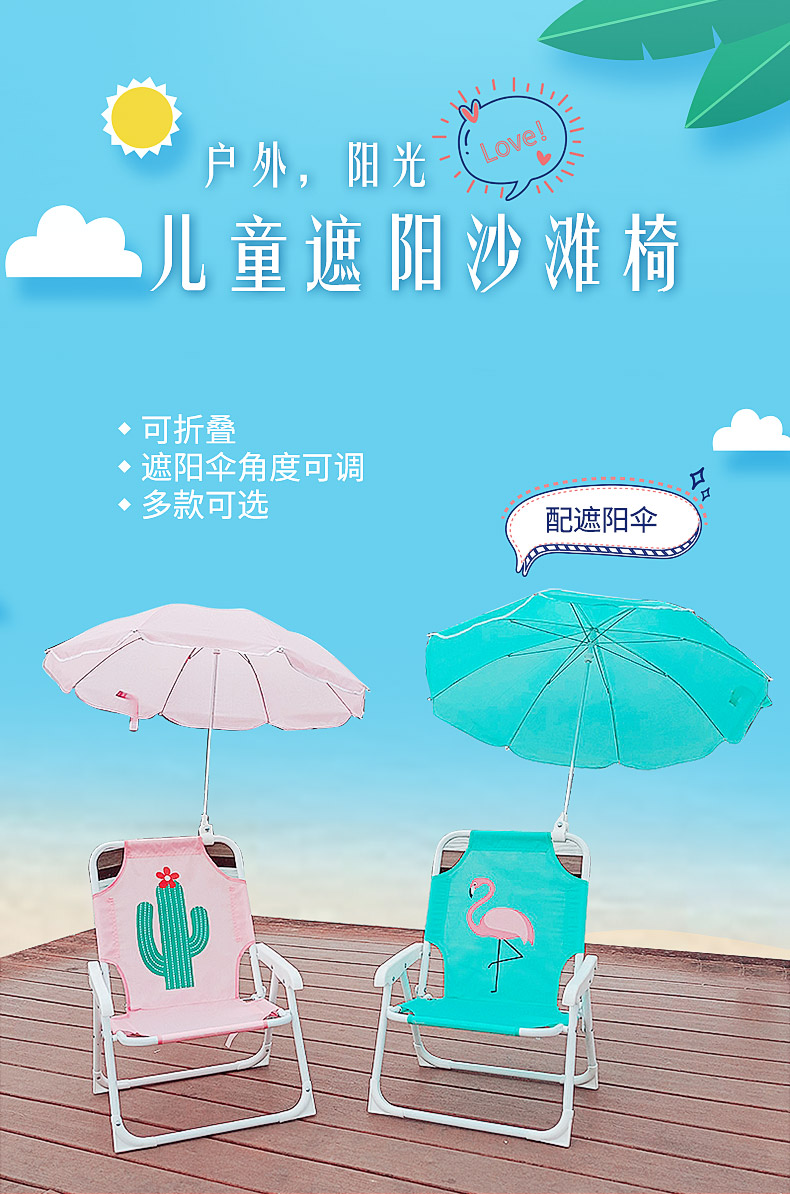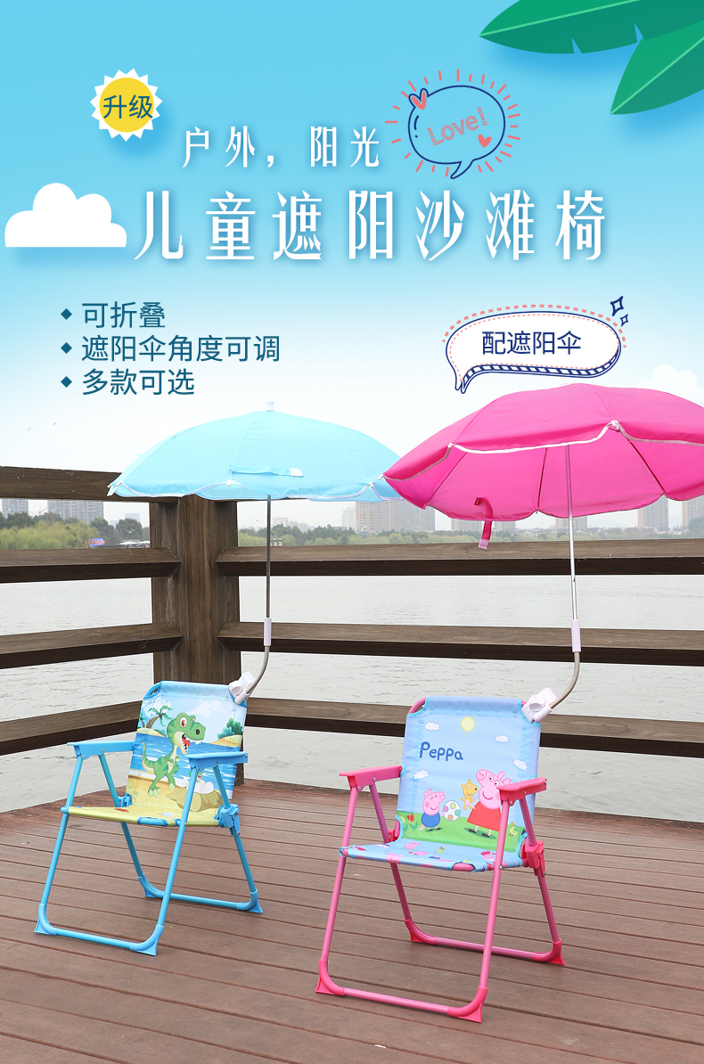 儿童沙滩椅子户外便携折叠椅靠背椅带遮阳伞海边拍照座椅宝宝凳子