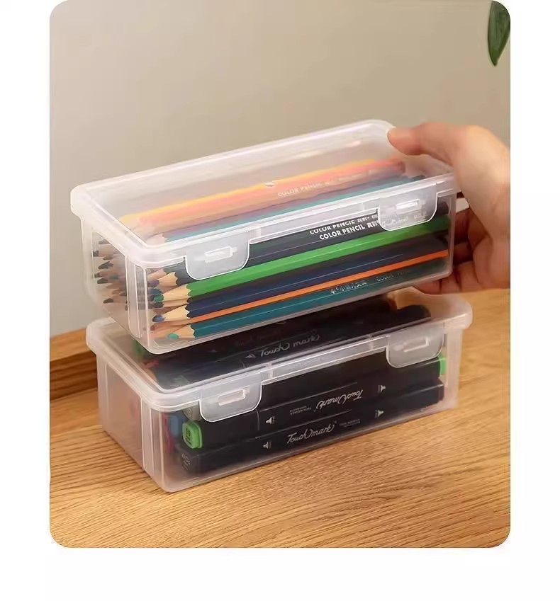 铅笔收纳盒大容量透明文具盒收纳笔筒装彩铅儿童蜡笔绘画素描笔袋