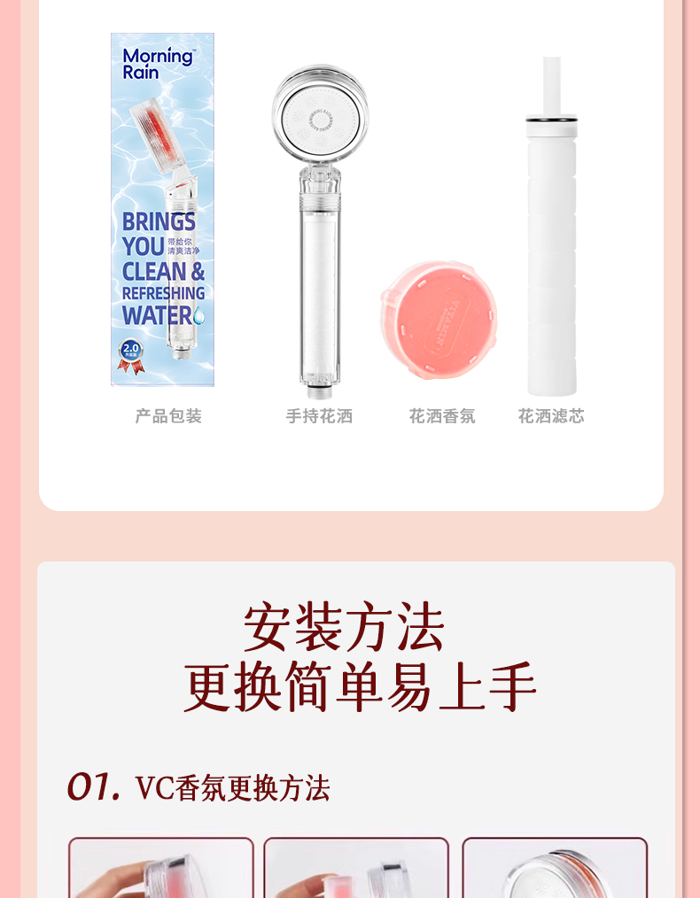 MorningRain过滤花洒净水过滤器增压喷头淋浴净肤VC花洒除氯滤芯