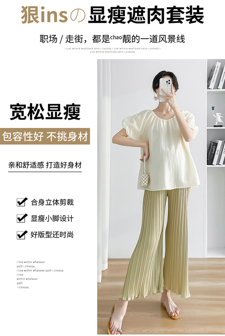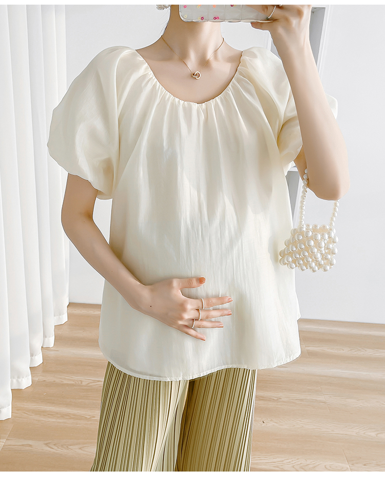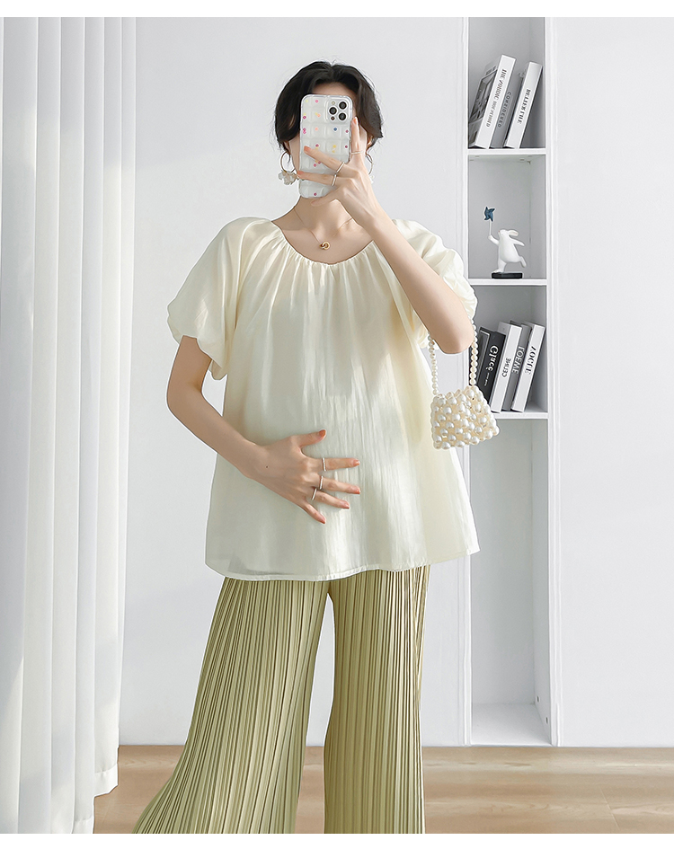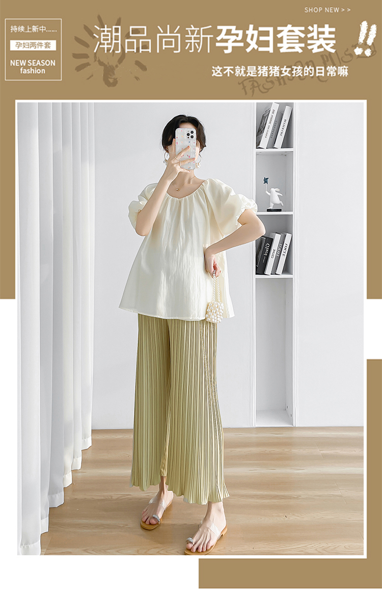 孕妇装两件套夏装2025新款洋气娃娃领衬衫宽松百搭套装高级感穿搭