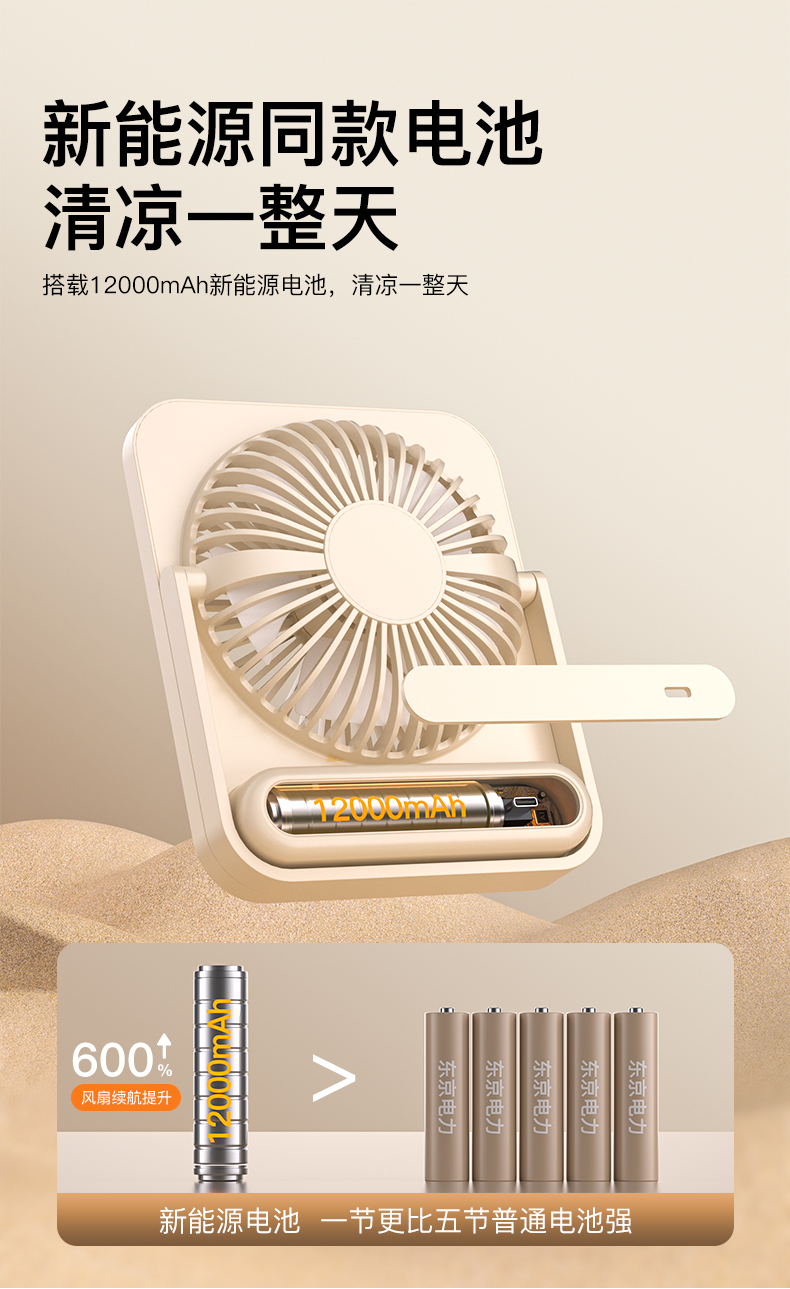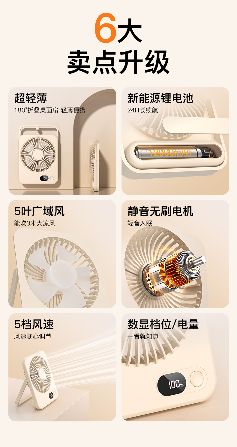 桌面风扇可充电USB迷你桌面小风扇办公室桌面宿舍电扇家用大风力便携超静音桌面可折叠桌面小风扇