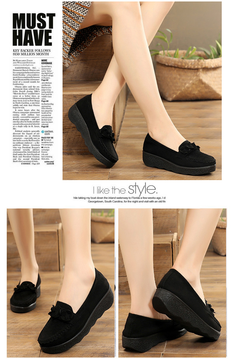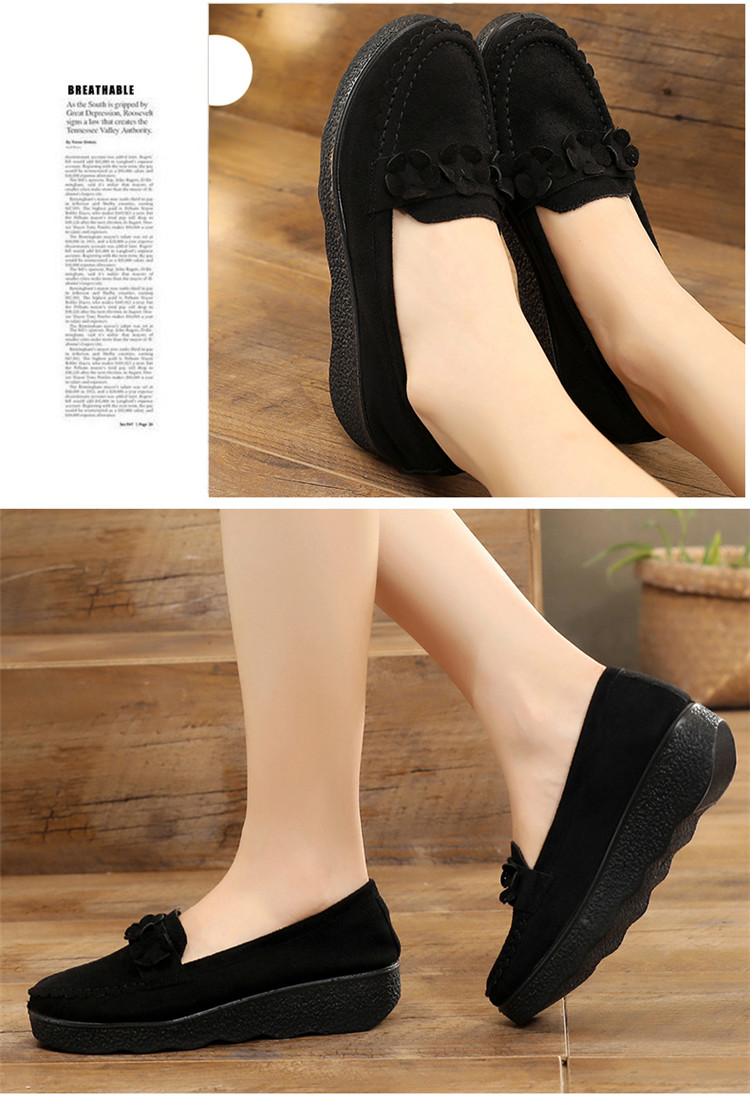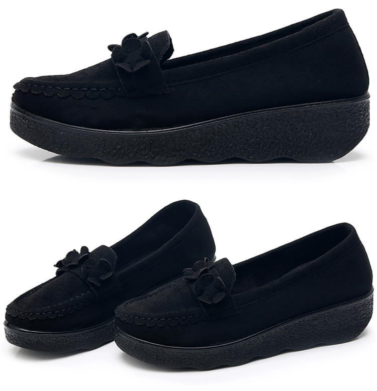 春天老北京布鞋女鞋豆豆鞋秋款单鞋坡跟软底黑色工作鞋厚底松糕鞋