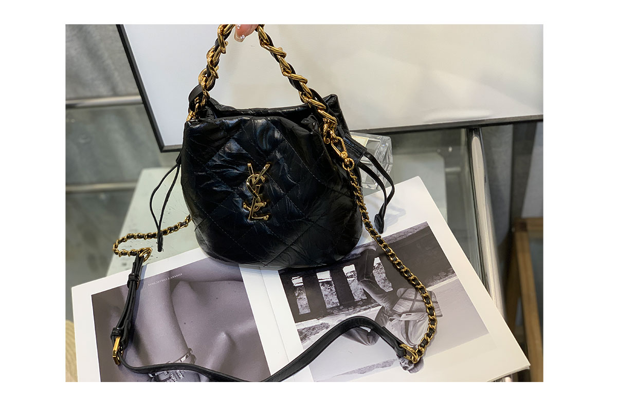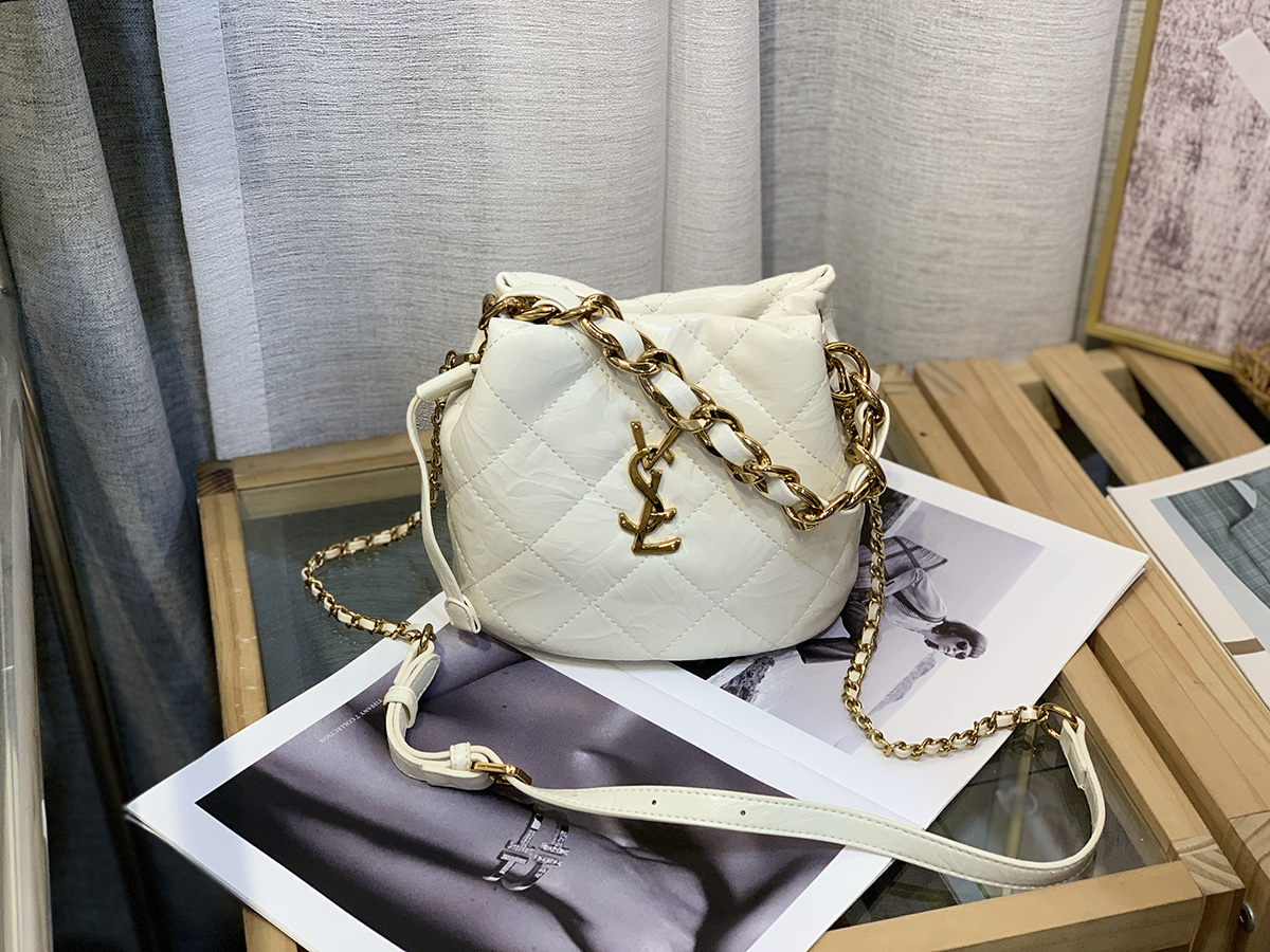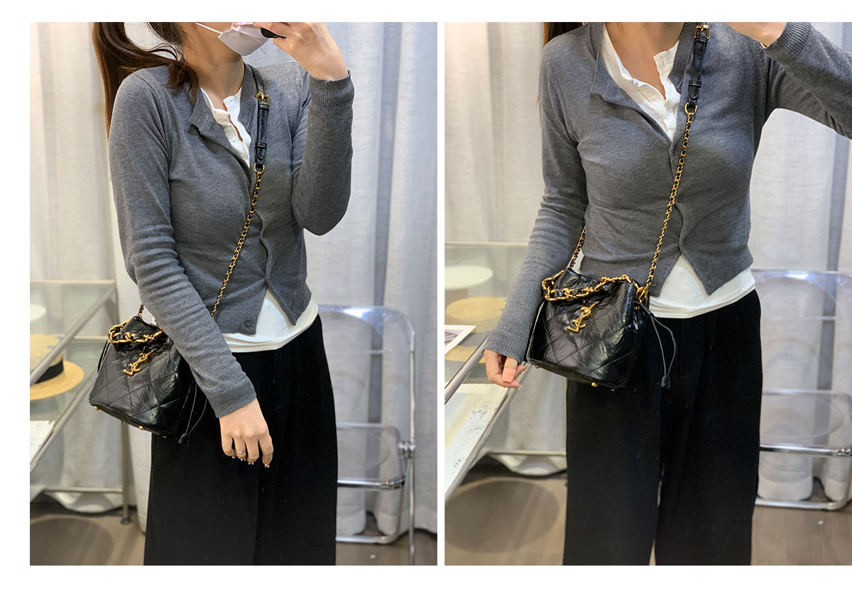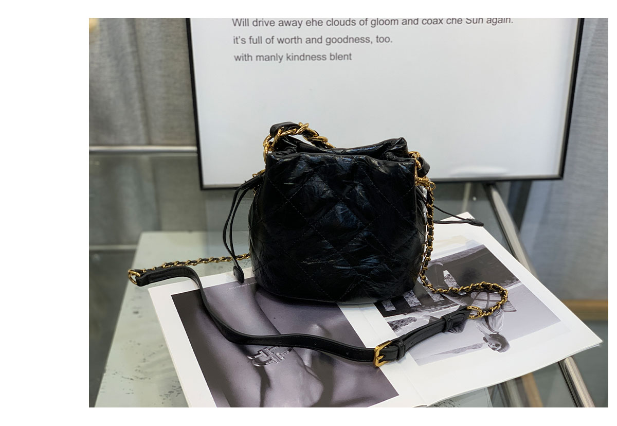 新款大菱格粗链条精致迷你水桶包牛皮小包单肩斜挎欧美字母潮流女