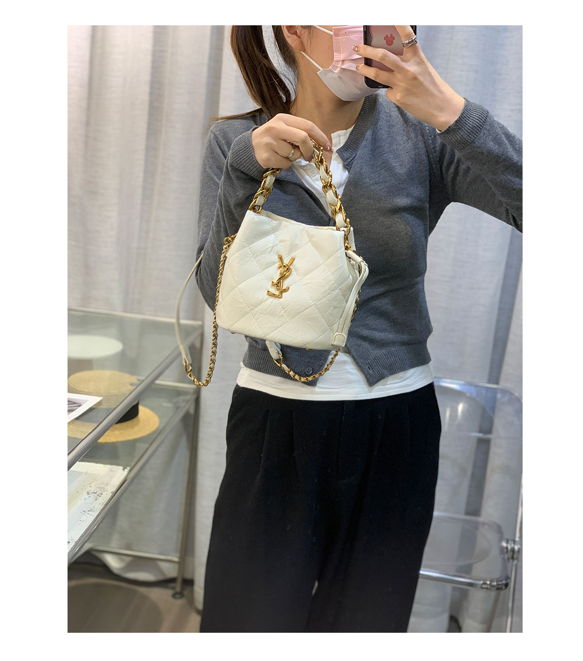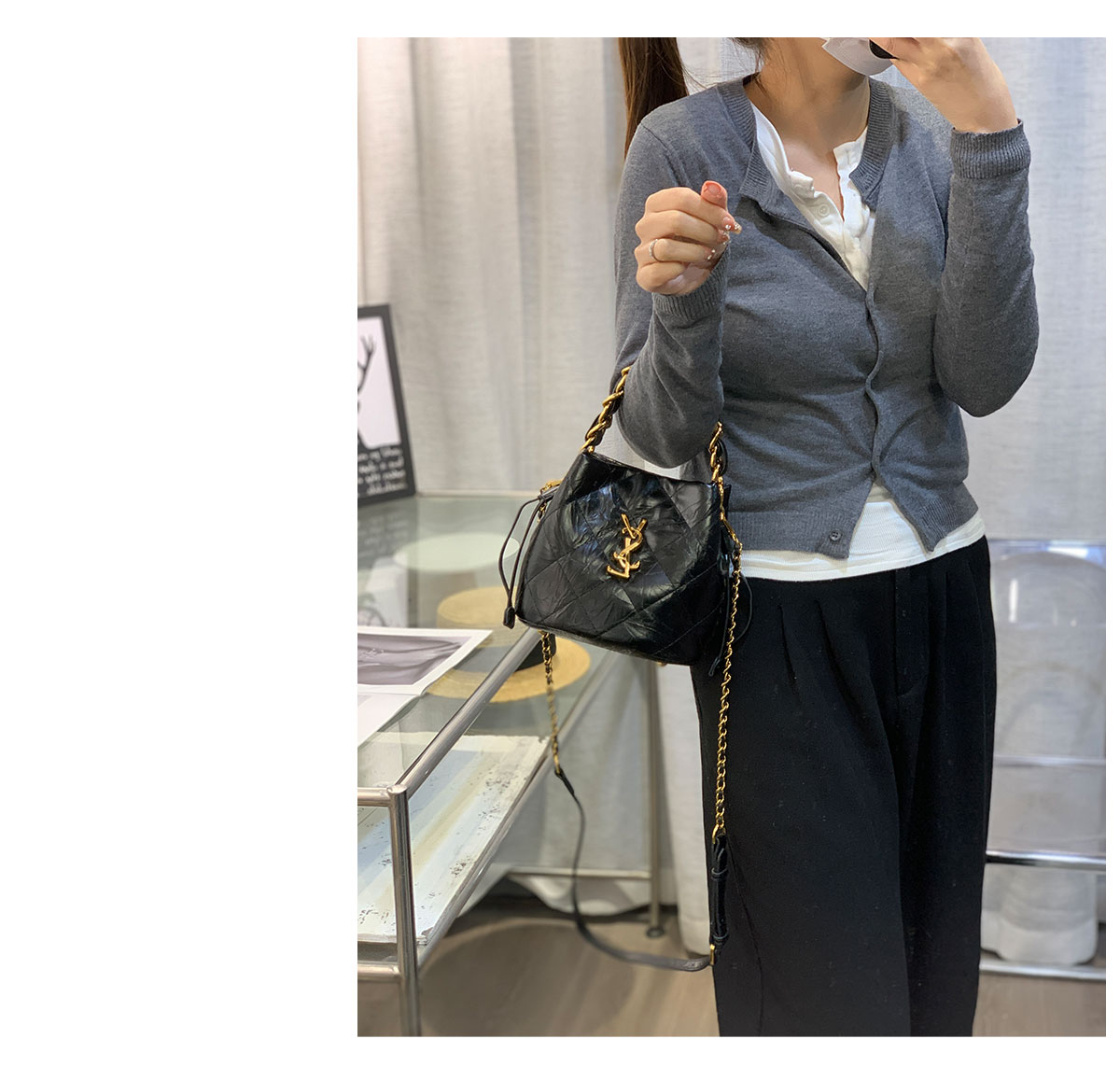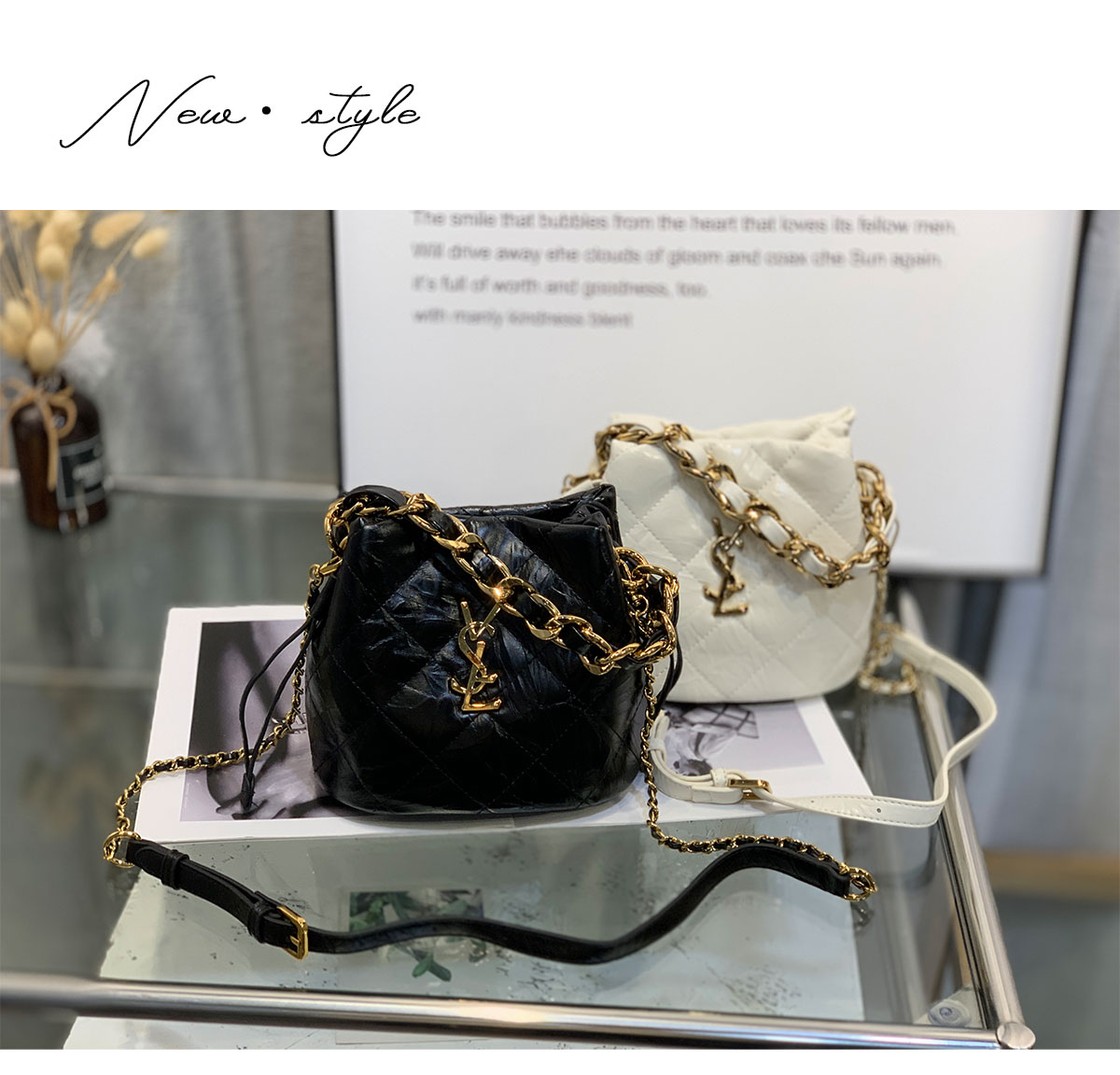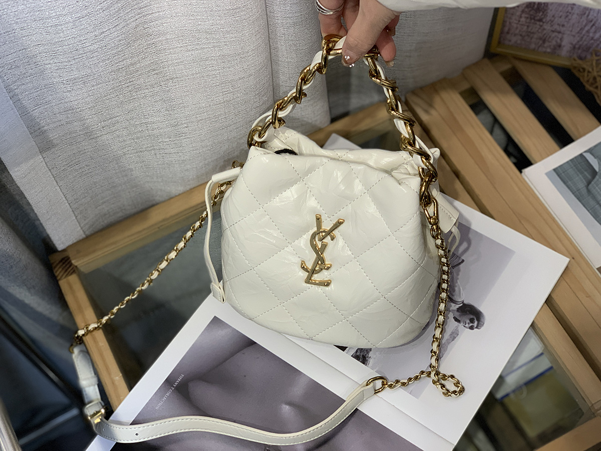 新款大菱格粗链条精致迷你水桶包牛皮小包单肩斜挎欧美字母潮流女