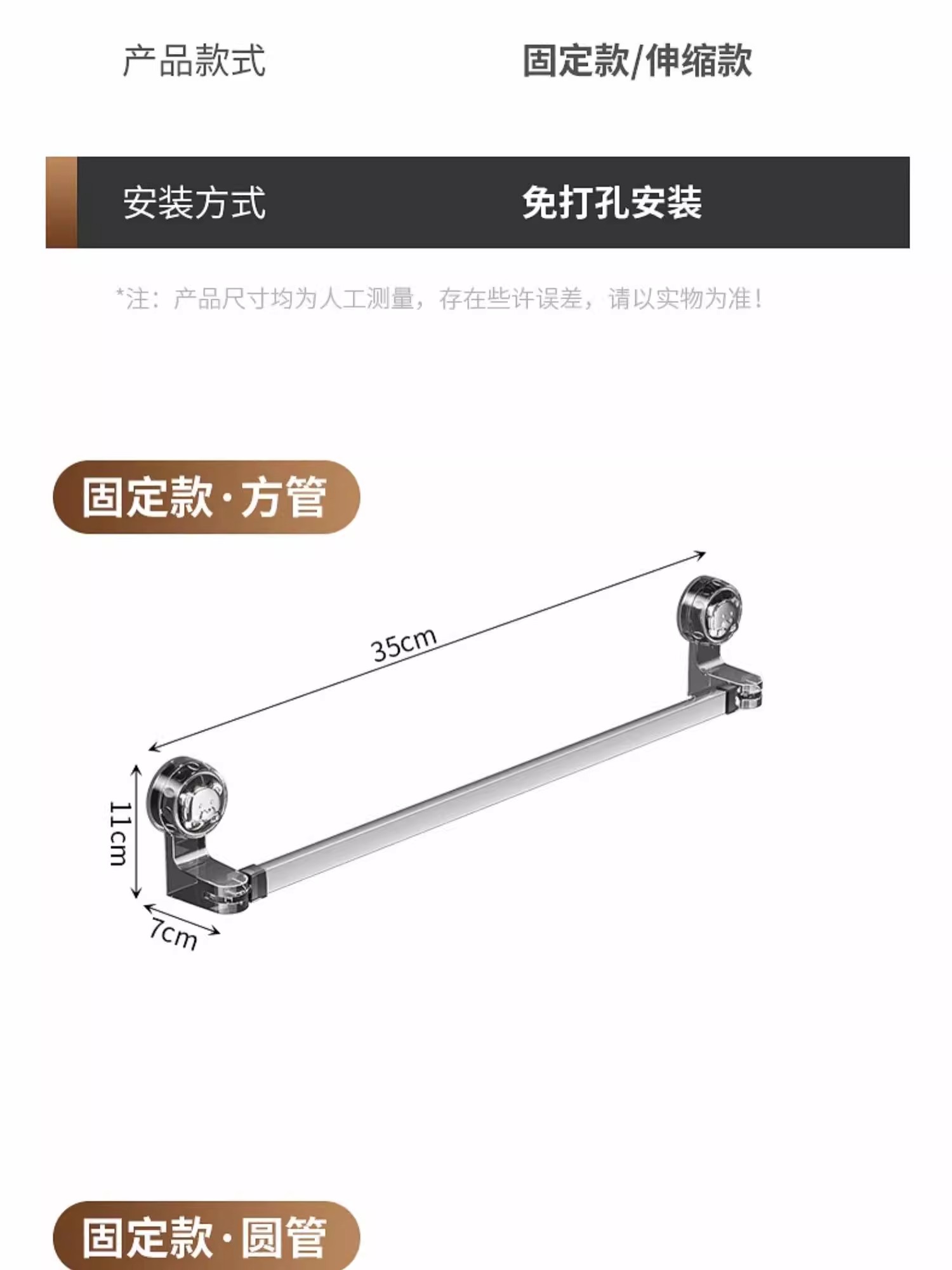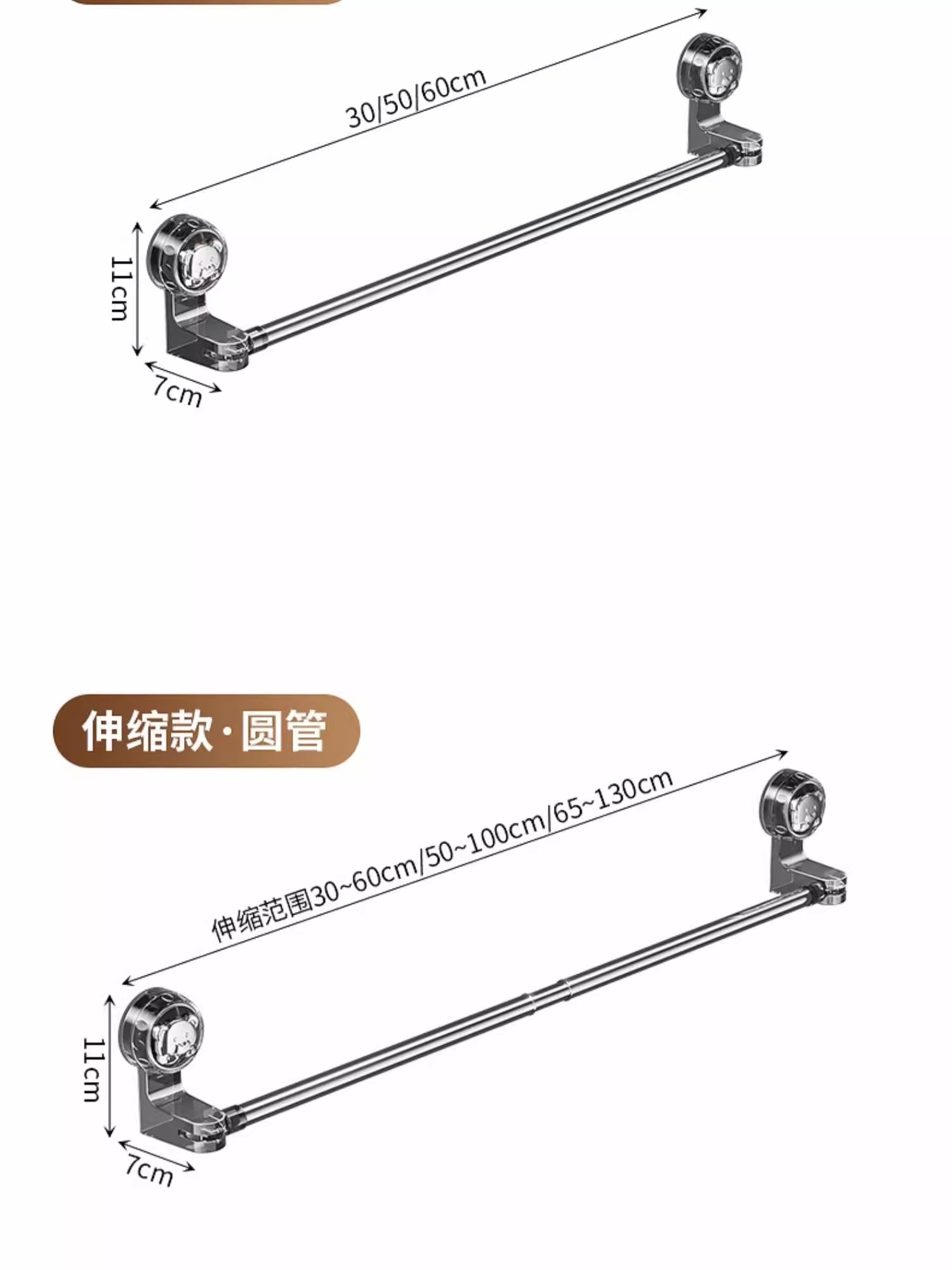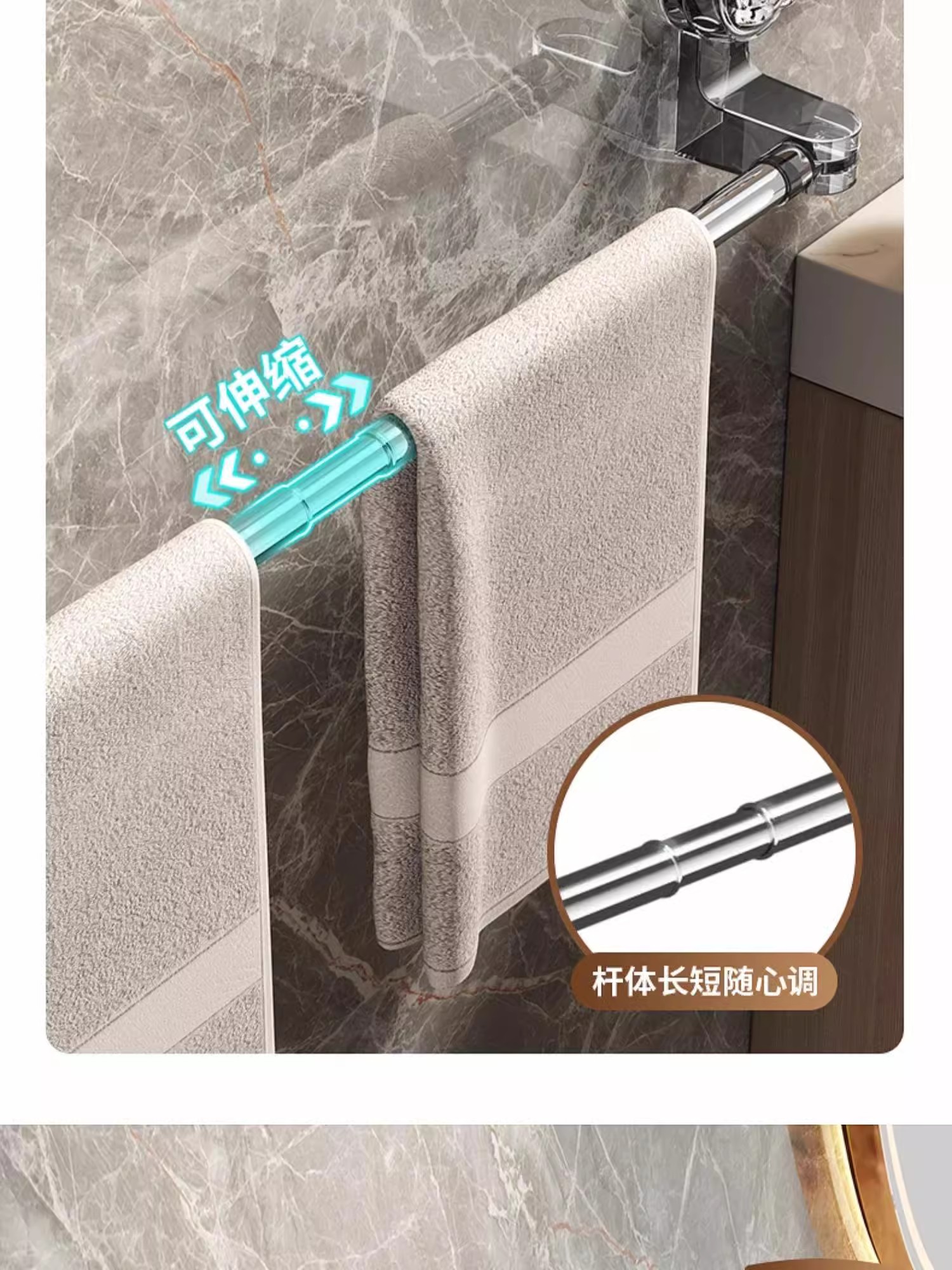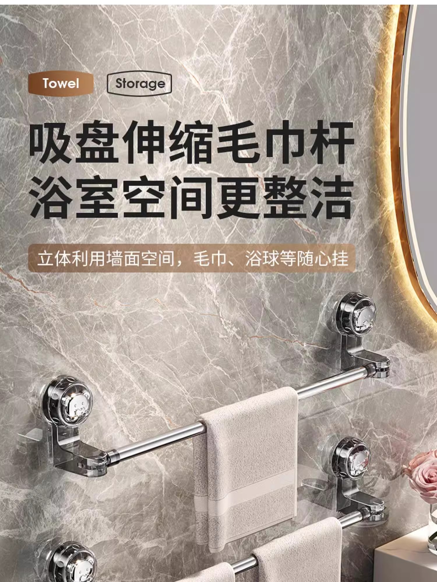 吸盘可伸缩毛巾杆可旋转卫生间毛巾浴室挂钩置物架水槽沥水袋