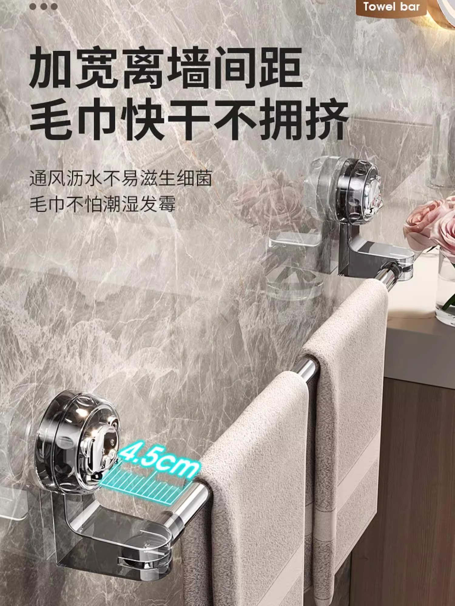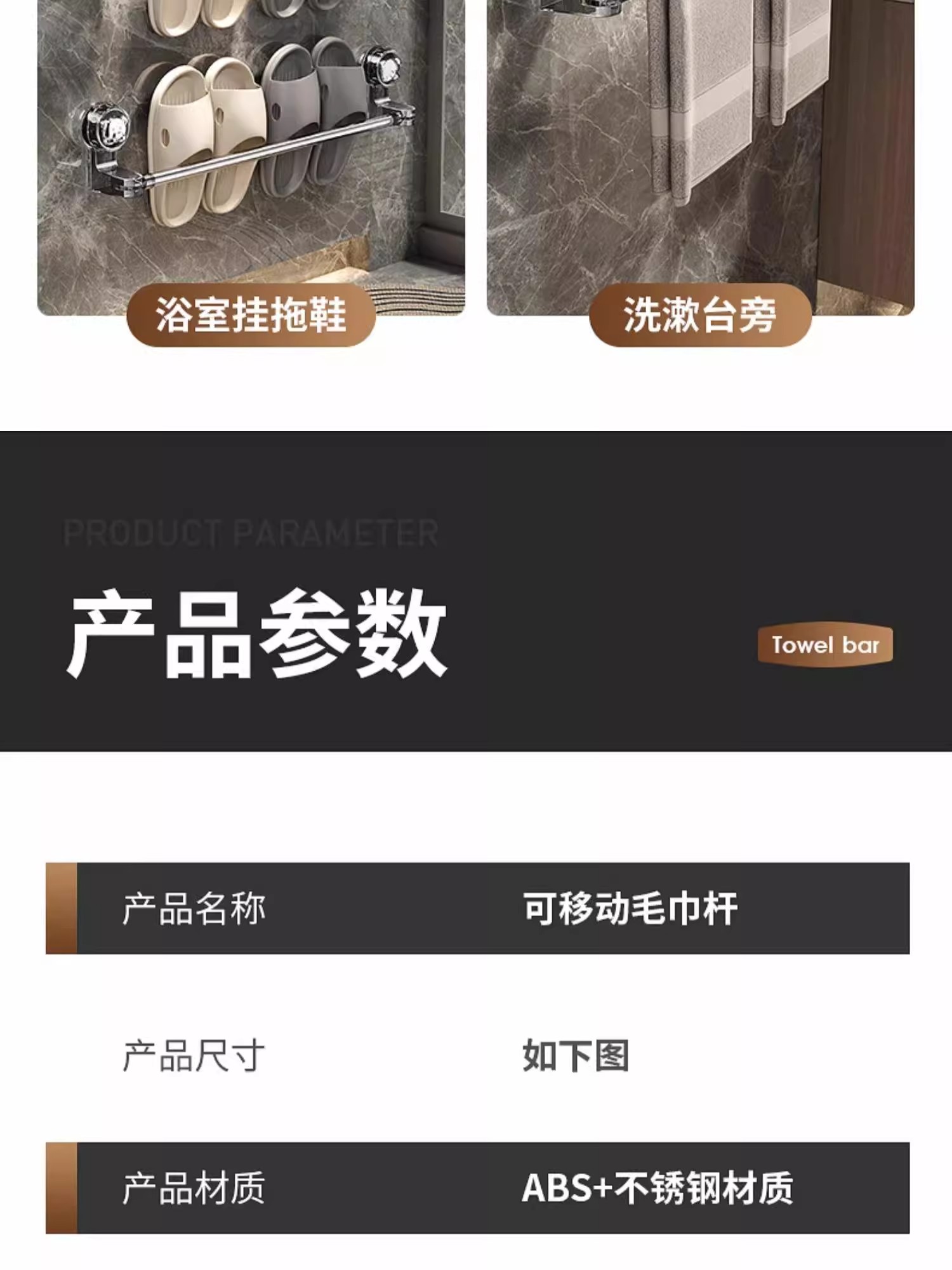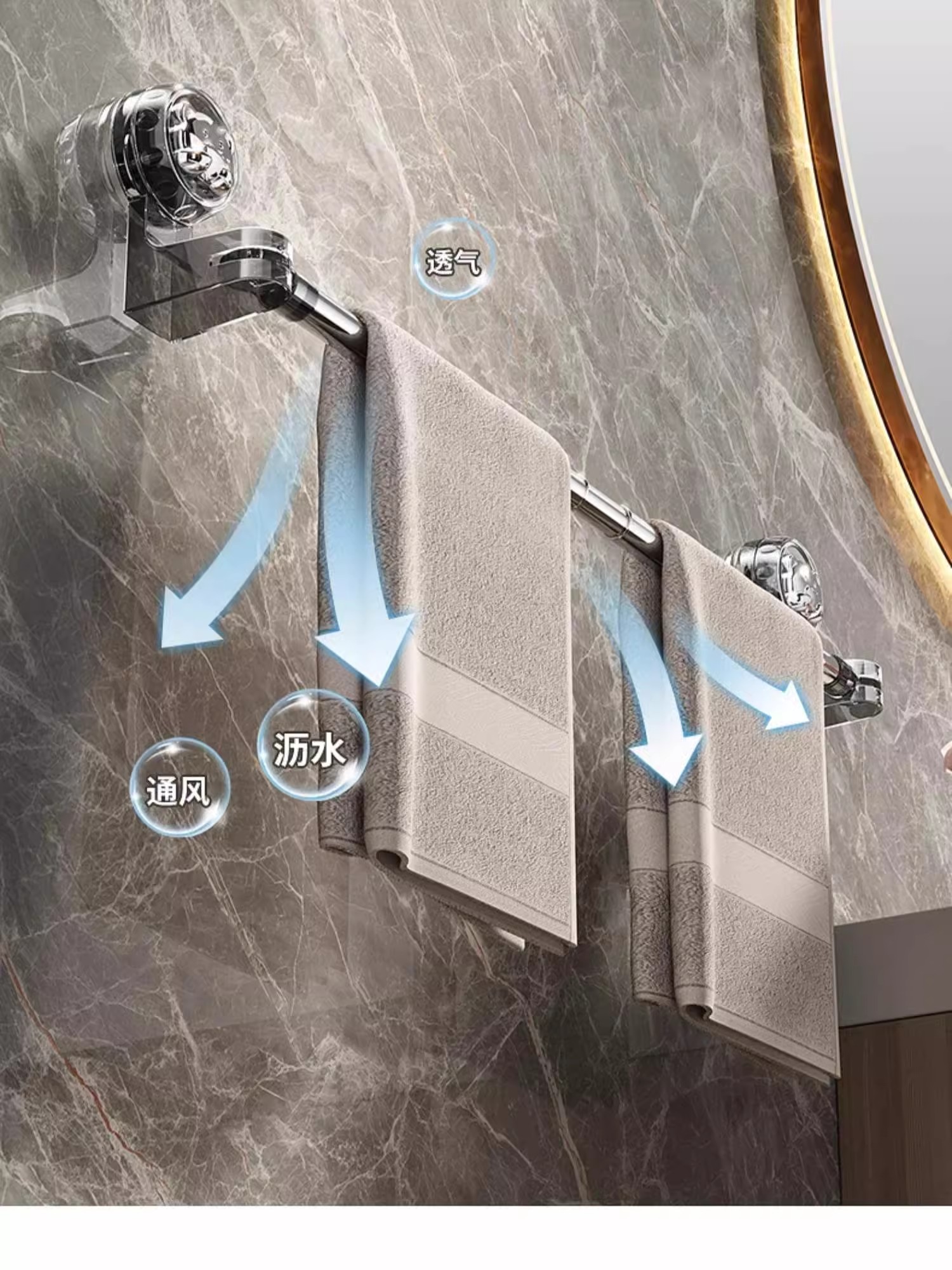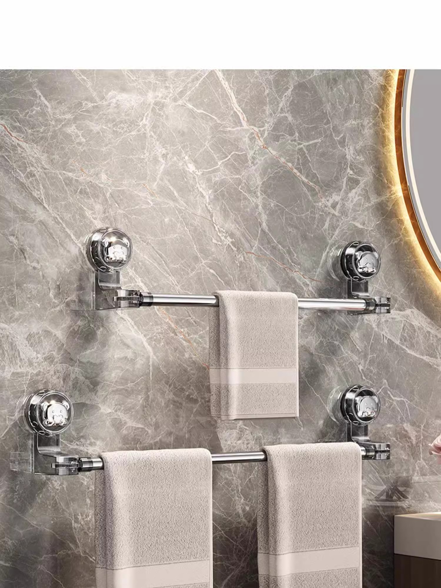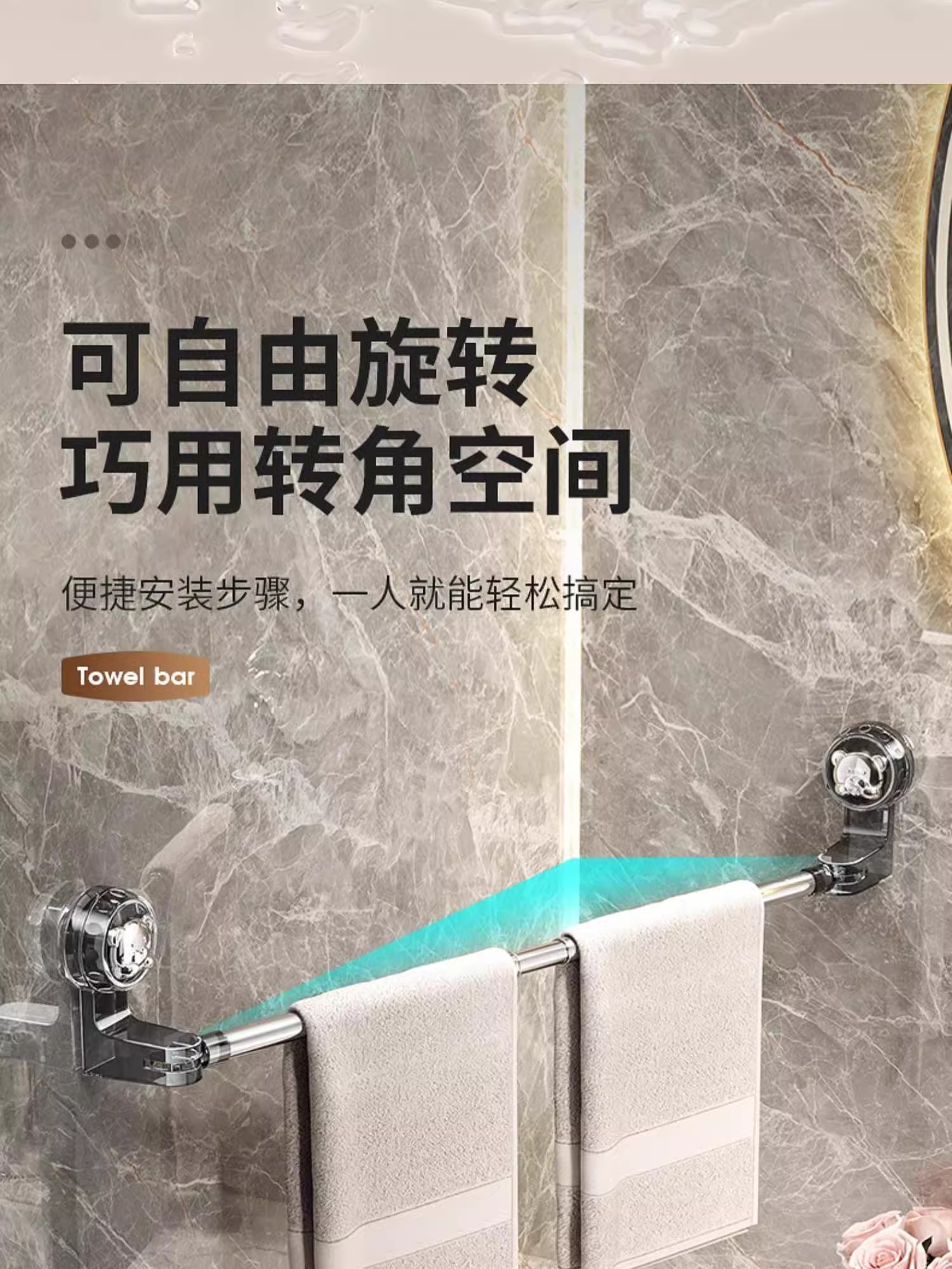 吸盘可伸缩毛巾杆可旋转卫生间毛巾浴室挂钩置物架水槽沥水袋