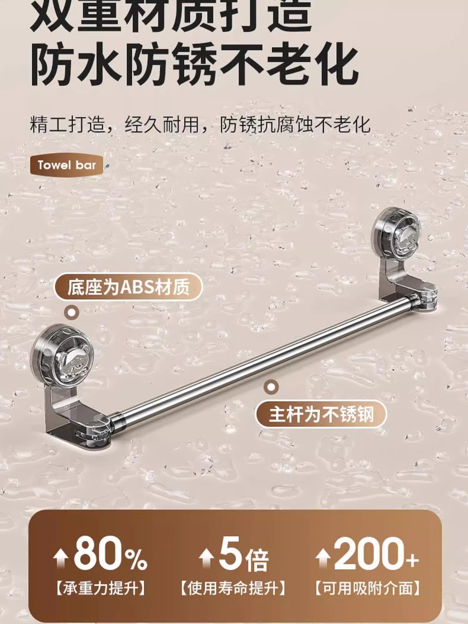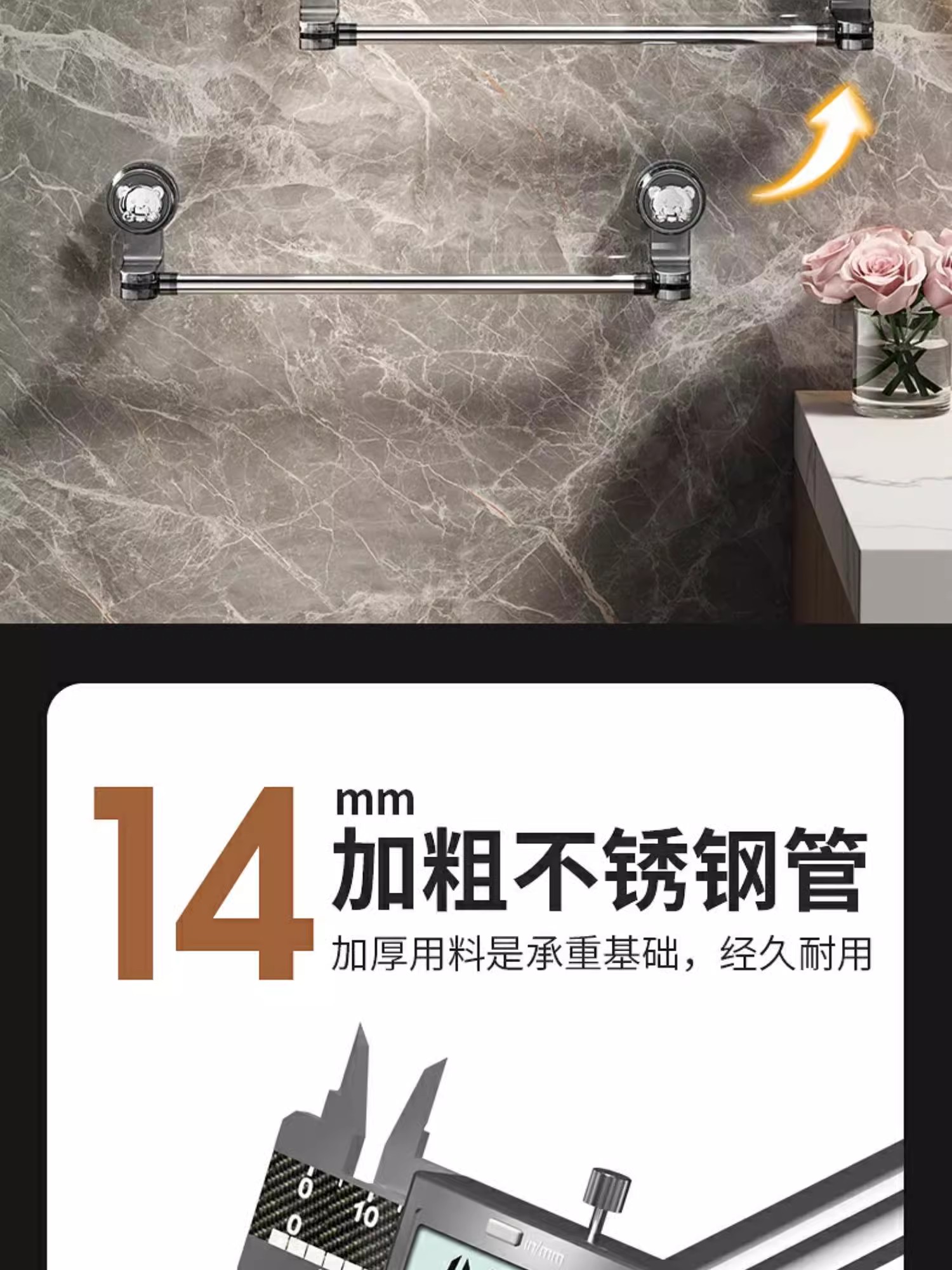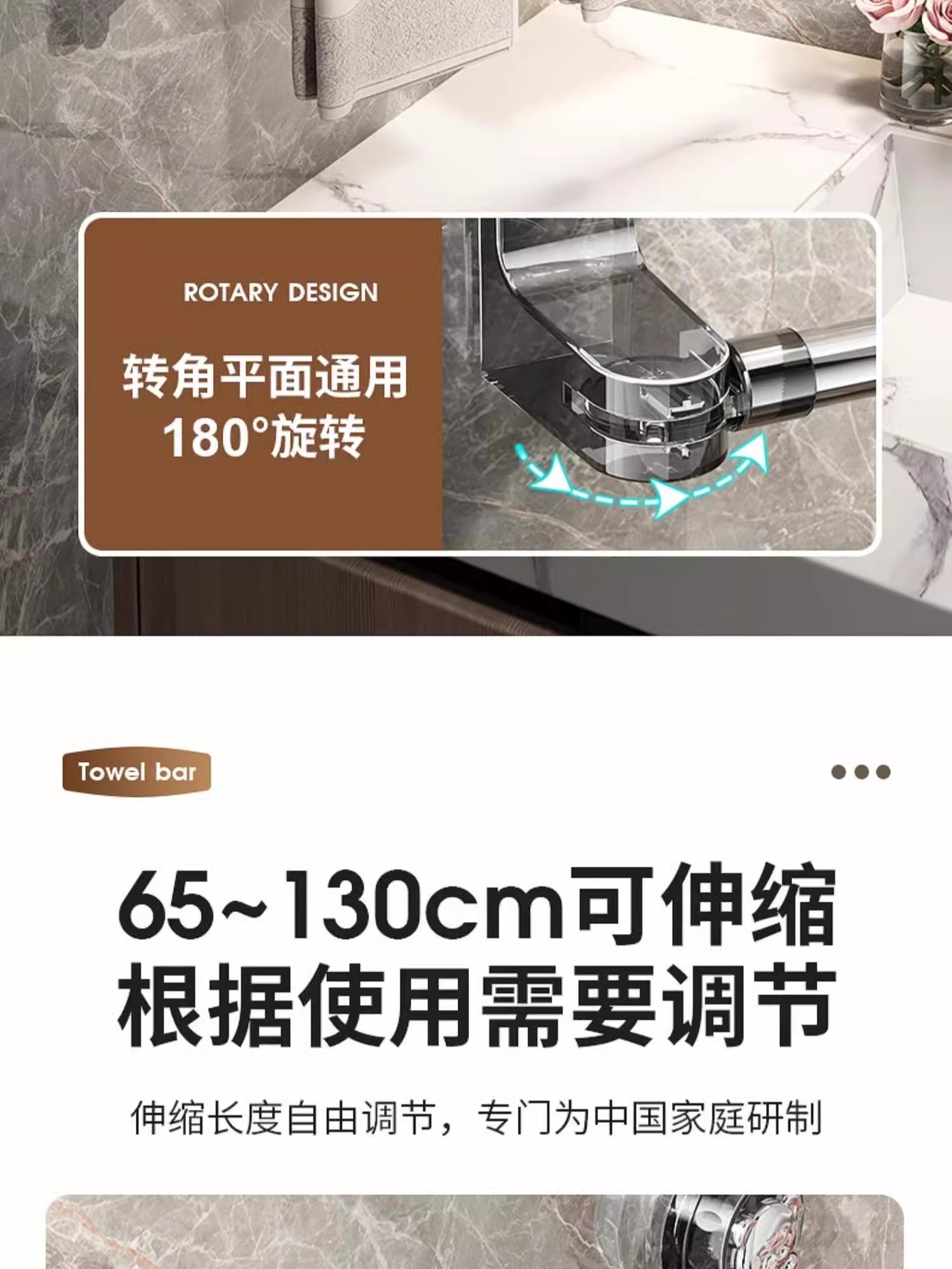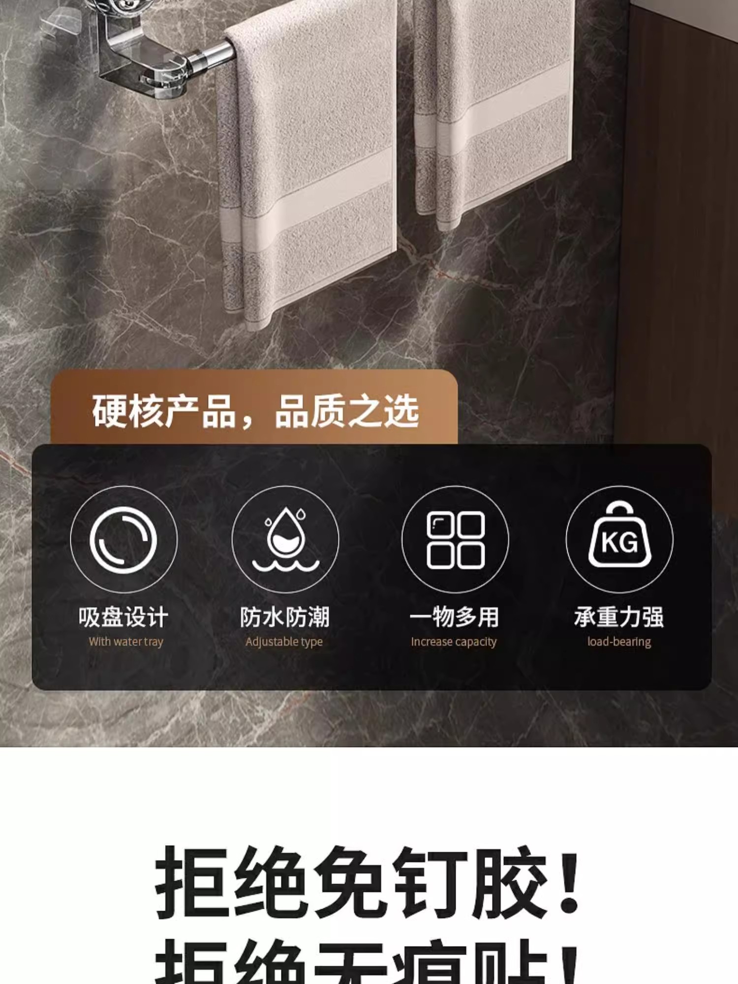 吸盘可伸缩毛巾杆可旋转卫生间毛巾浴室挂钩置物架水槽沥水袋