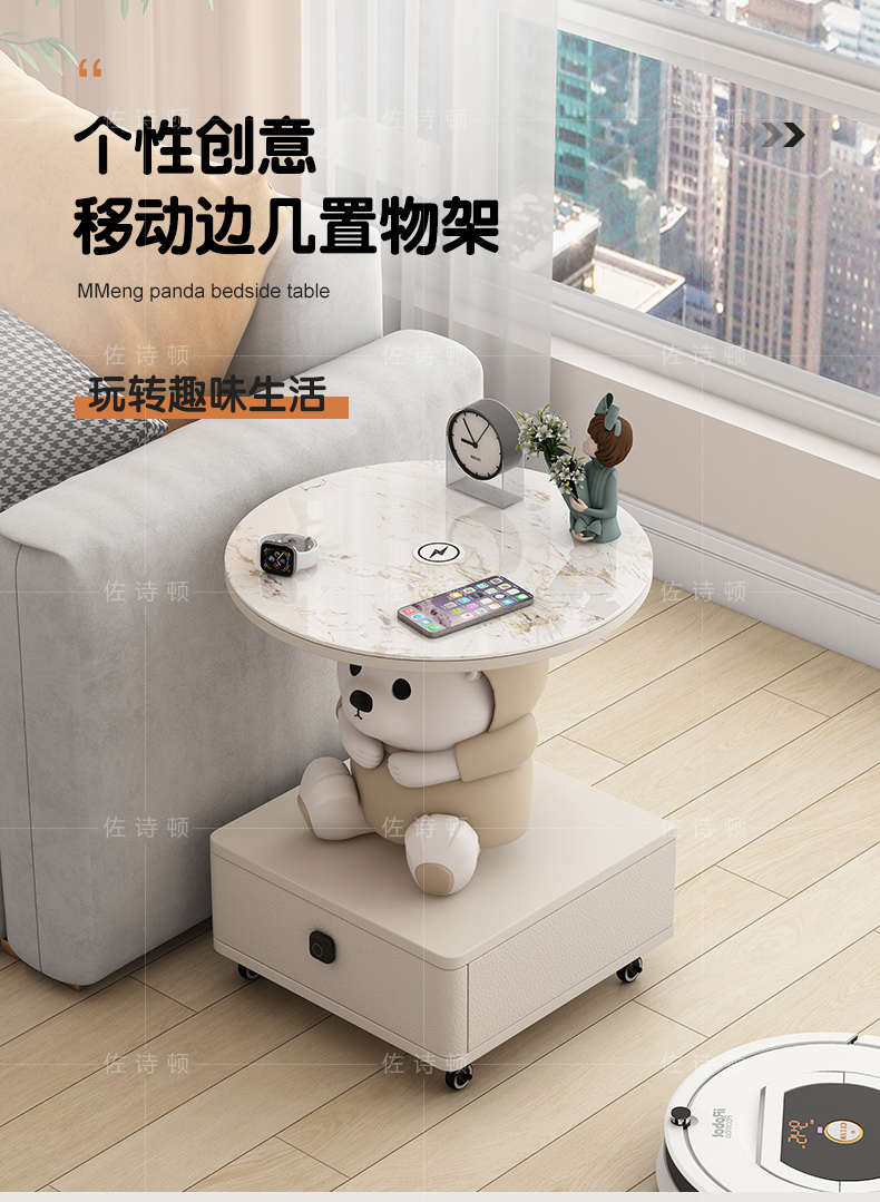 移动边几带轮小推车置物架床头柜卧室桌几客厅万向轮茶几喝茶圆桌