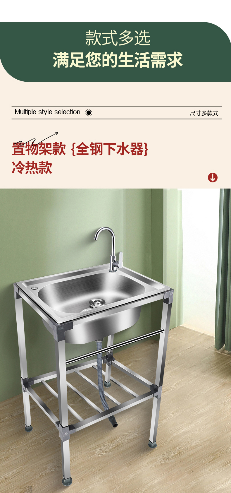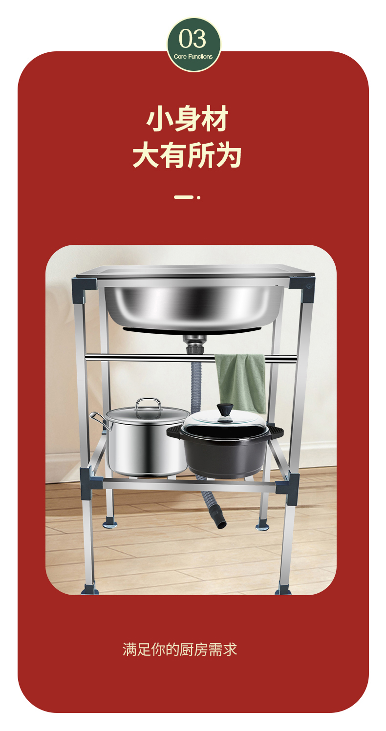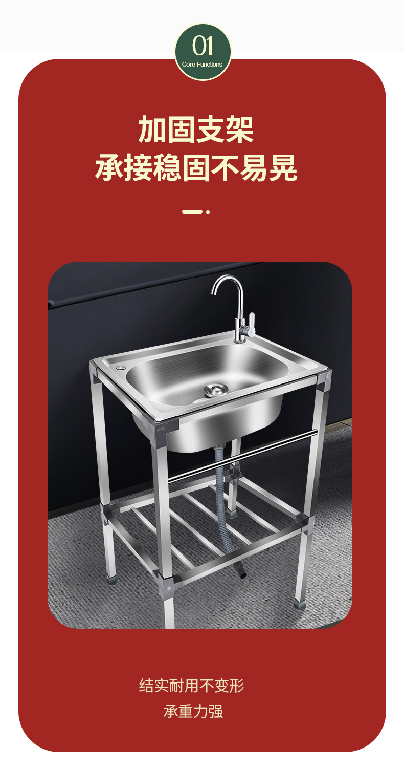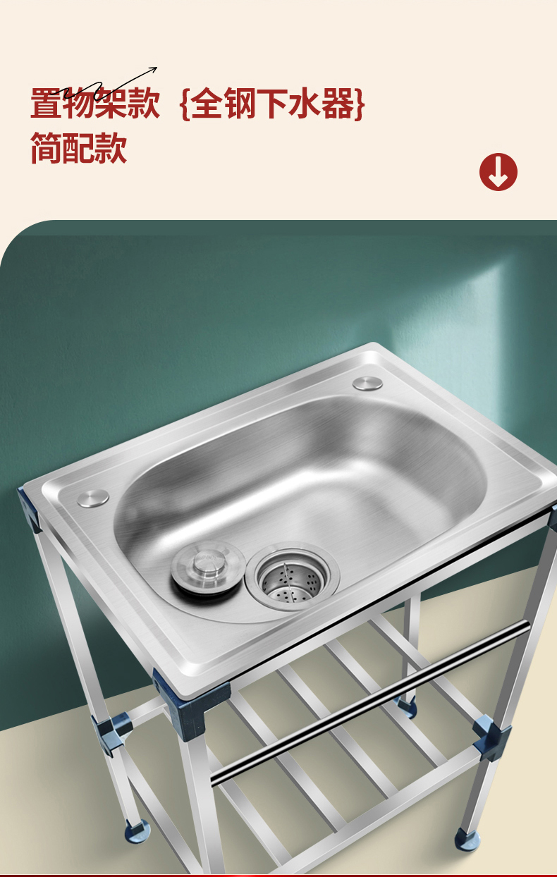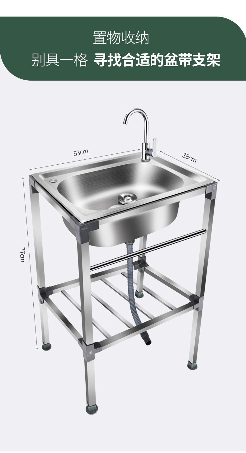 厨房不锈钢洗菜盆水槽单槽洗碗池带支架阳台厕所户外洗手盆带架子