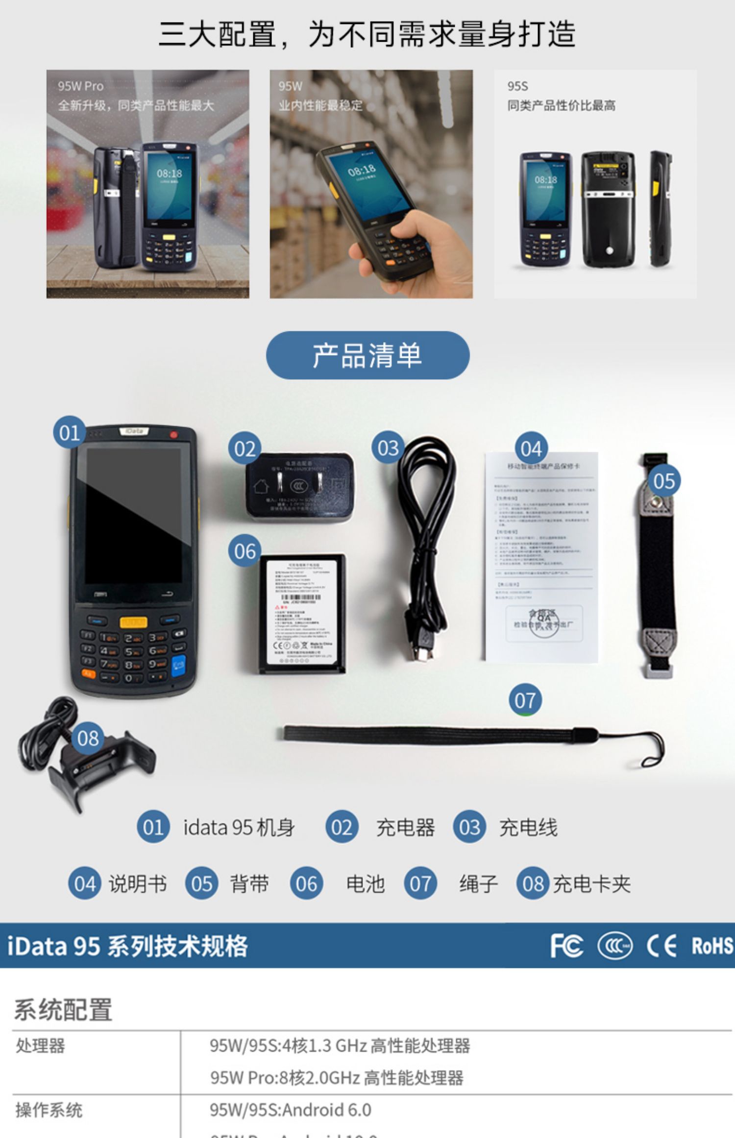 iData95S/W手持终端PDA电商物流工厂数据采集器库存仓库盘点机条码出入库WMS旺店通万里牛管家婆无线扫码枪