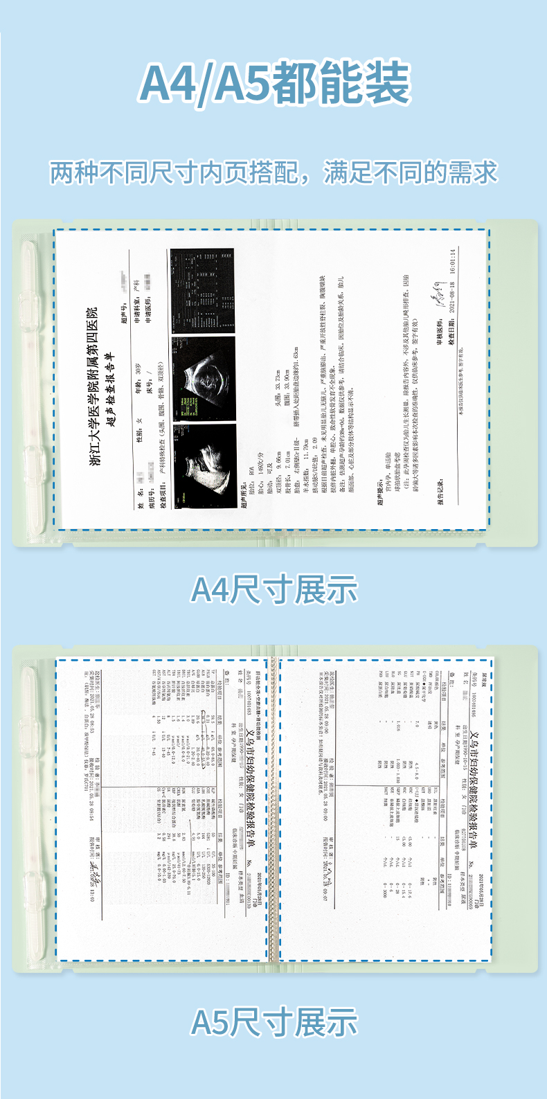 升级活页A5孕检收纳册产检资料册龙宝宝可折叠A4无痕对折文件夹横版插页透明高颜值便携学生老师加厚收纳夹