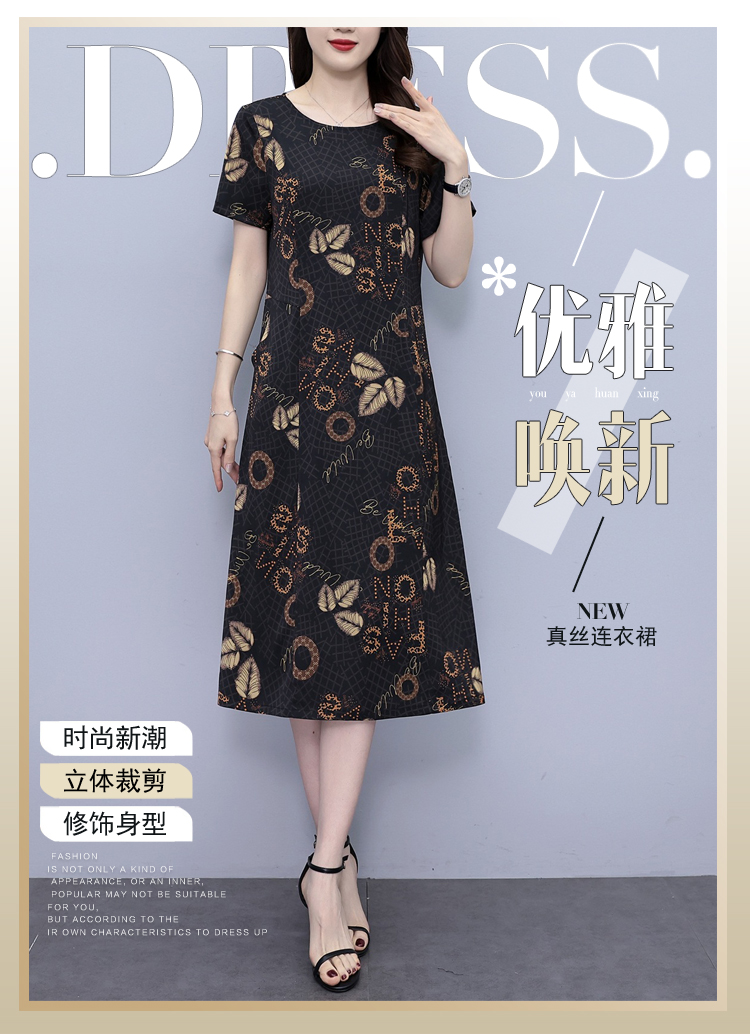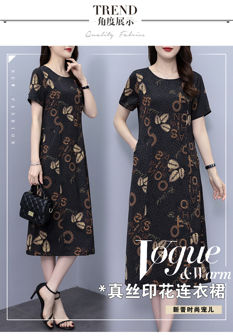 小个子中年妈妈连衣裙女大码香云纱高端真丝桑蚕丝遮肚子洋气裙子