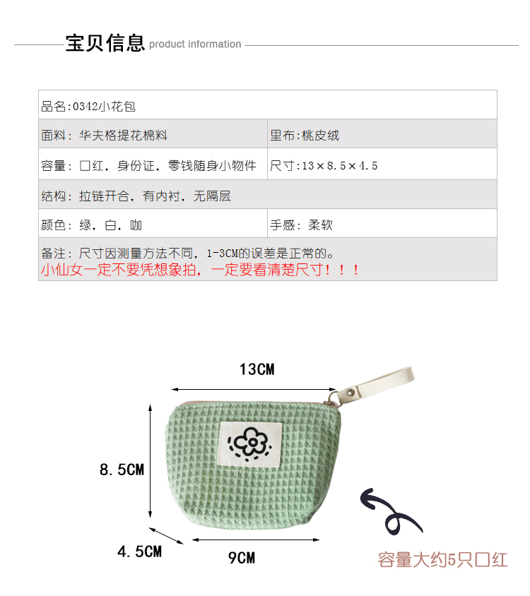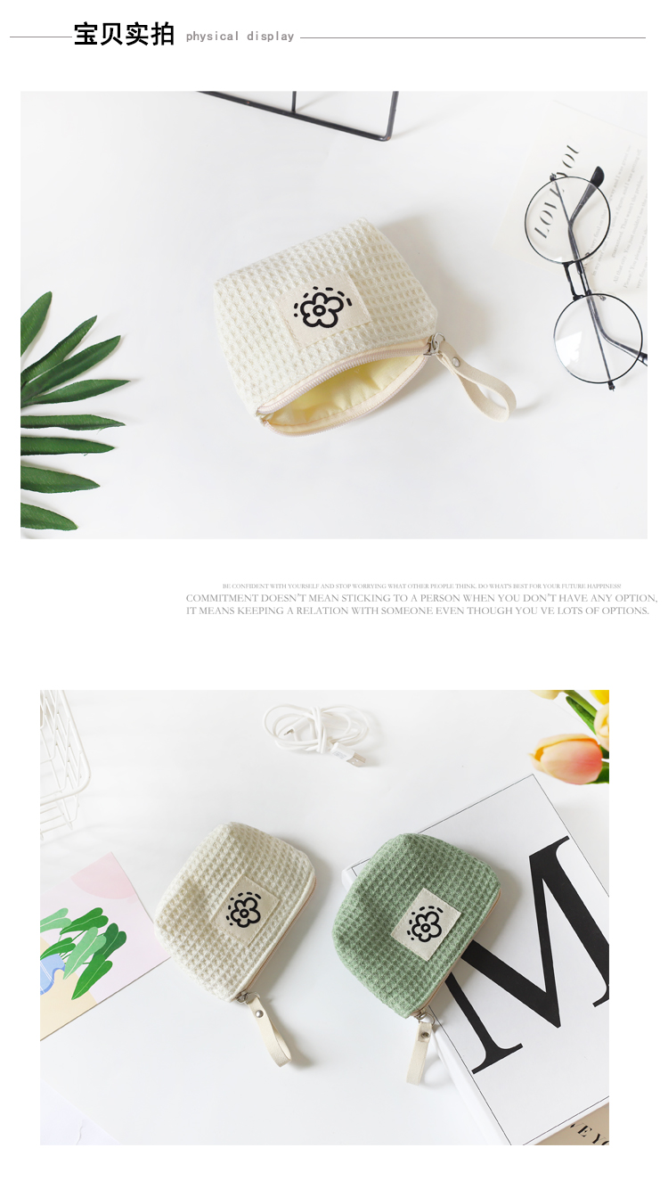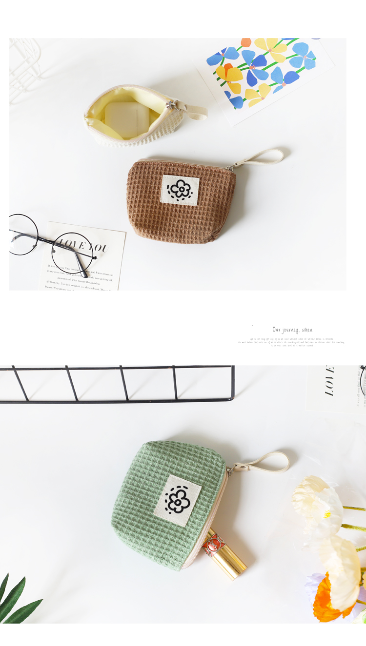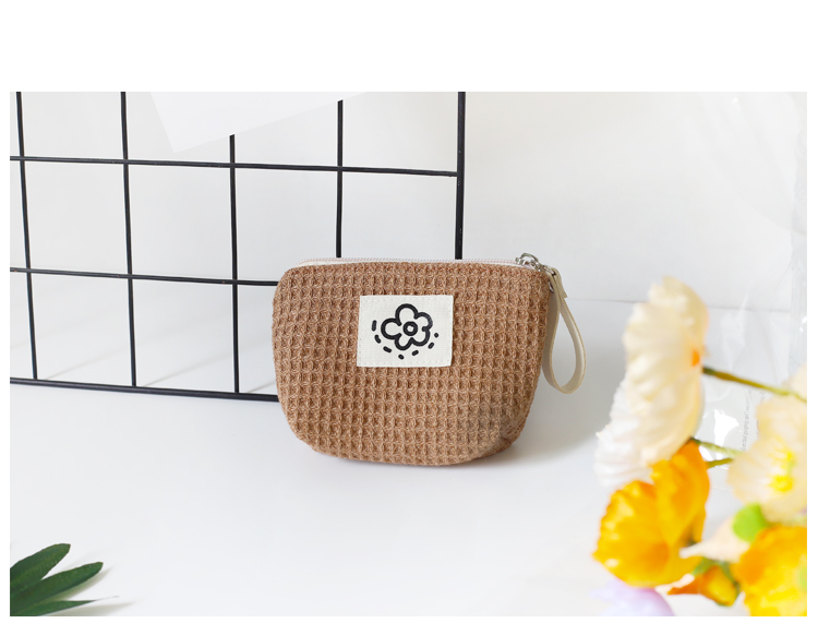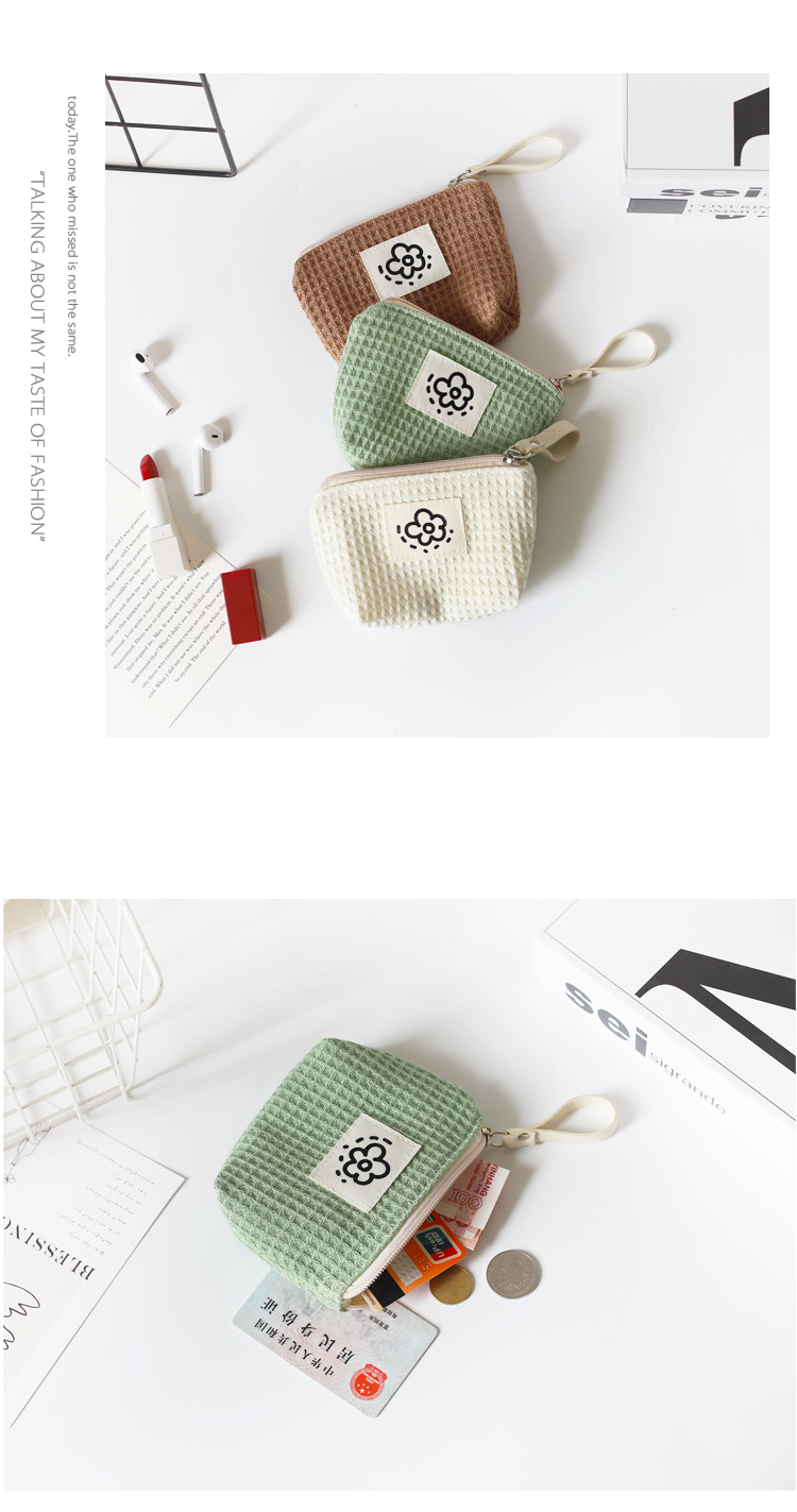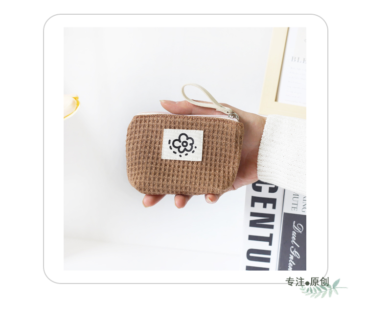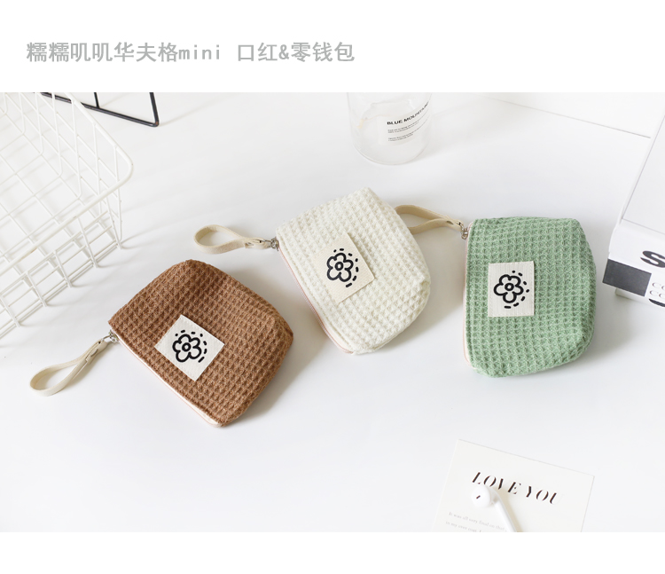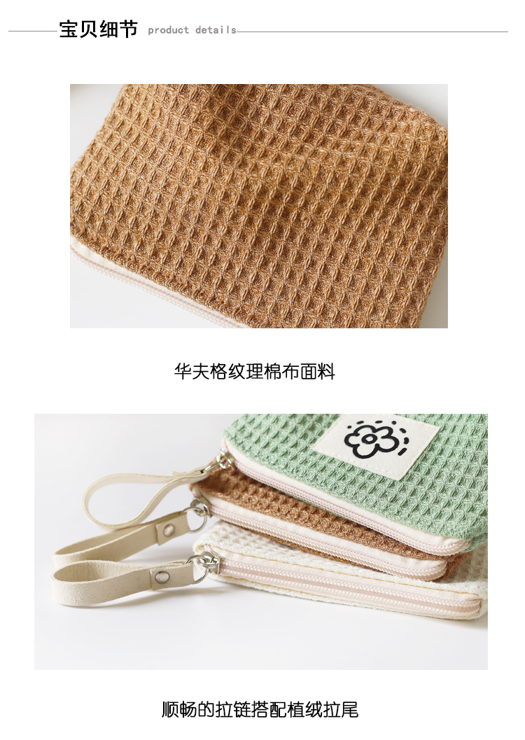 日系可爱简约华夫格零钱包女小巧便携手腕包夏天花朵2025年新款包