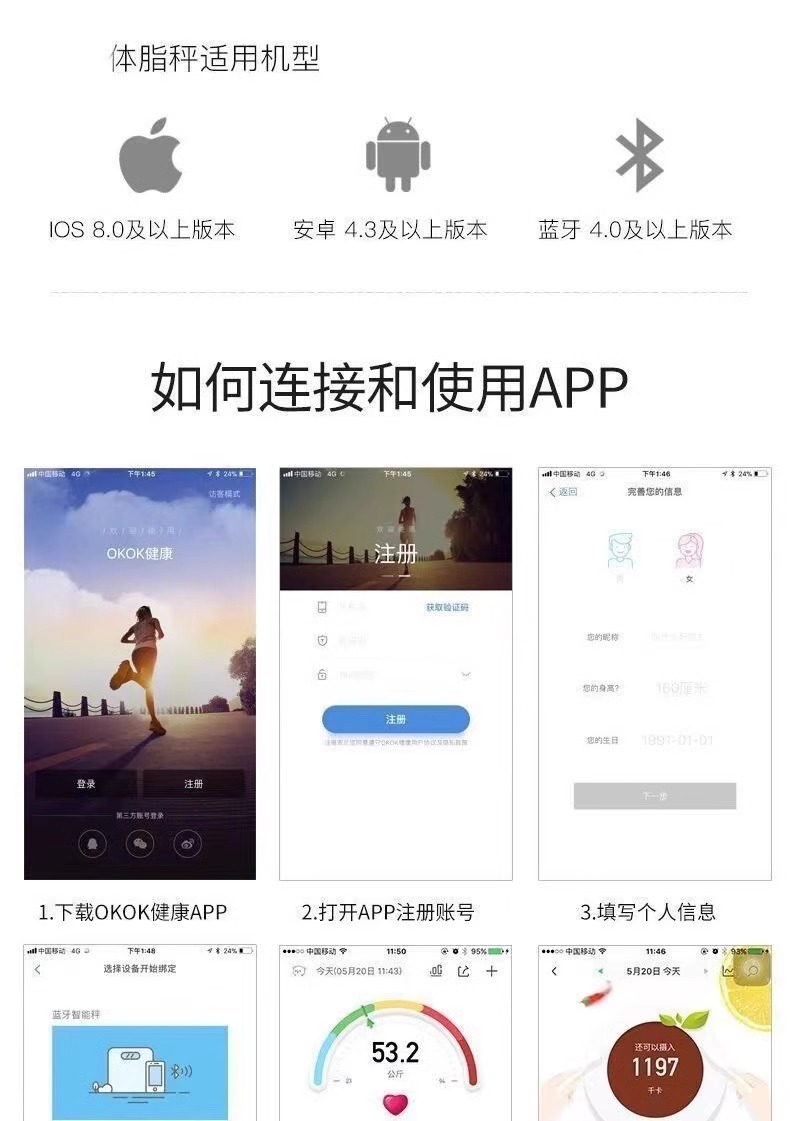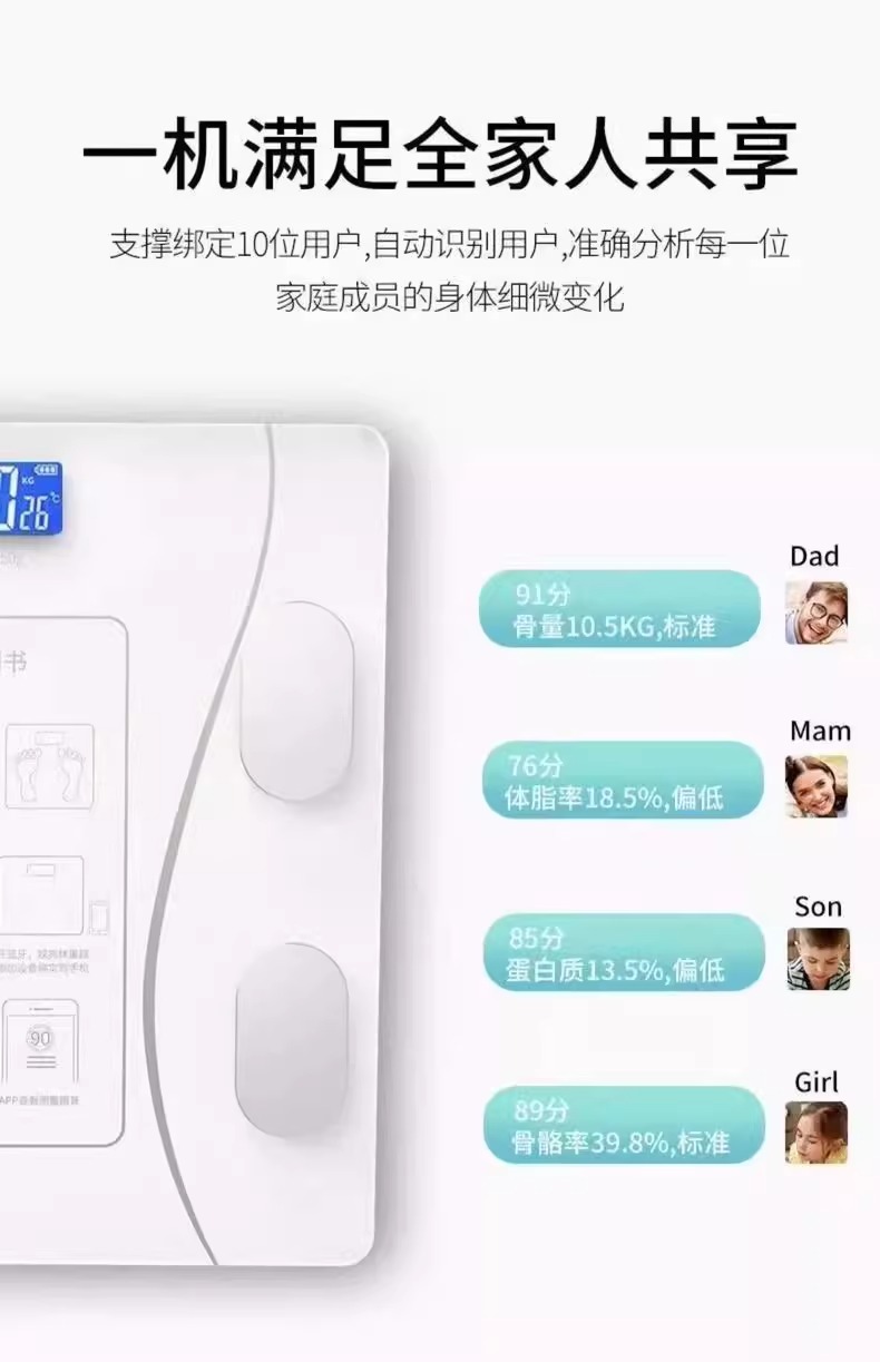 精准体重秤智能连蓝牙可充电款体脂秤电子秤腰线体重秤称体重家用