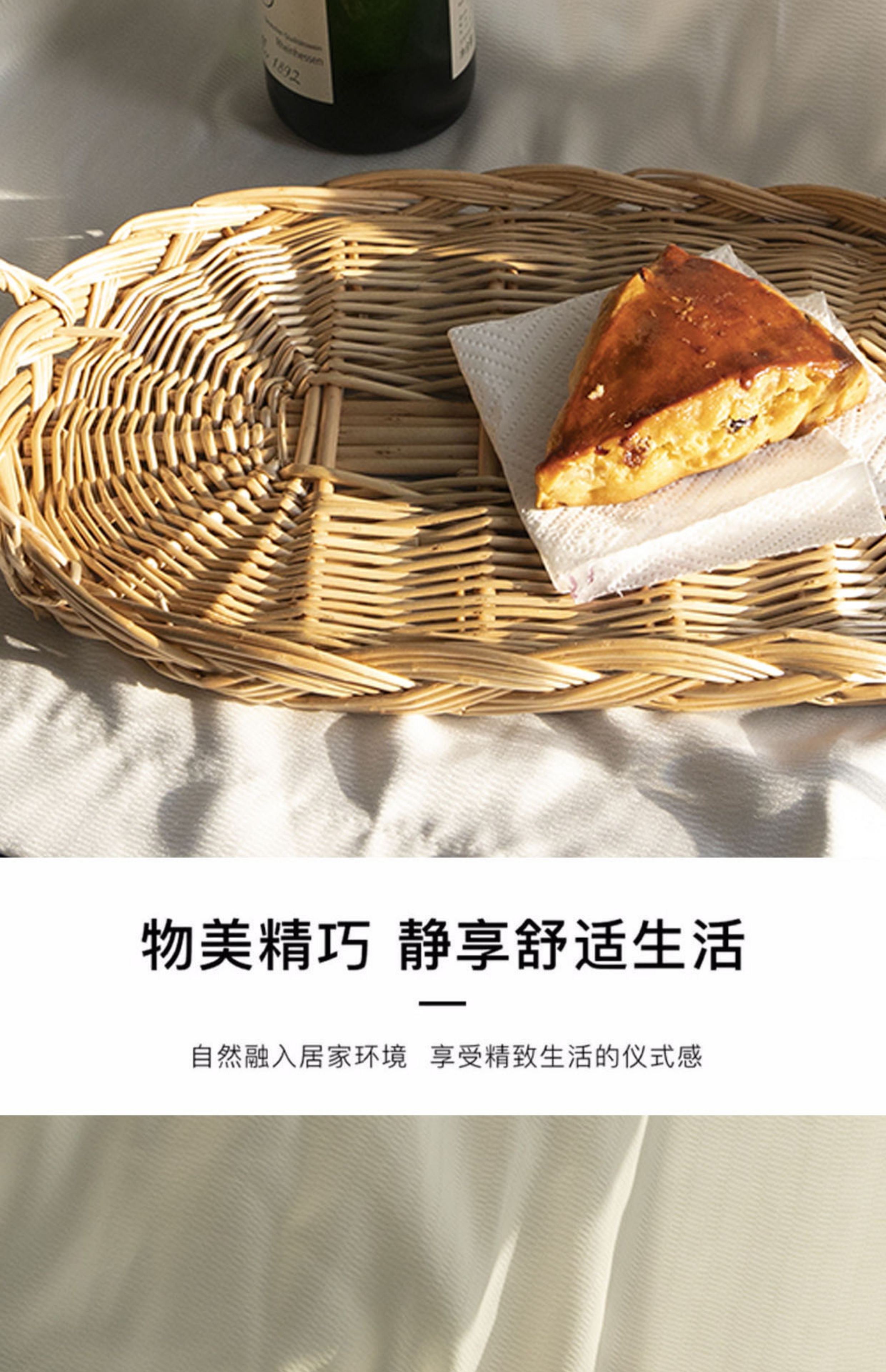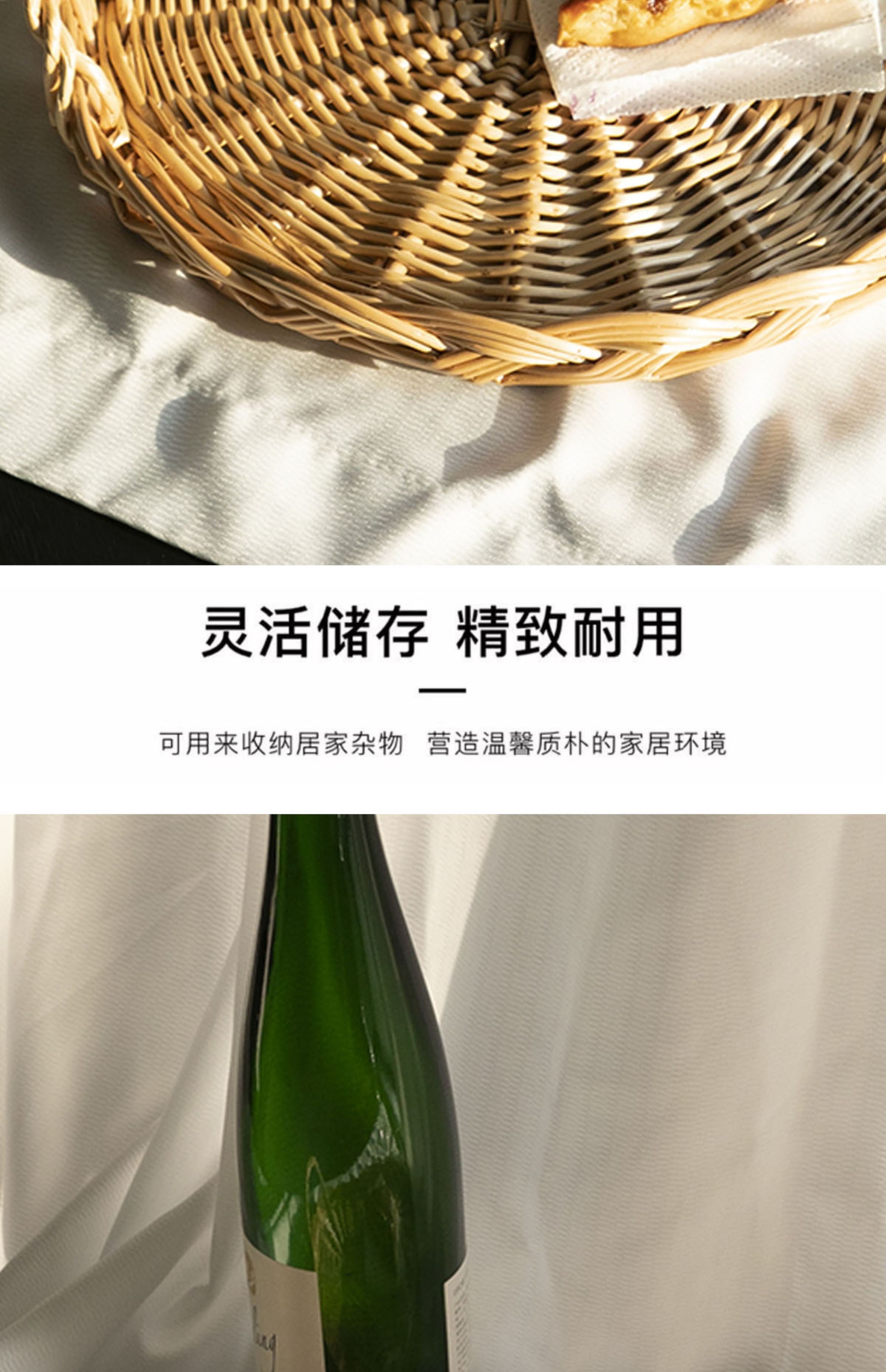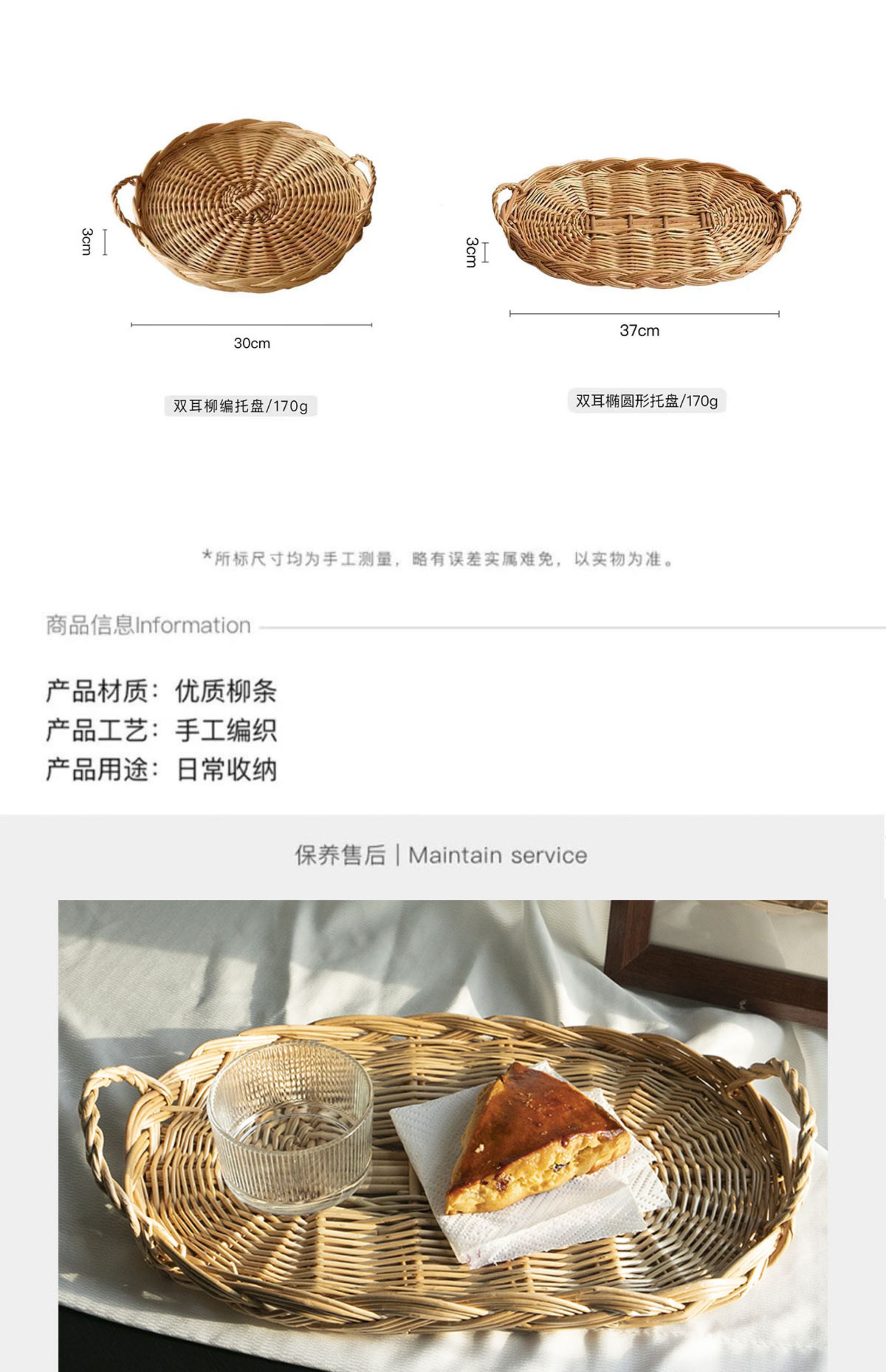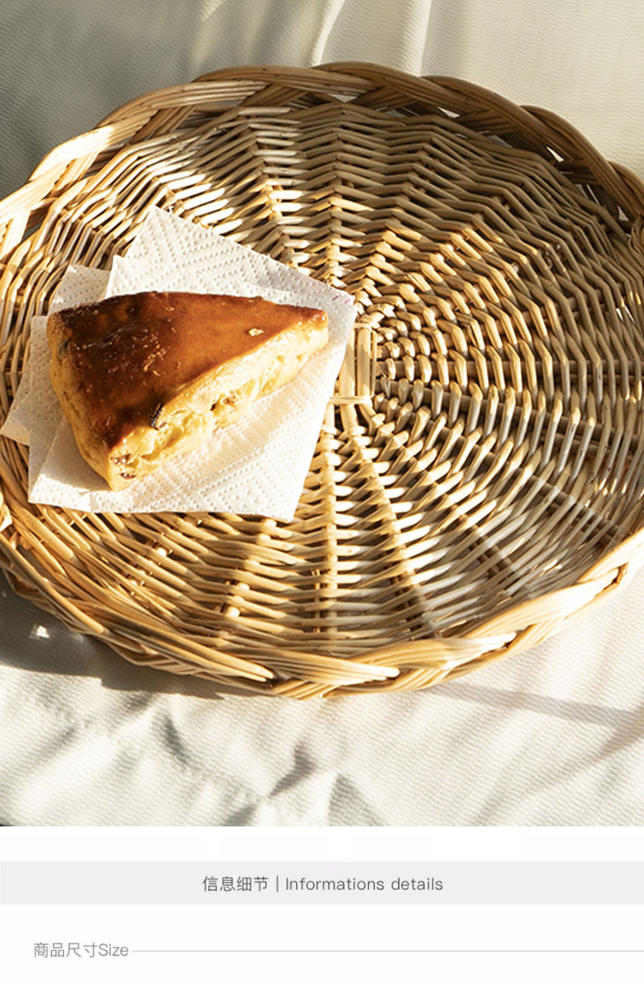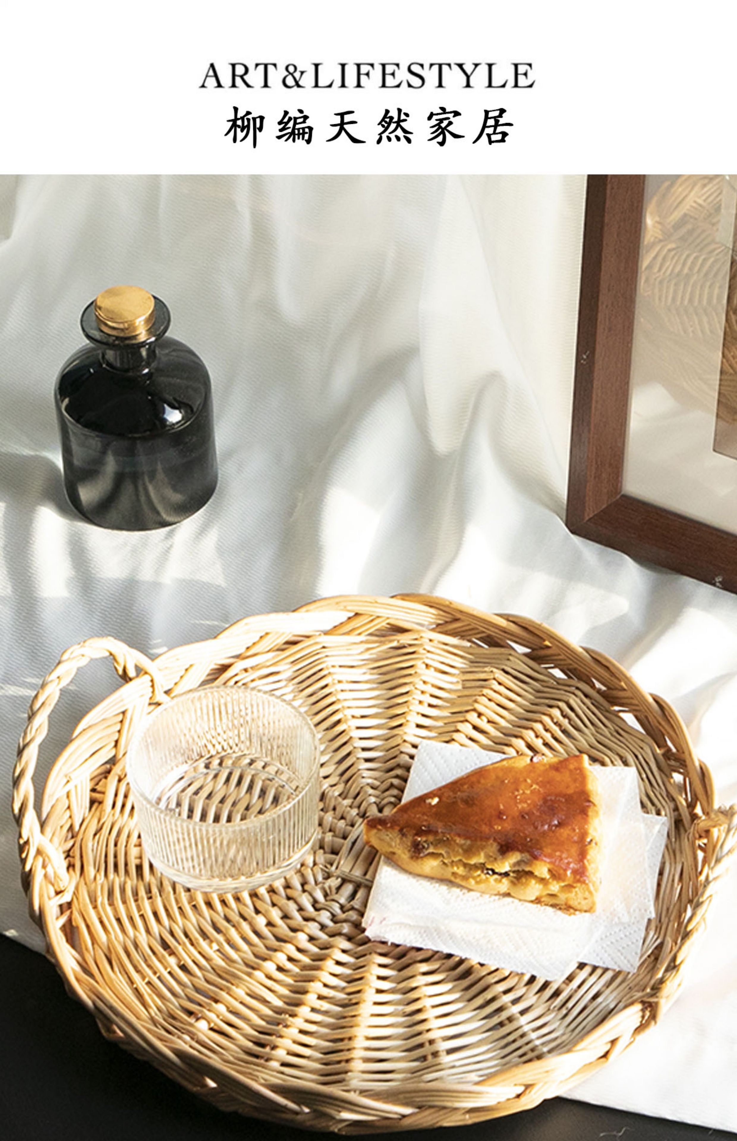手工柳编藤编水果篮圆形食物烘培面包托盘陈列展示篮子零食筐果盘