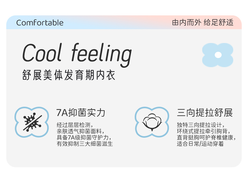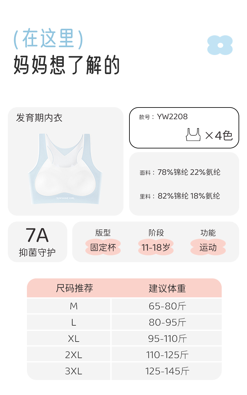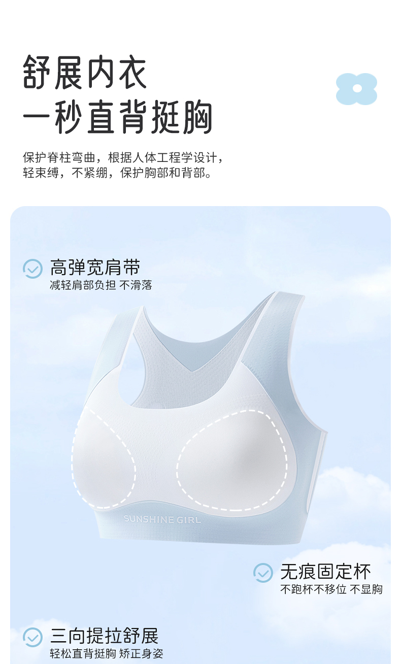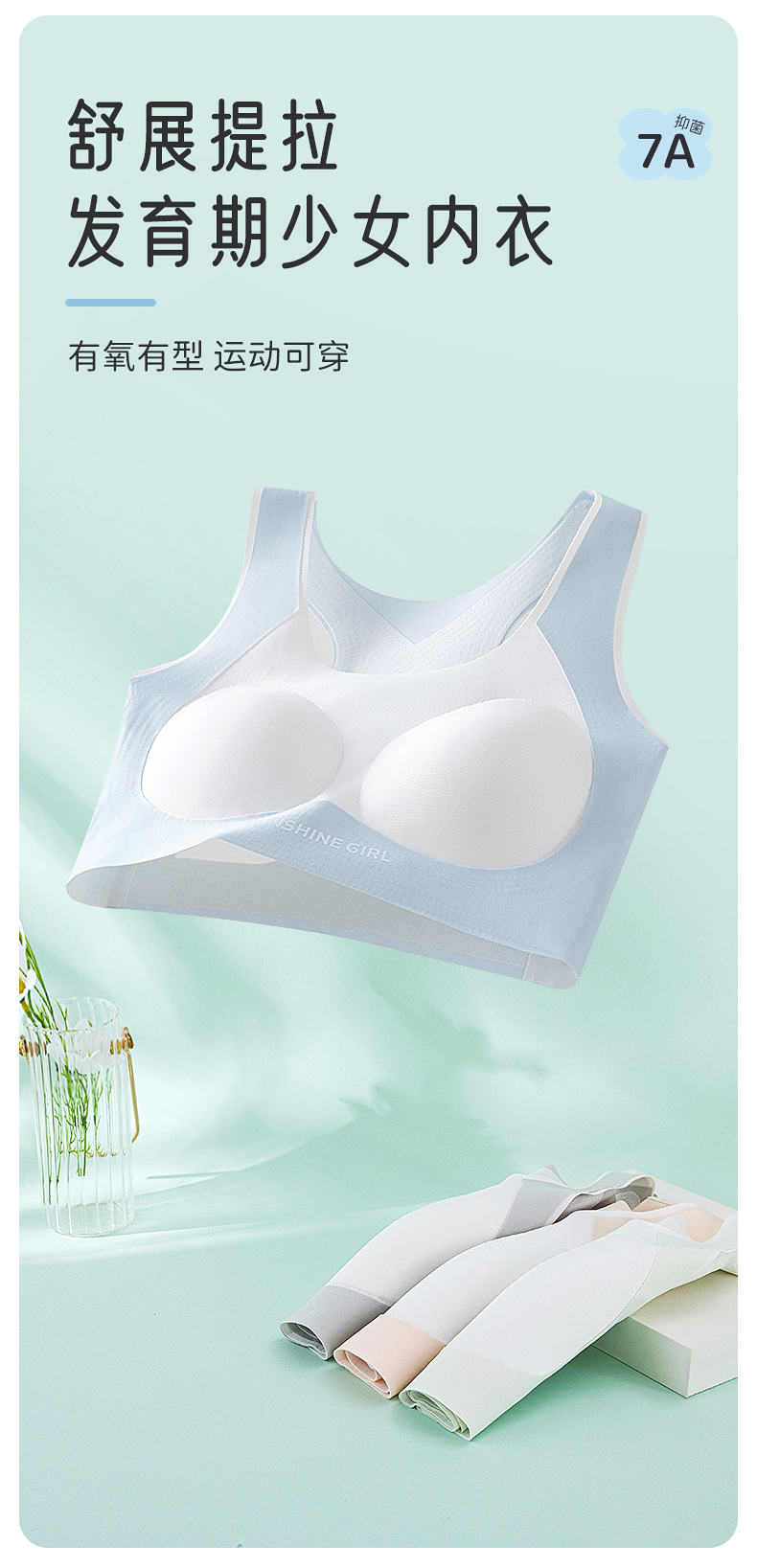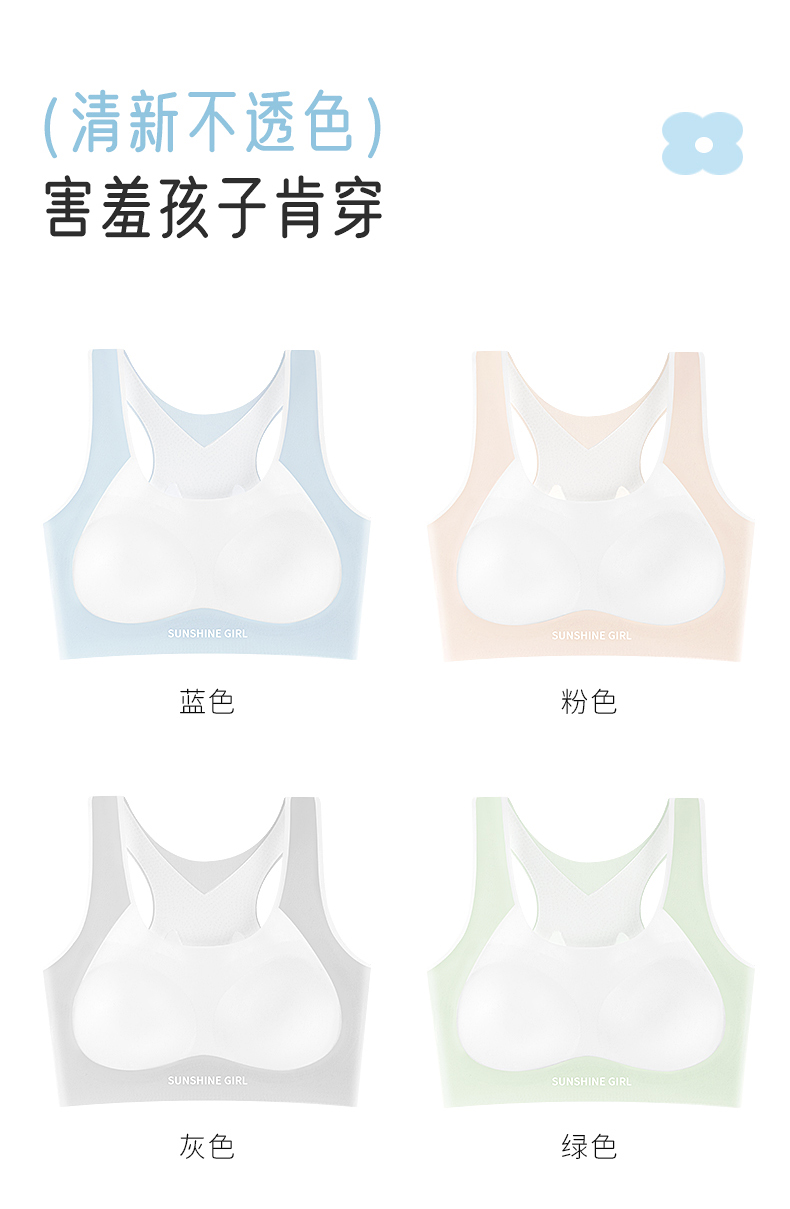 青春期少女发育内衣学生女童背心夏季薄款初中高中生运动文胸无痕