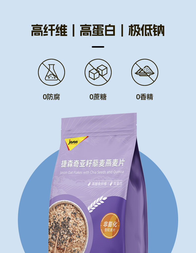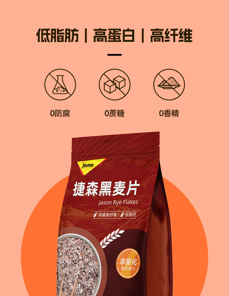 捷森黑麦麦片低脂高纤高蛋白早餐低GI燕麦麦麸健身代餐奇亚籽藜麦