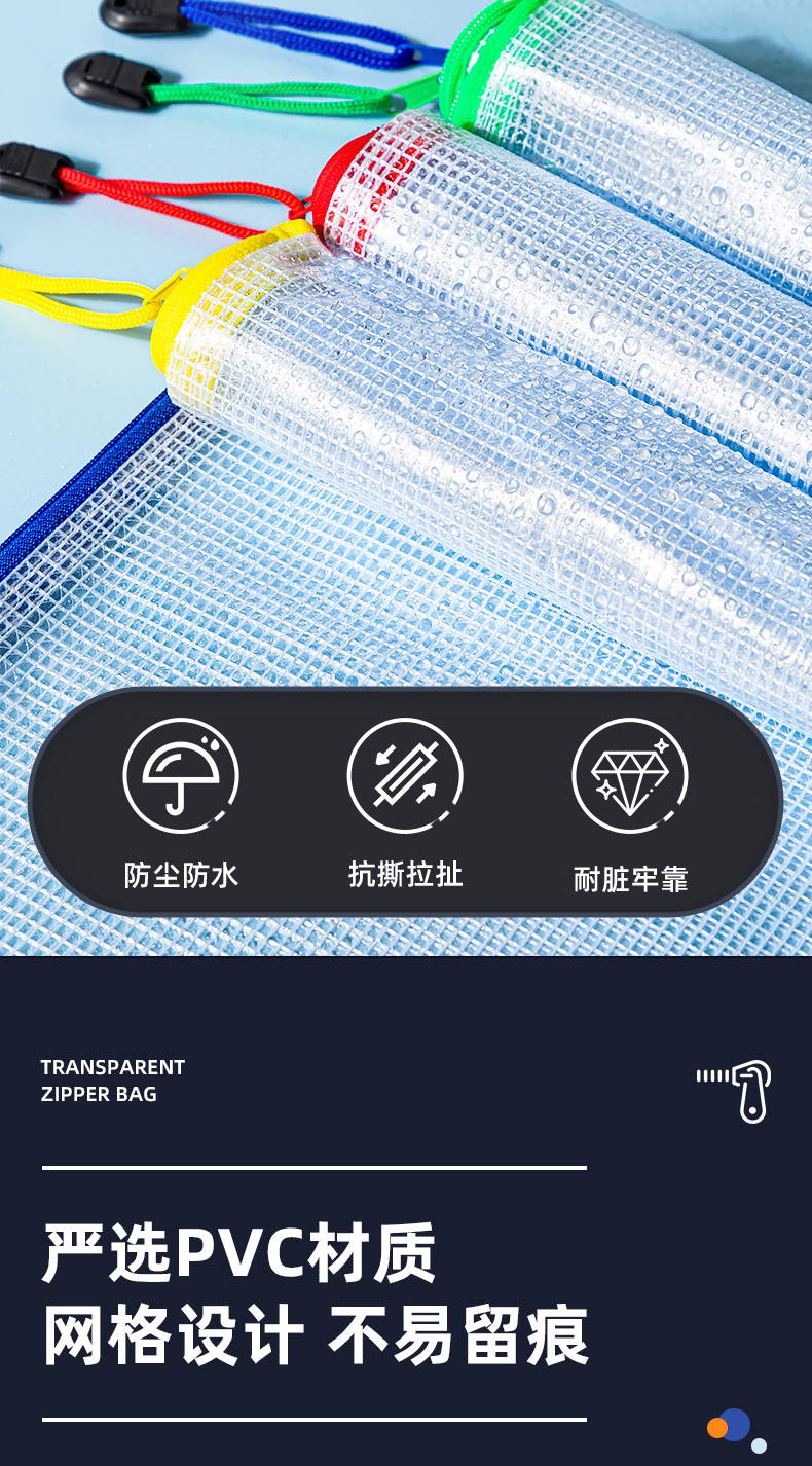 得力文件袋拉链式a4/a5网格拉链袋加厚防水档案资料袋大容量办公文件夹袋学生专用书本试卷收纳袋票据证件袋