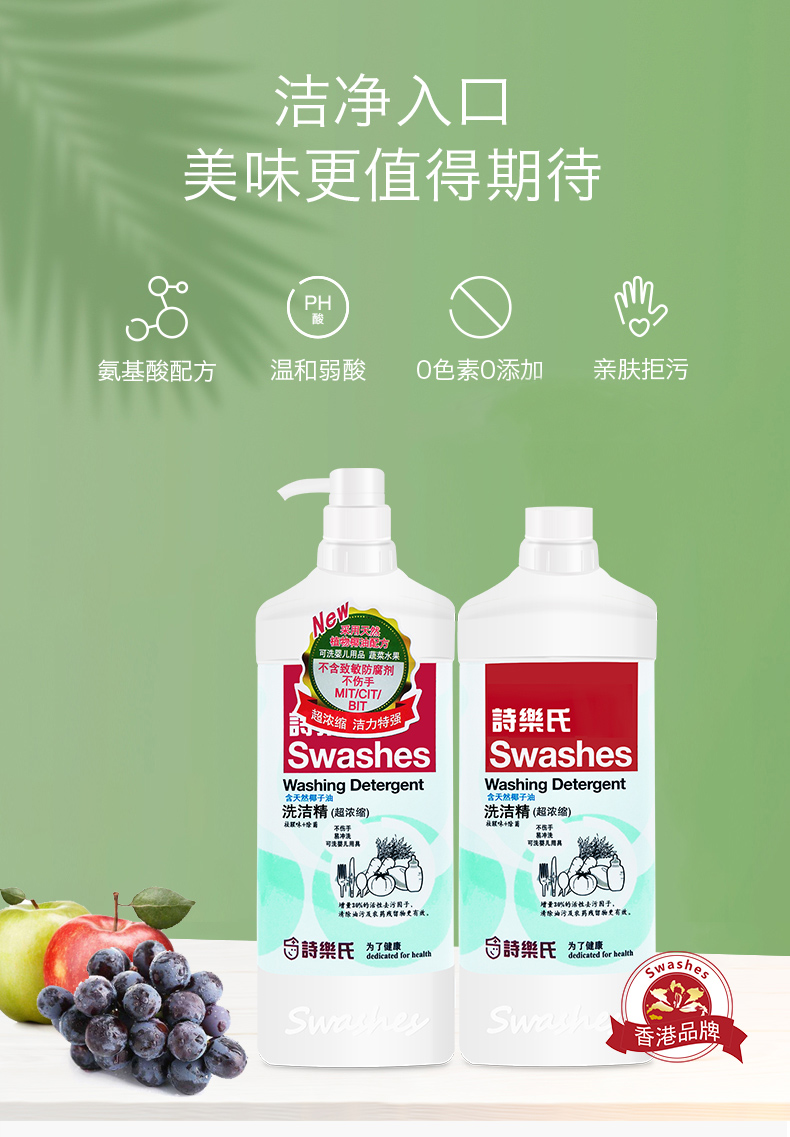 诗乐氏A型洗洁精不伤手宝宝婴儿奶瓶清洗剂果蔬餐具洗涤剂专用