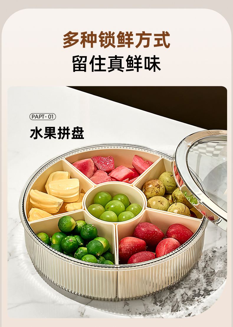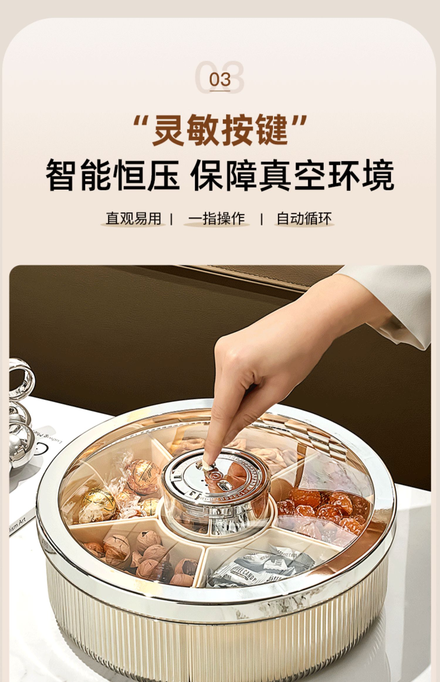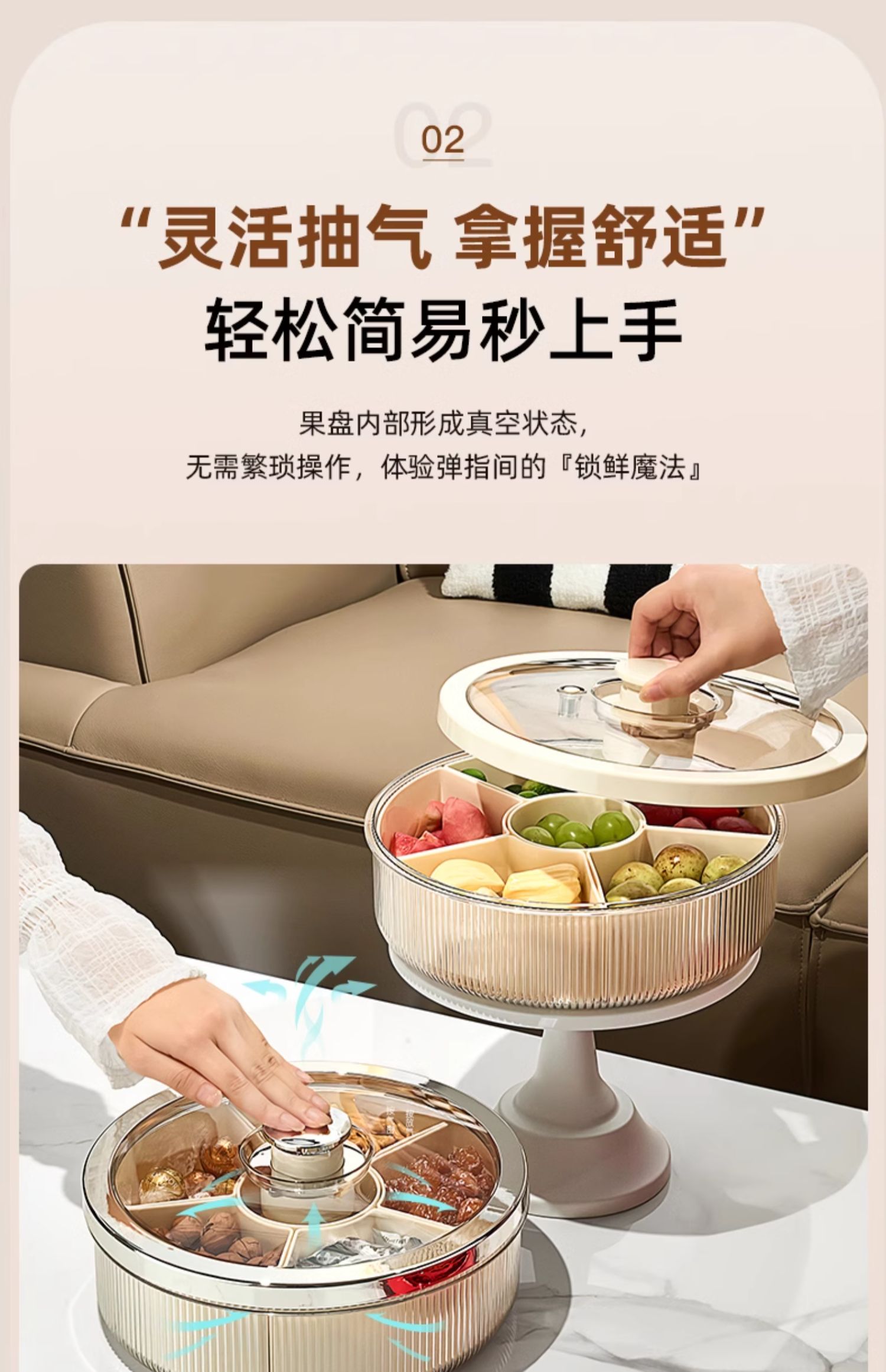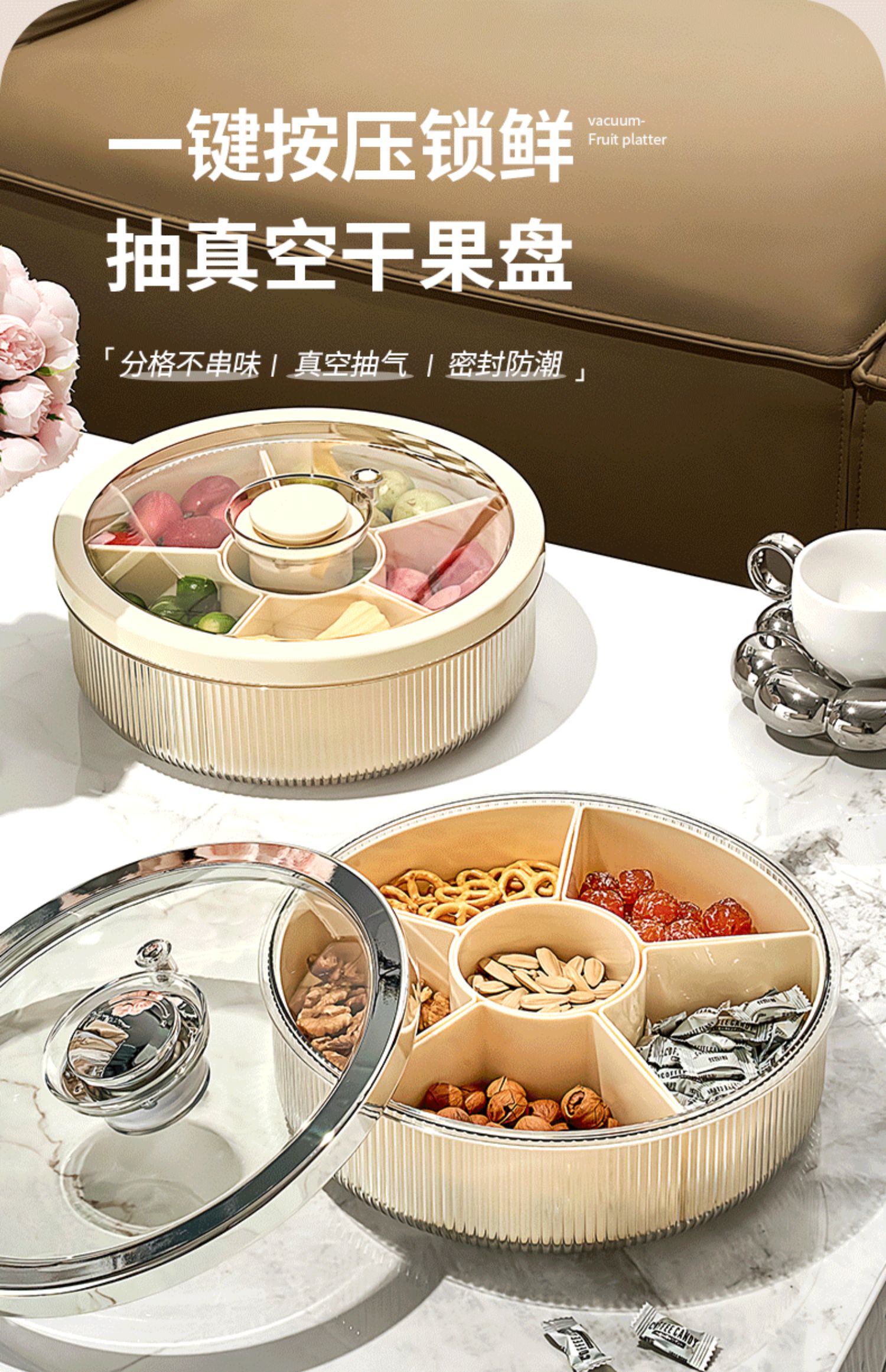奶油风真空果盘高端精致高颜值家用客厅茶几零食摆放盘干果收纳盒