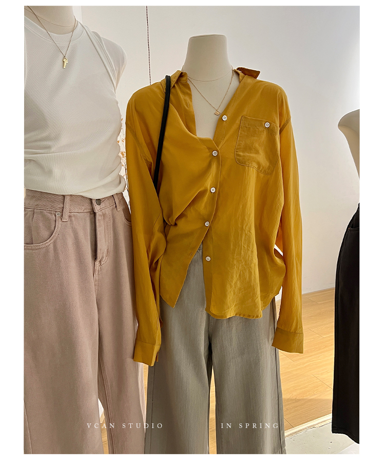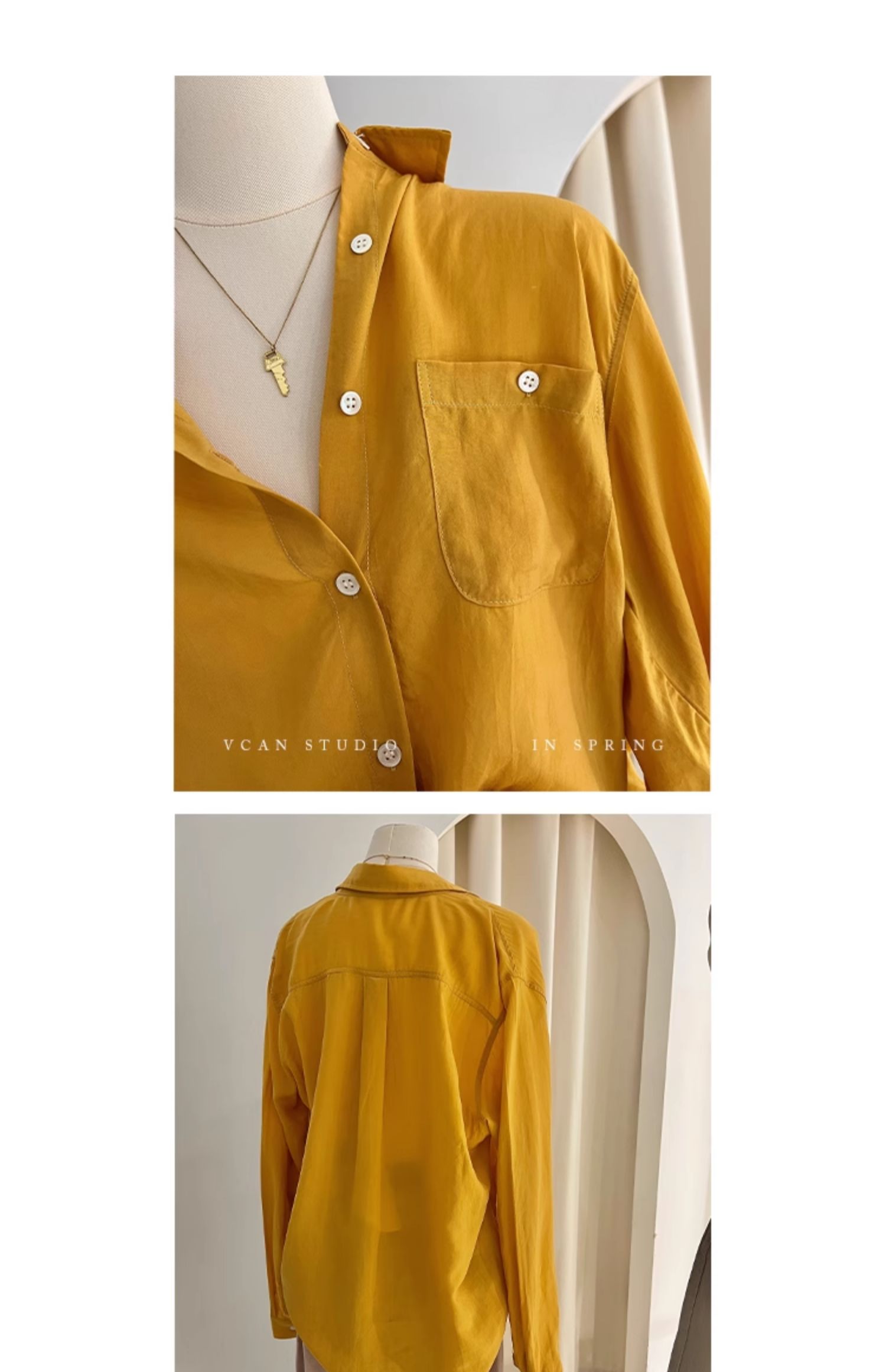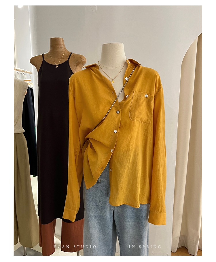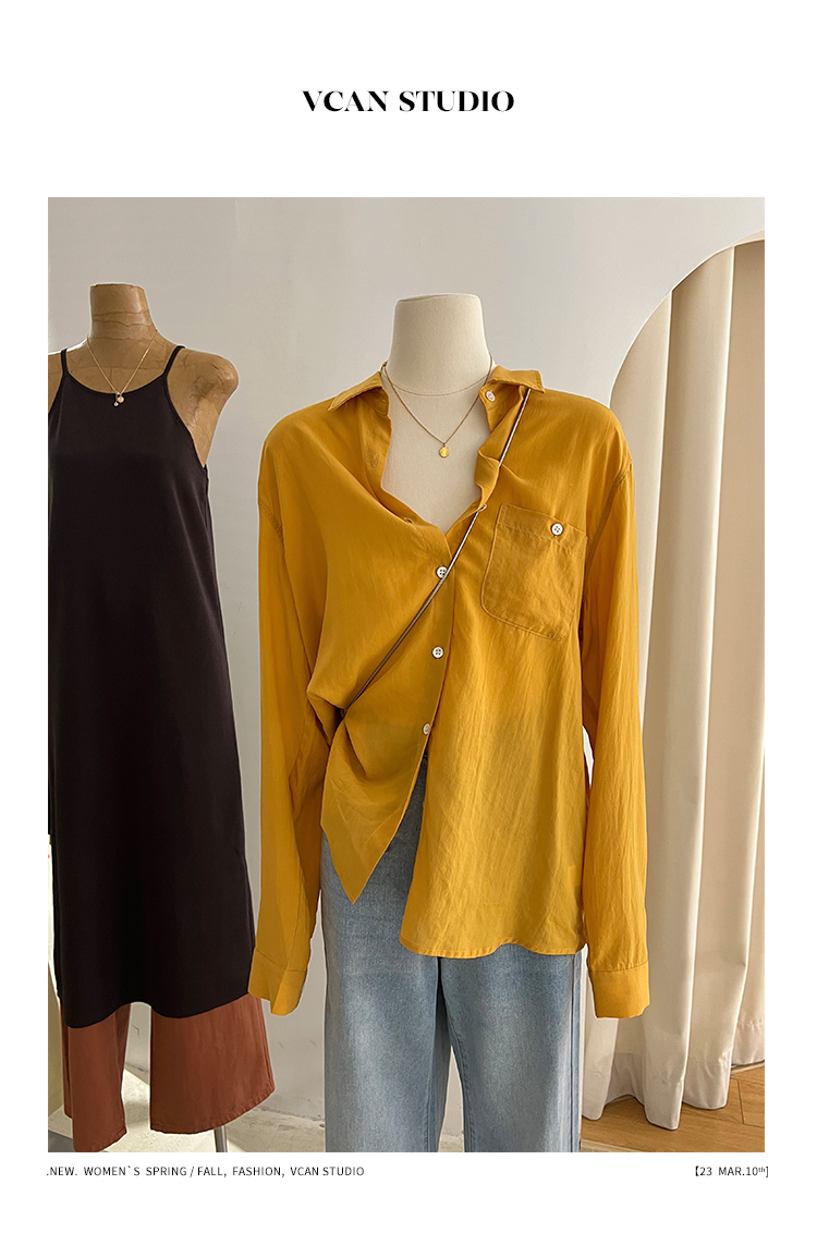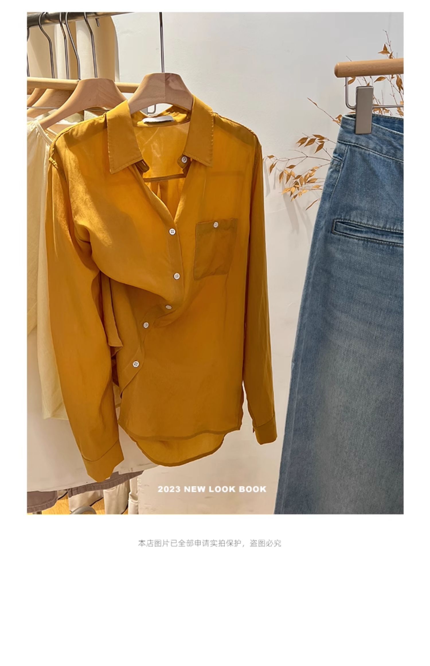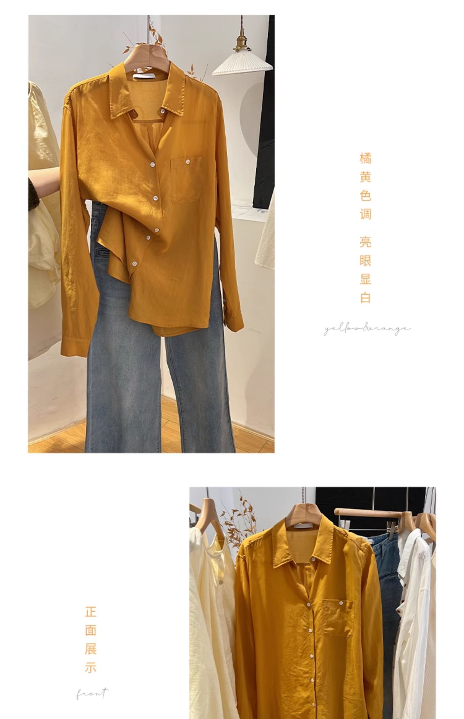 落日橘衬衫女设计感小众外穿宽松时髦薄款防晒衫休闲韩版别致上衣