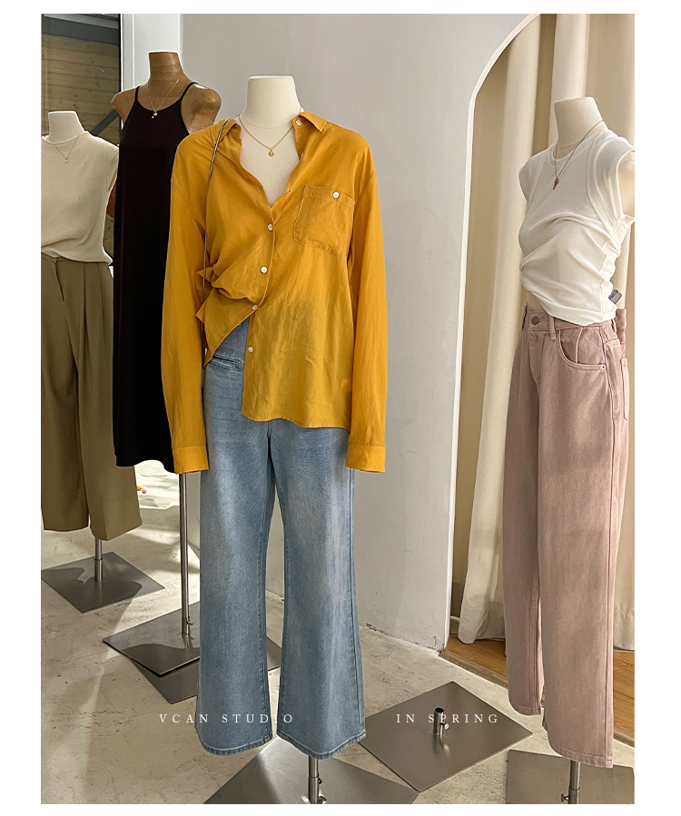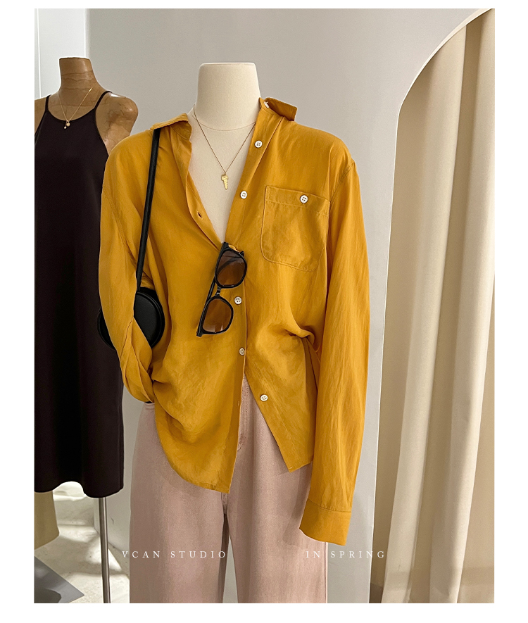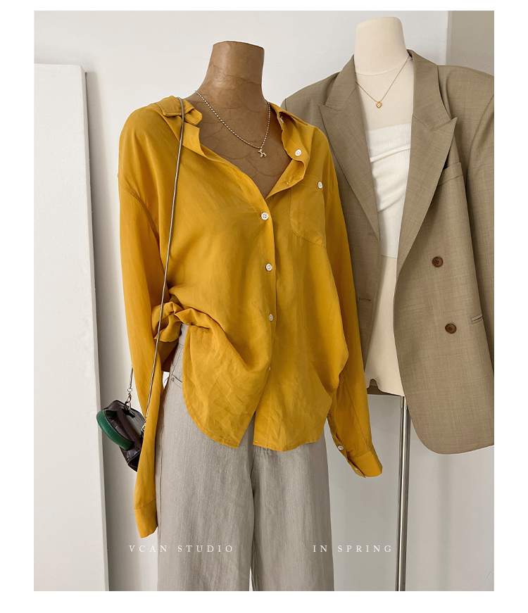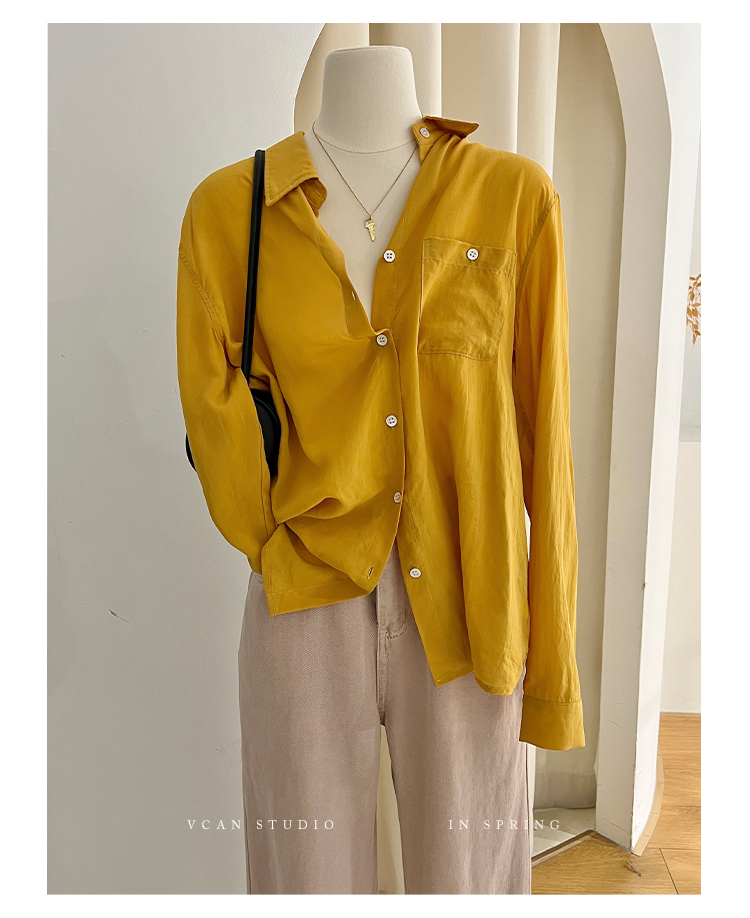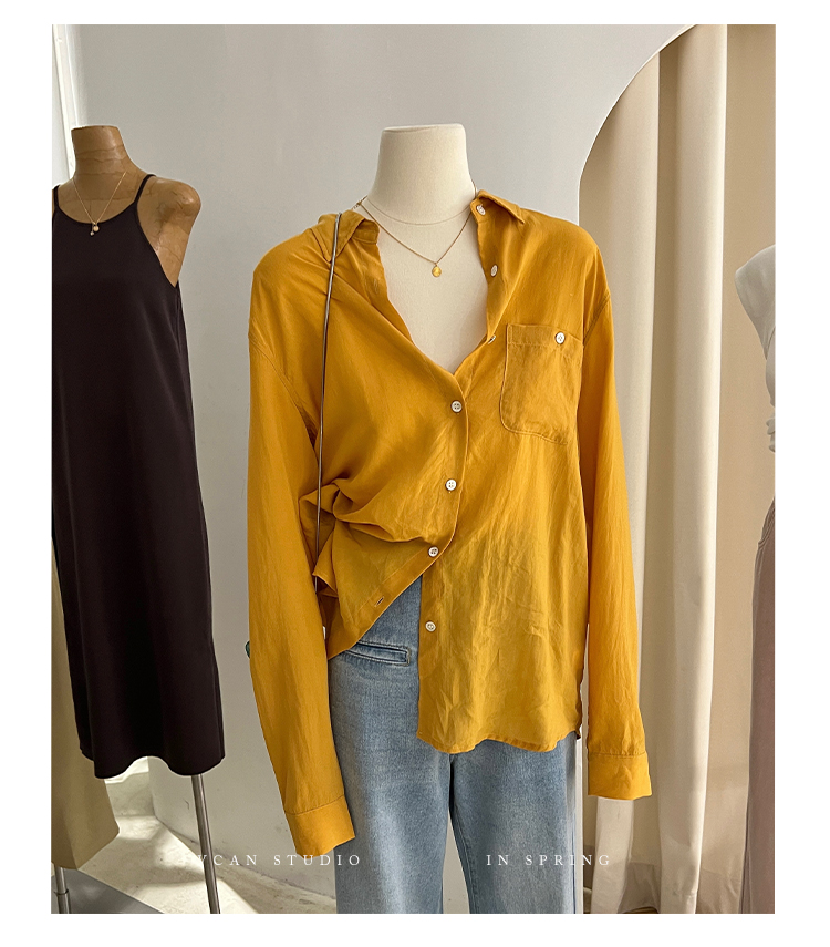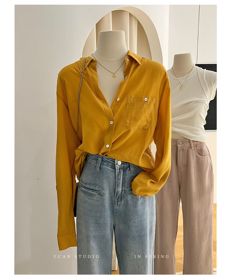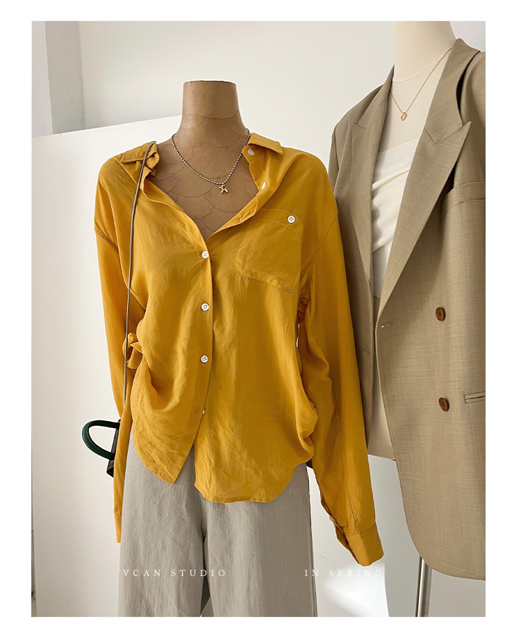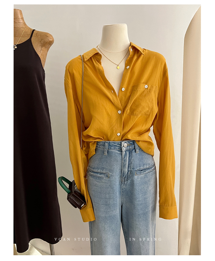 落日橘衬衫女设计感小众外穿宽松时髦薄款防晒衫休闲韩版别致上衣