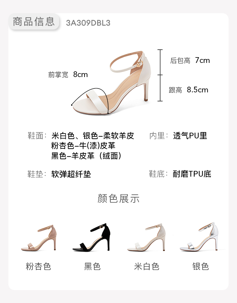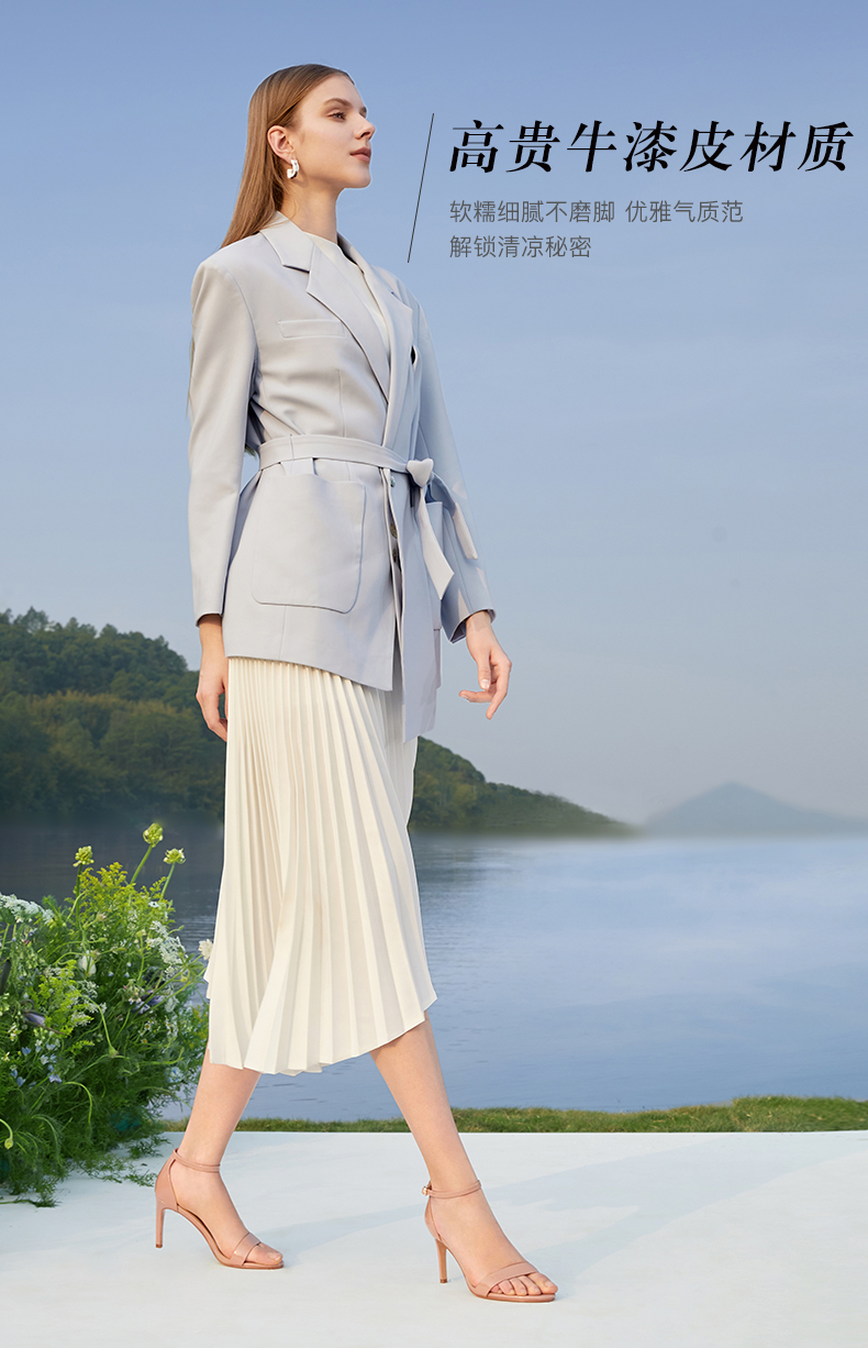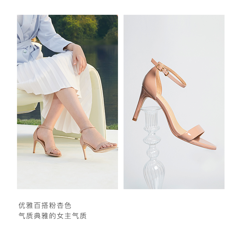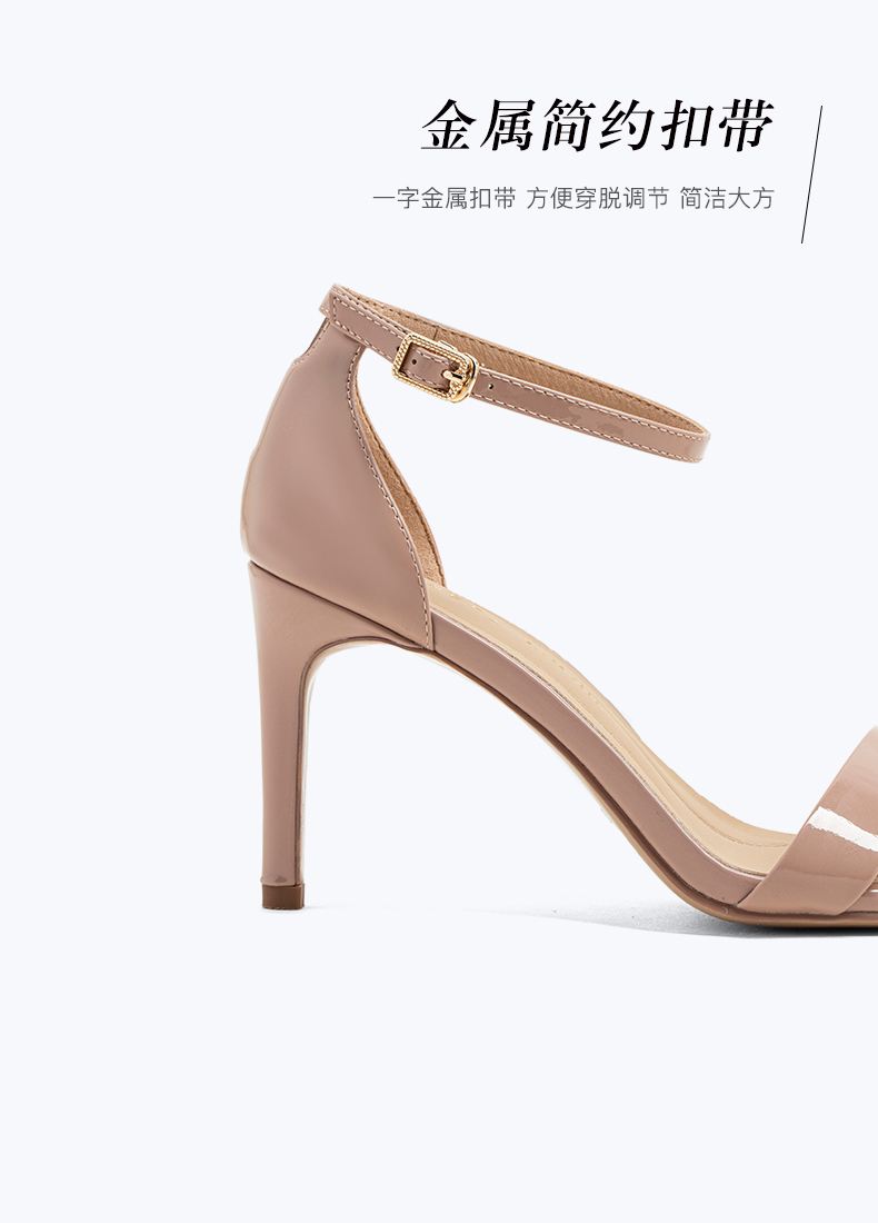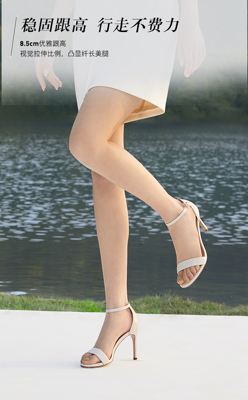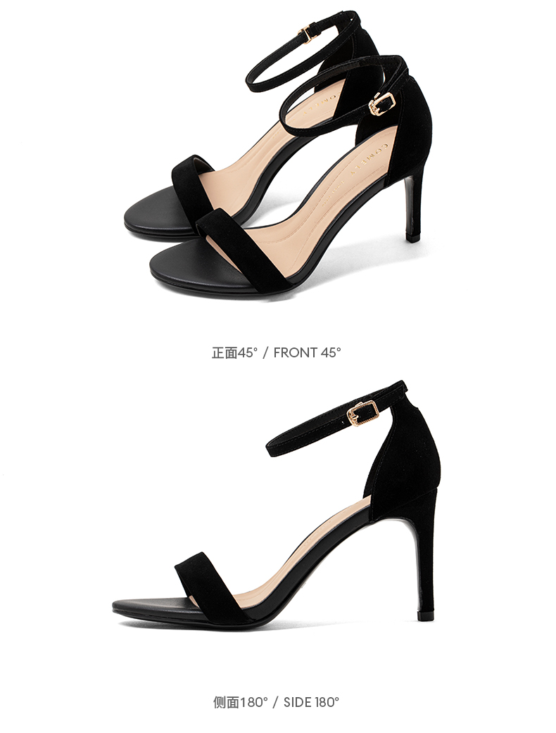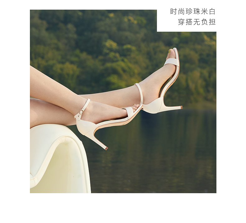 康莉一字带凉鞋女夏季新款细跟真皮仙女风优雅时尚性感高跟鞋女鞋