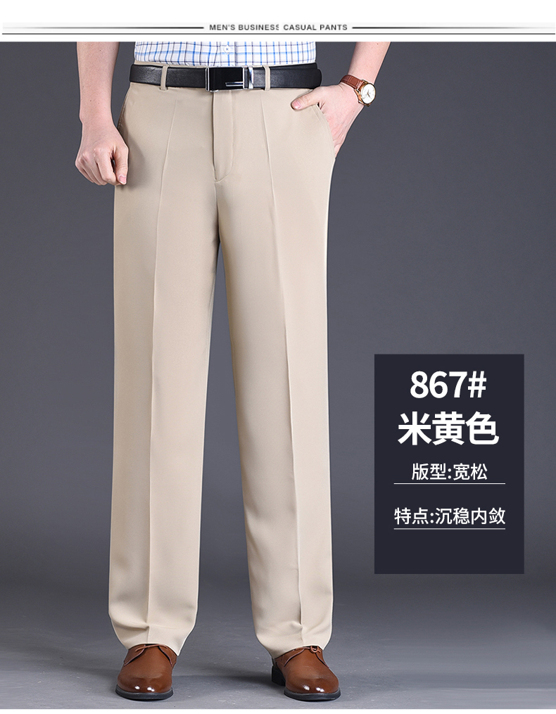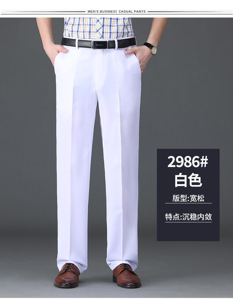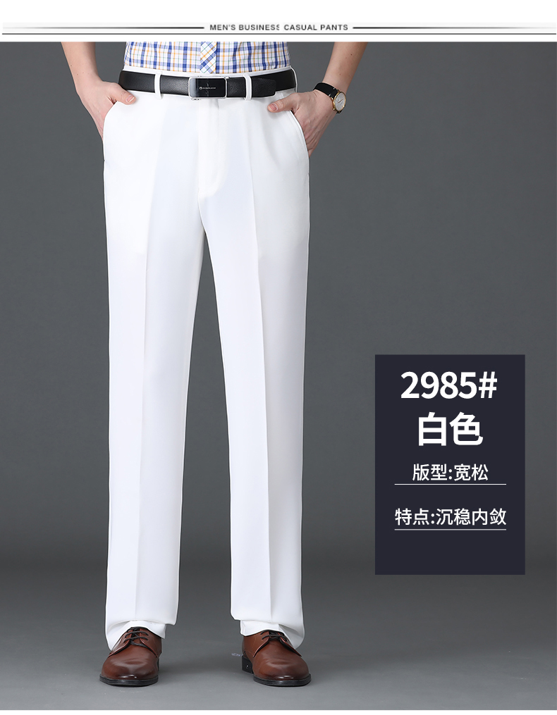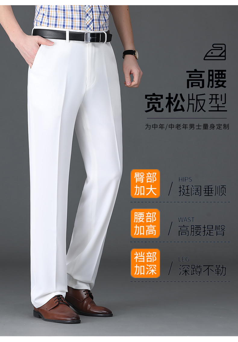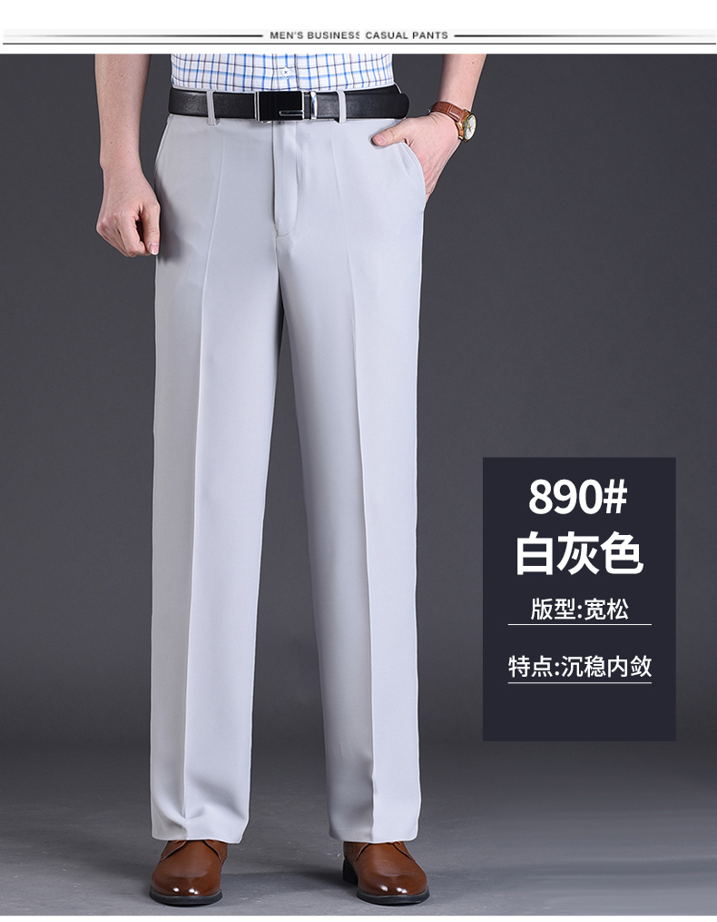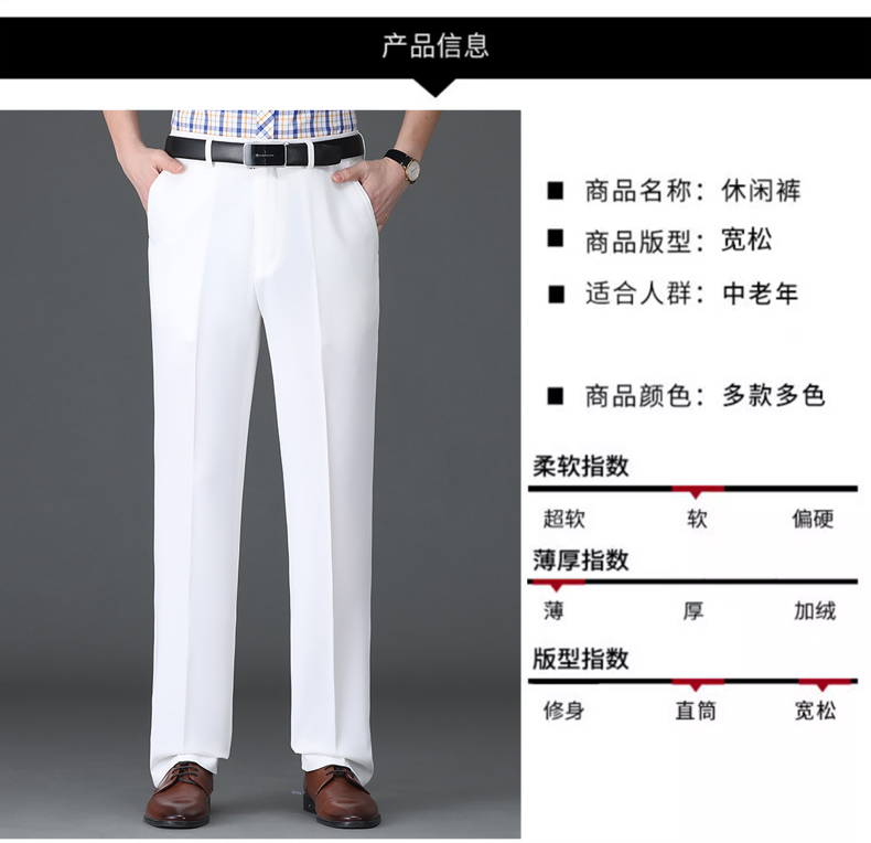 富贵鸟夏季薄款米白桑蚕丝中年西裤男超垂免烫宽松商务正装西装裤