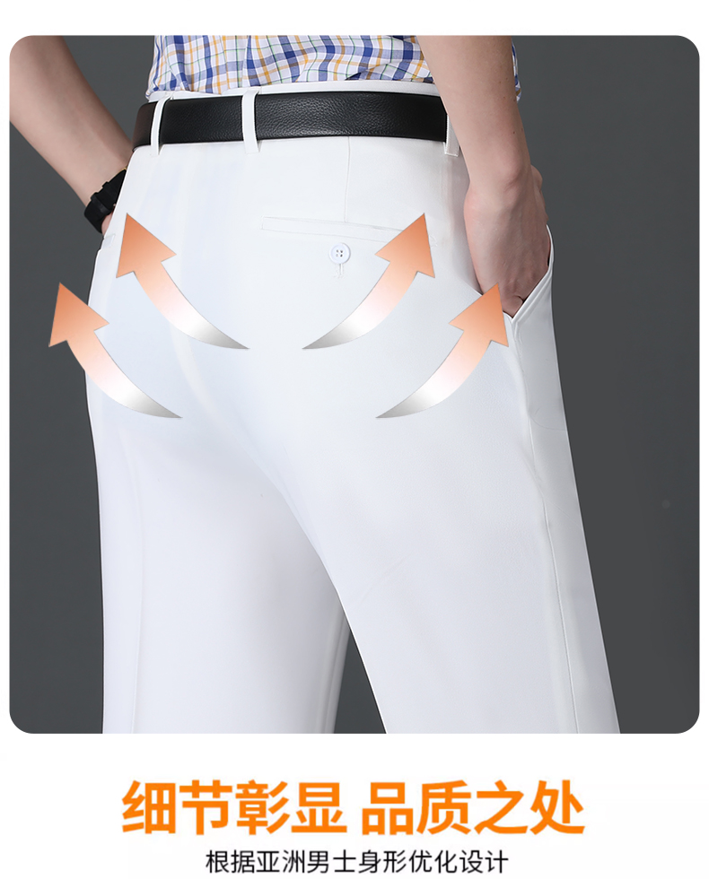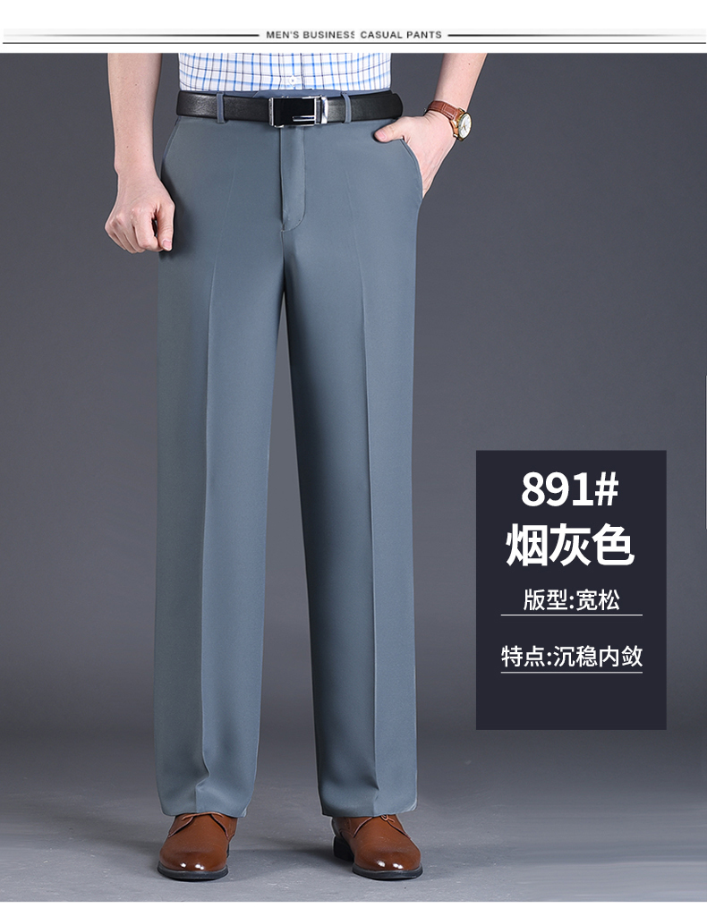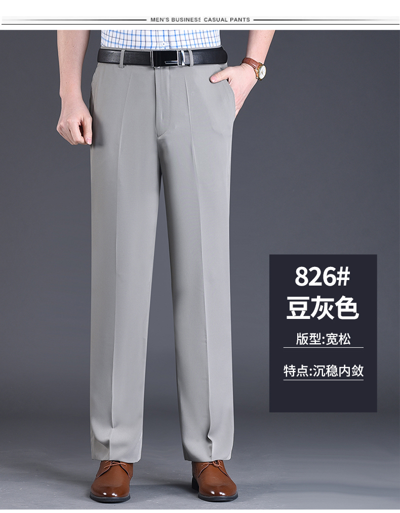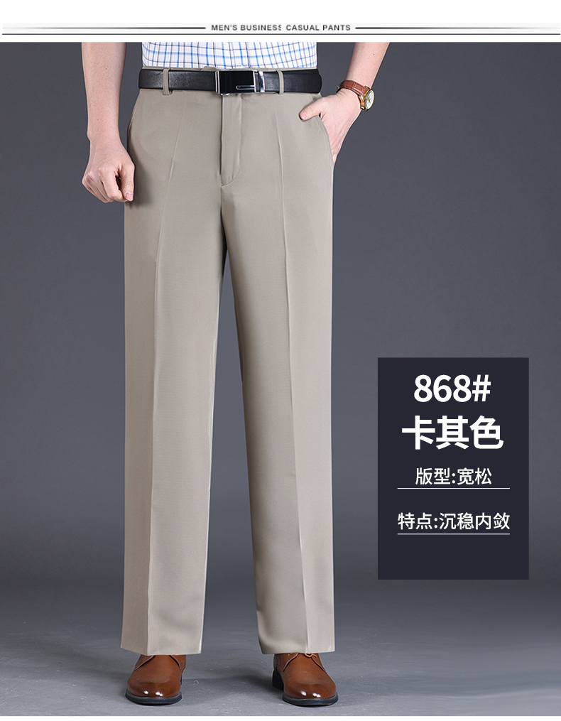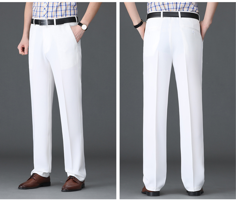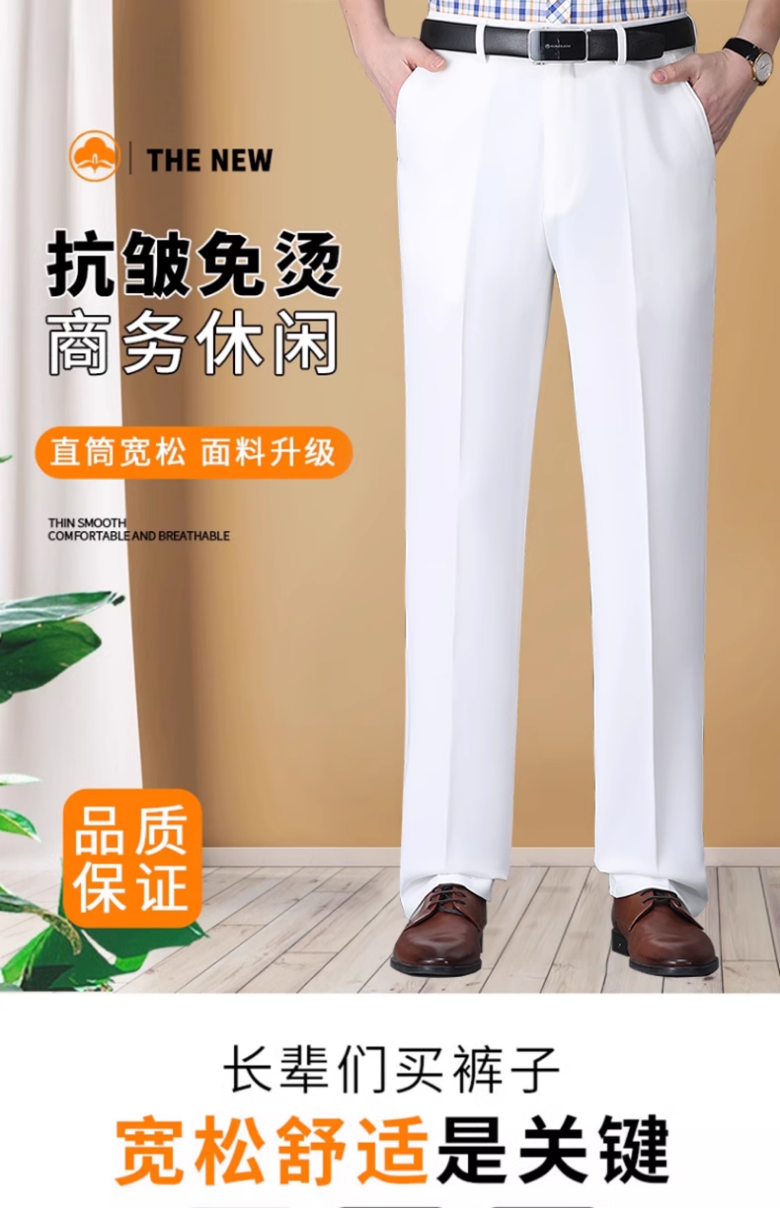 富贵鸟夏季薄款米白桑蚕丝中年西裤男超垂免烫宽松商务正装西装裤