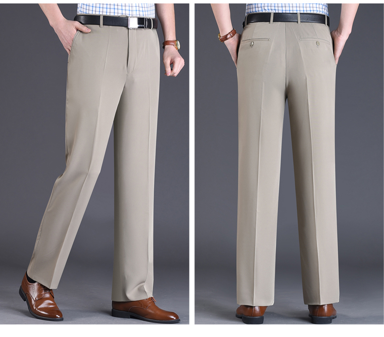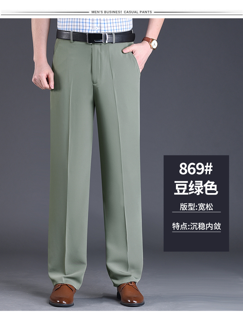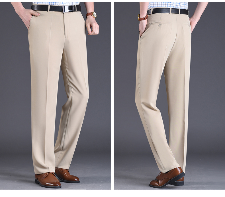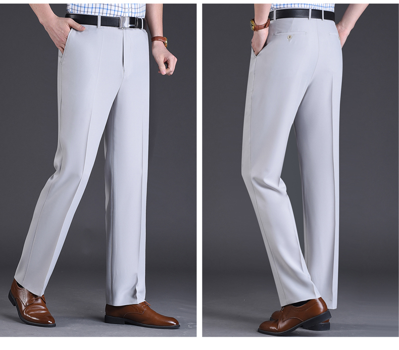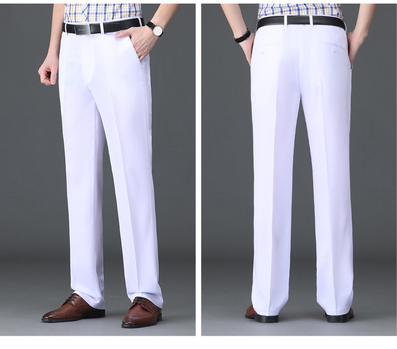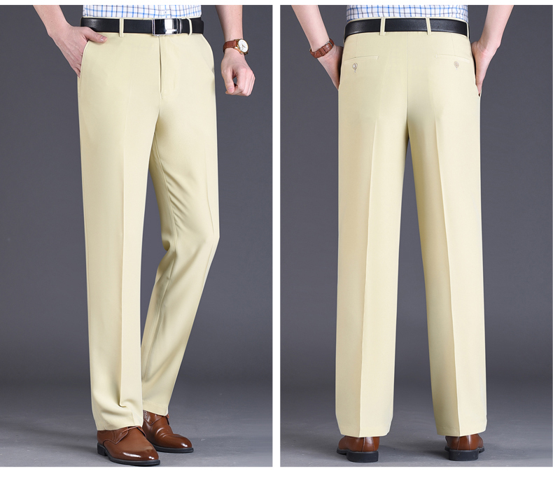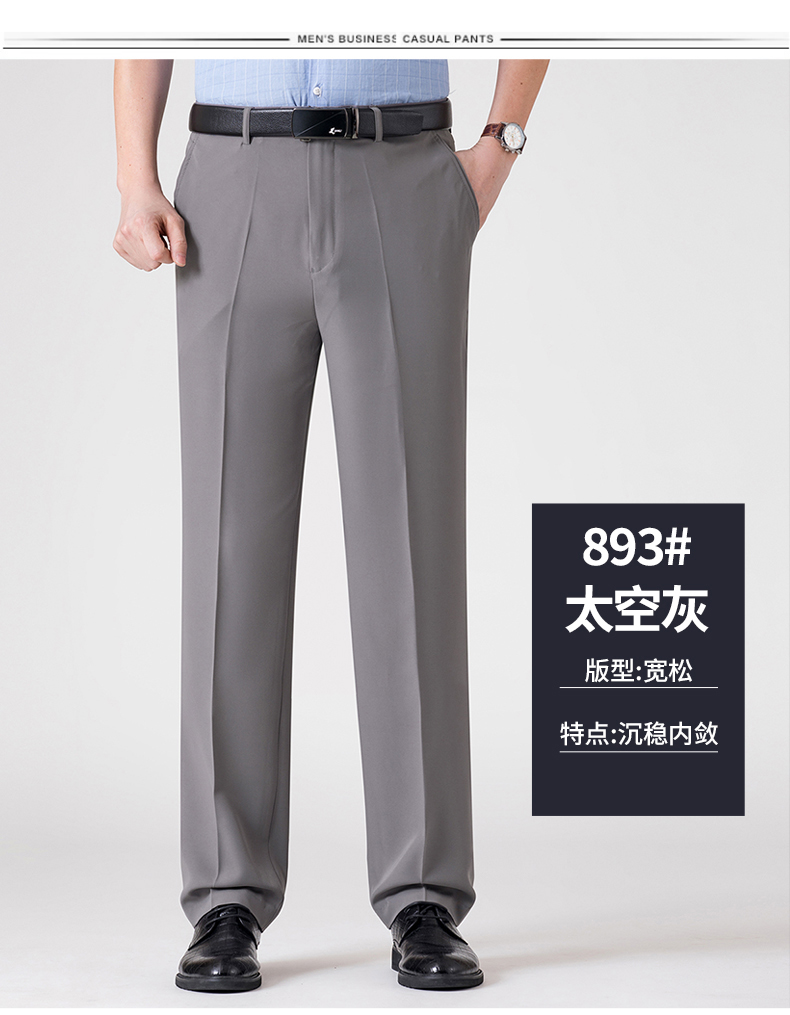 富贵鸟夏季薄款米白桑蚕丝中年西裤男超垂免烫宽松商务正装西装裤