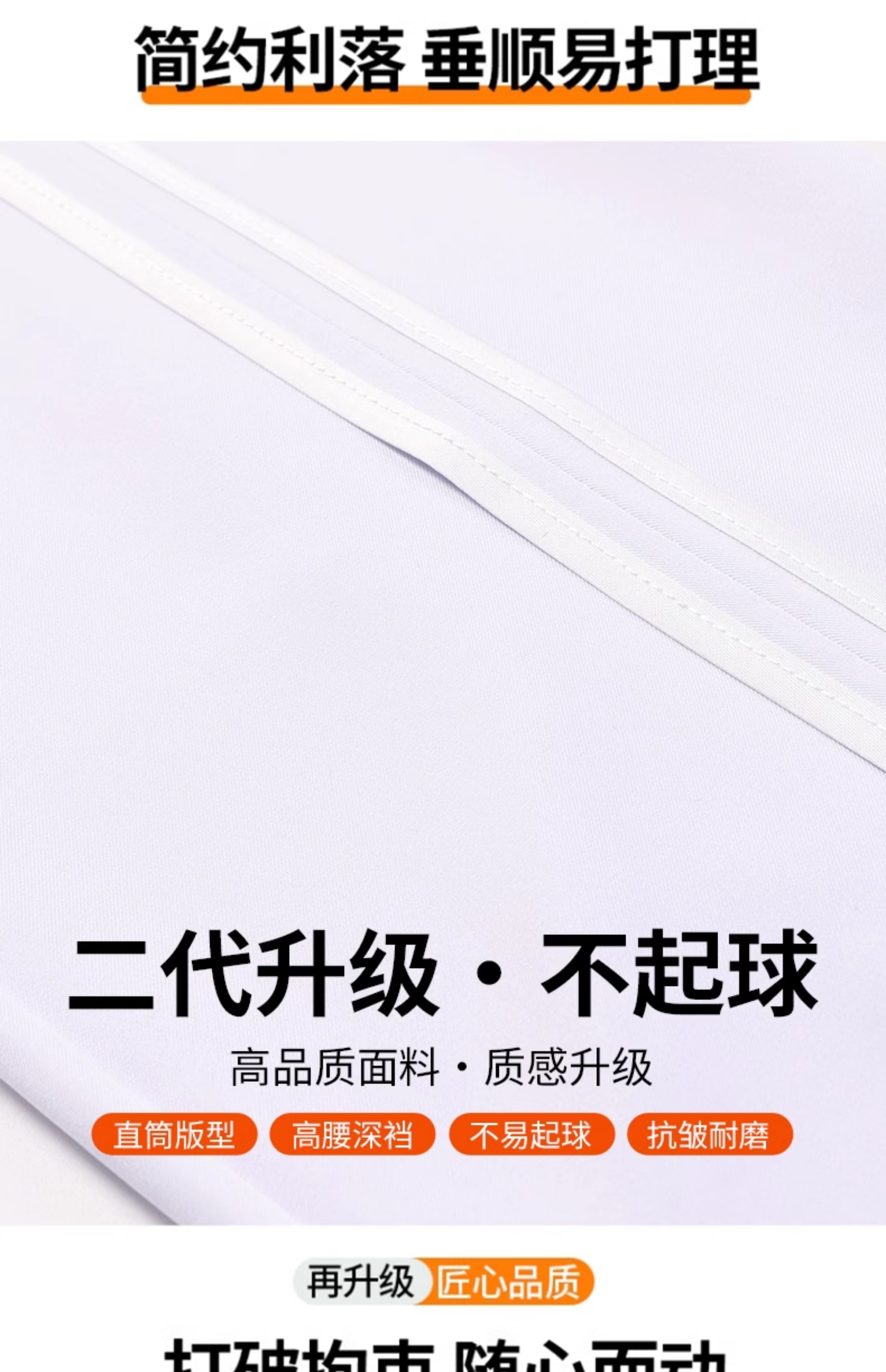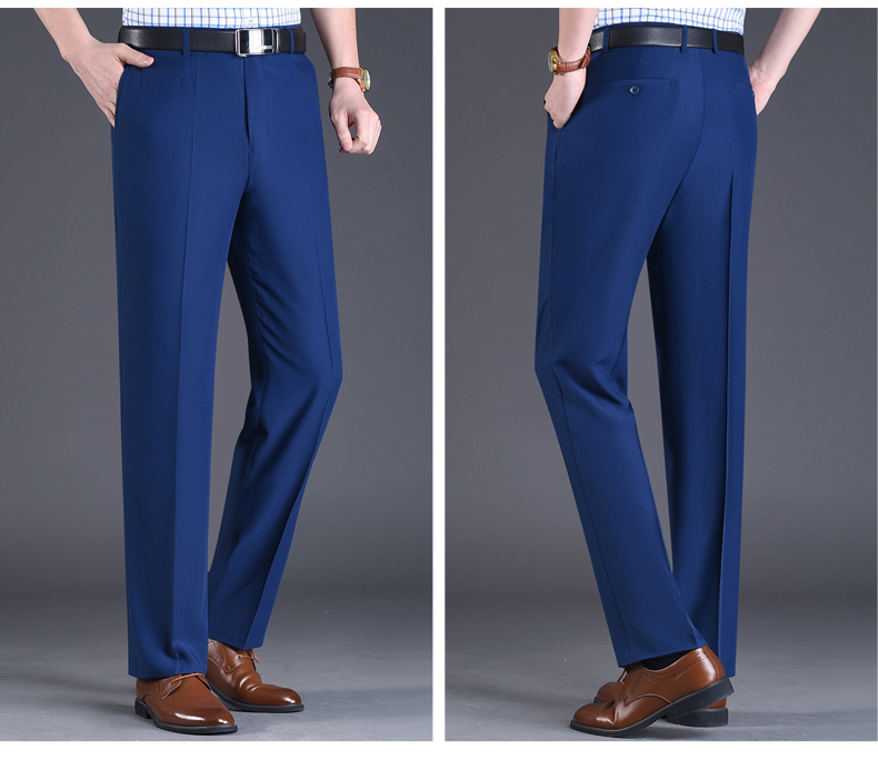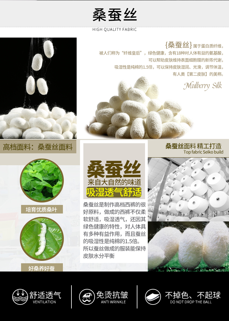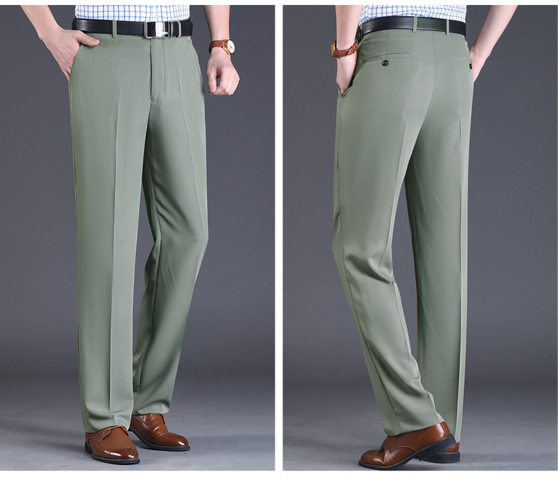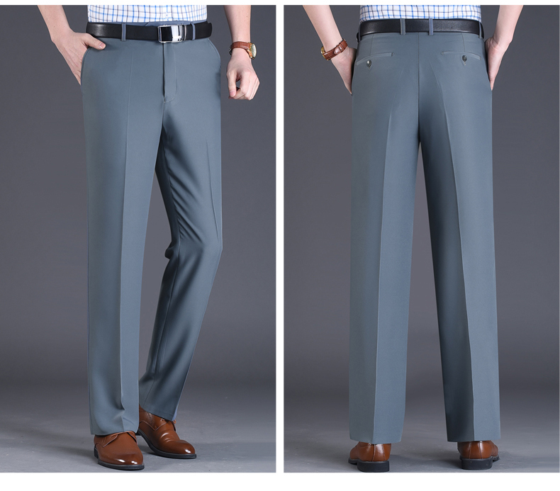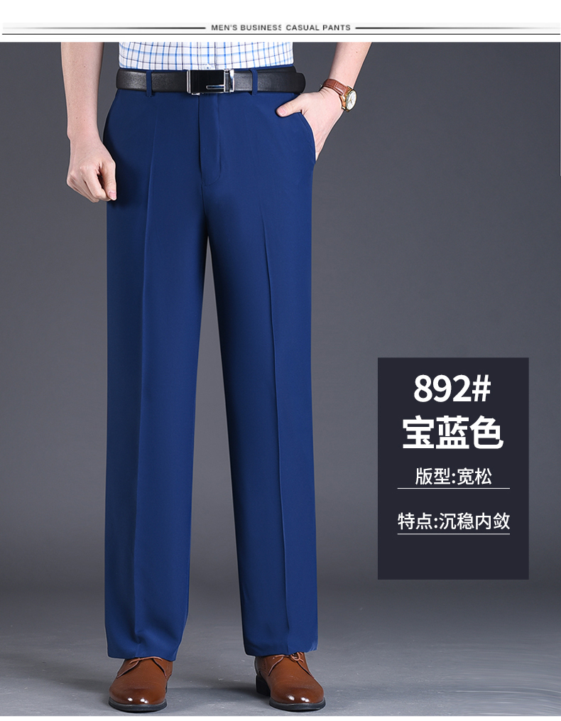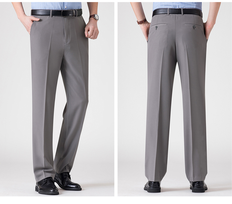 富贵鸟夏季薄款米白桑蚕丝中年西裤男超垂免烫宽松商务正装西装裤