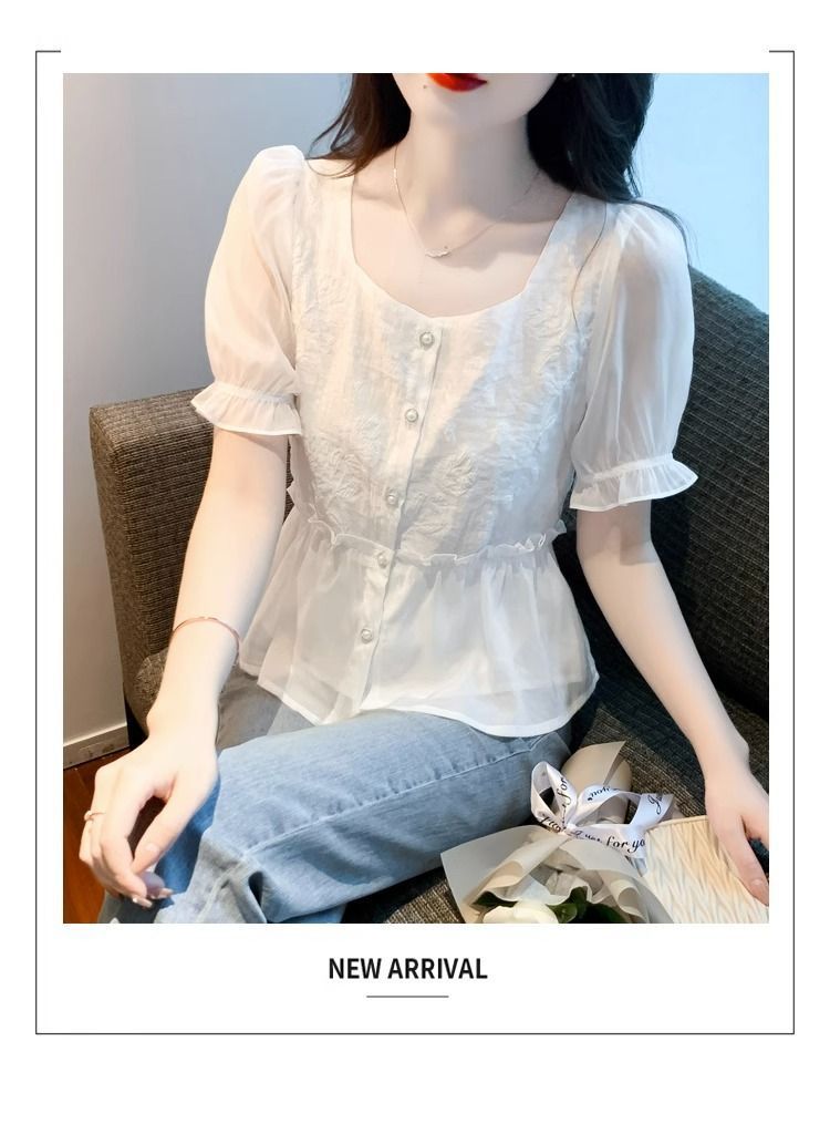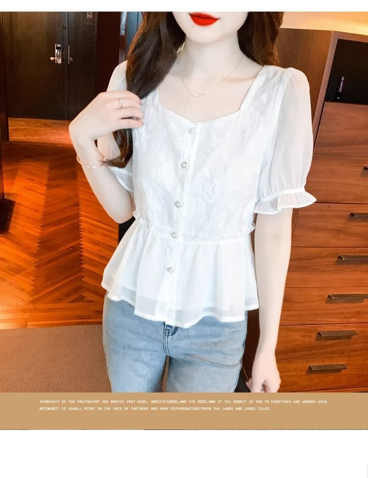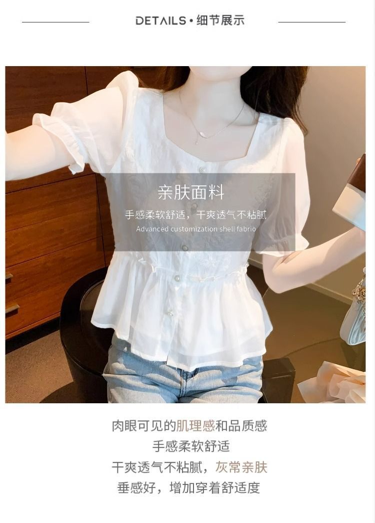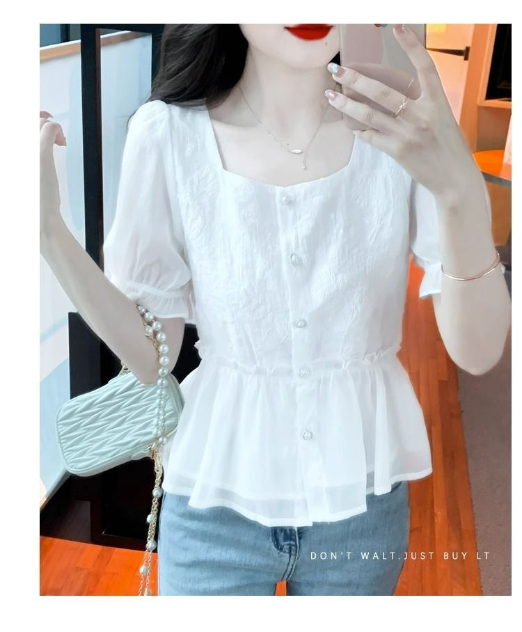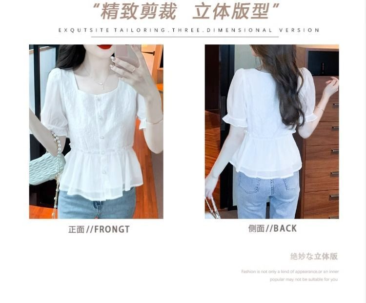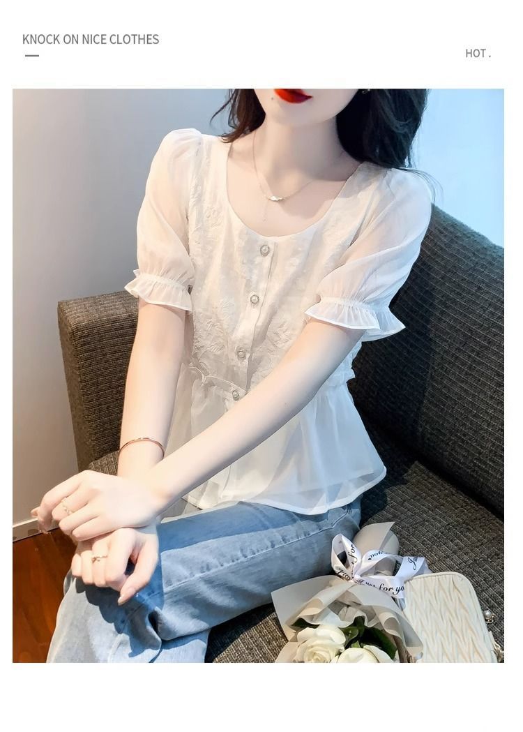 雪纺短袖衬衫女夏季2025新款减龄漂亮洋气小衫收腰遮肚泡泡袖上衣