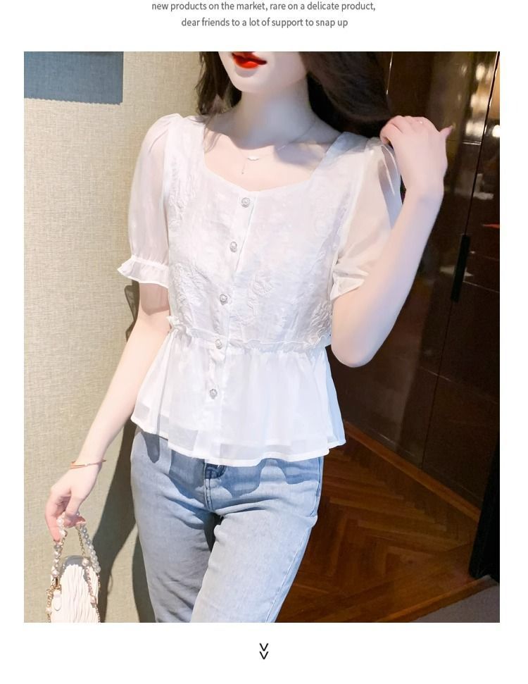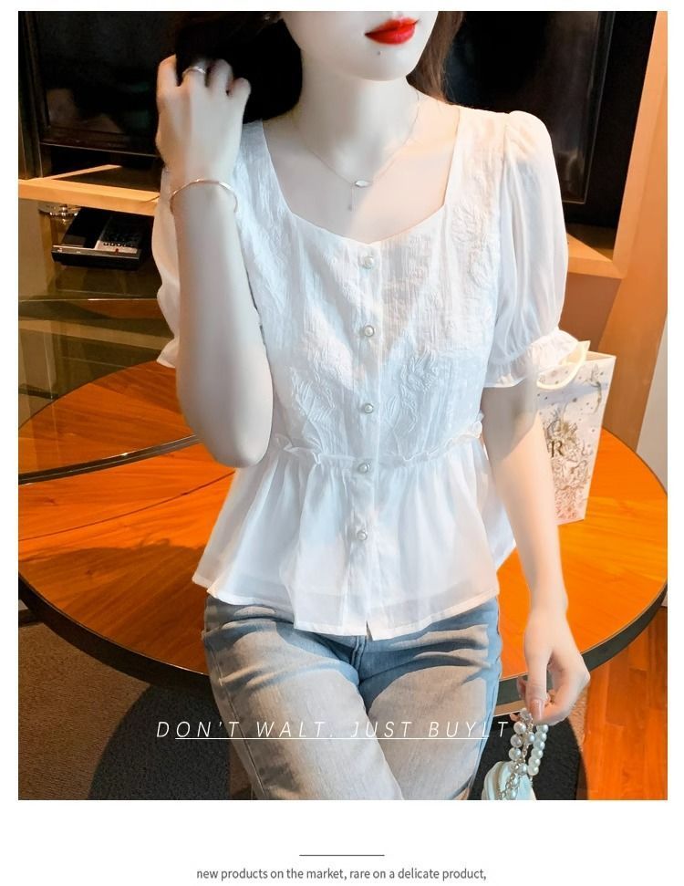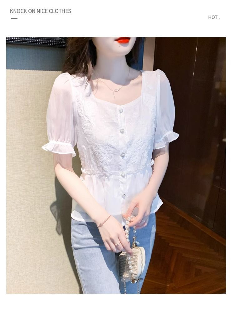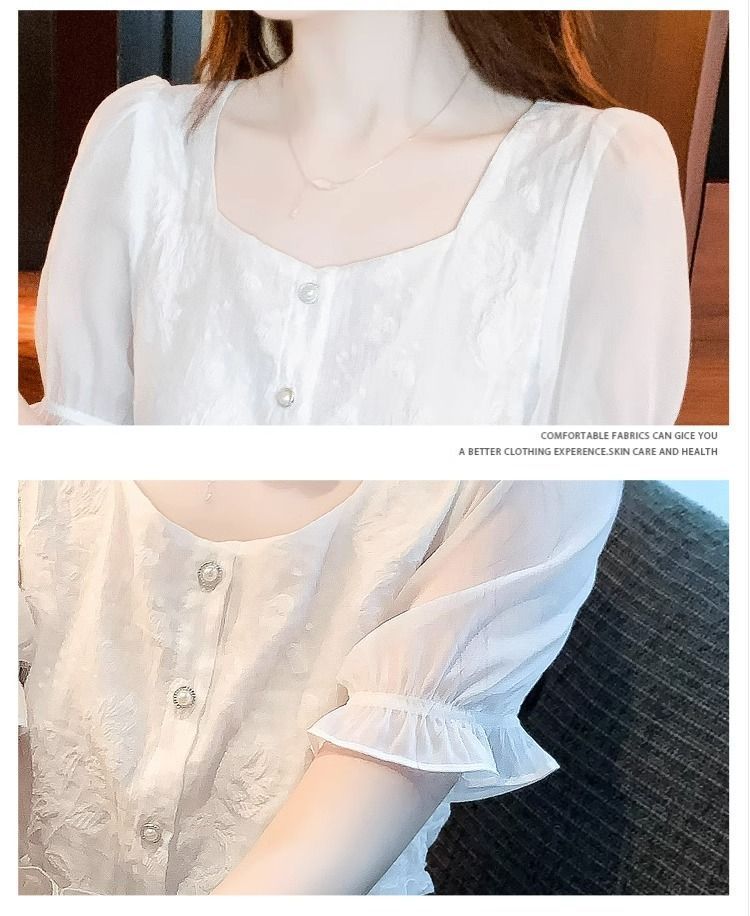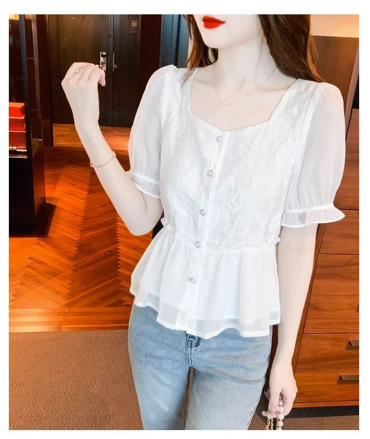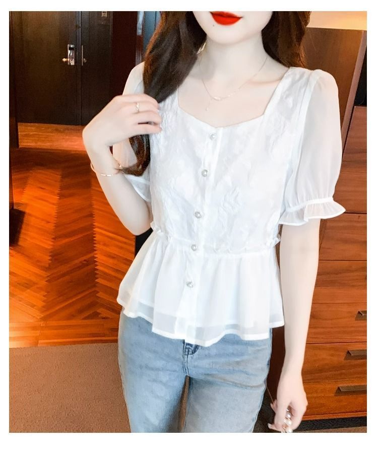 雪纺短袖衬衫女夏季2025新款减龄漂亮洋气小衫收腰遮肚泡泡袖上衣