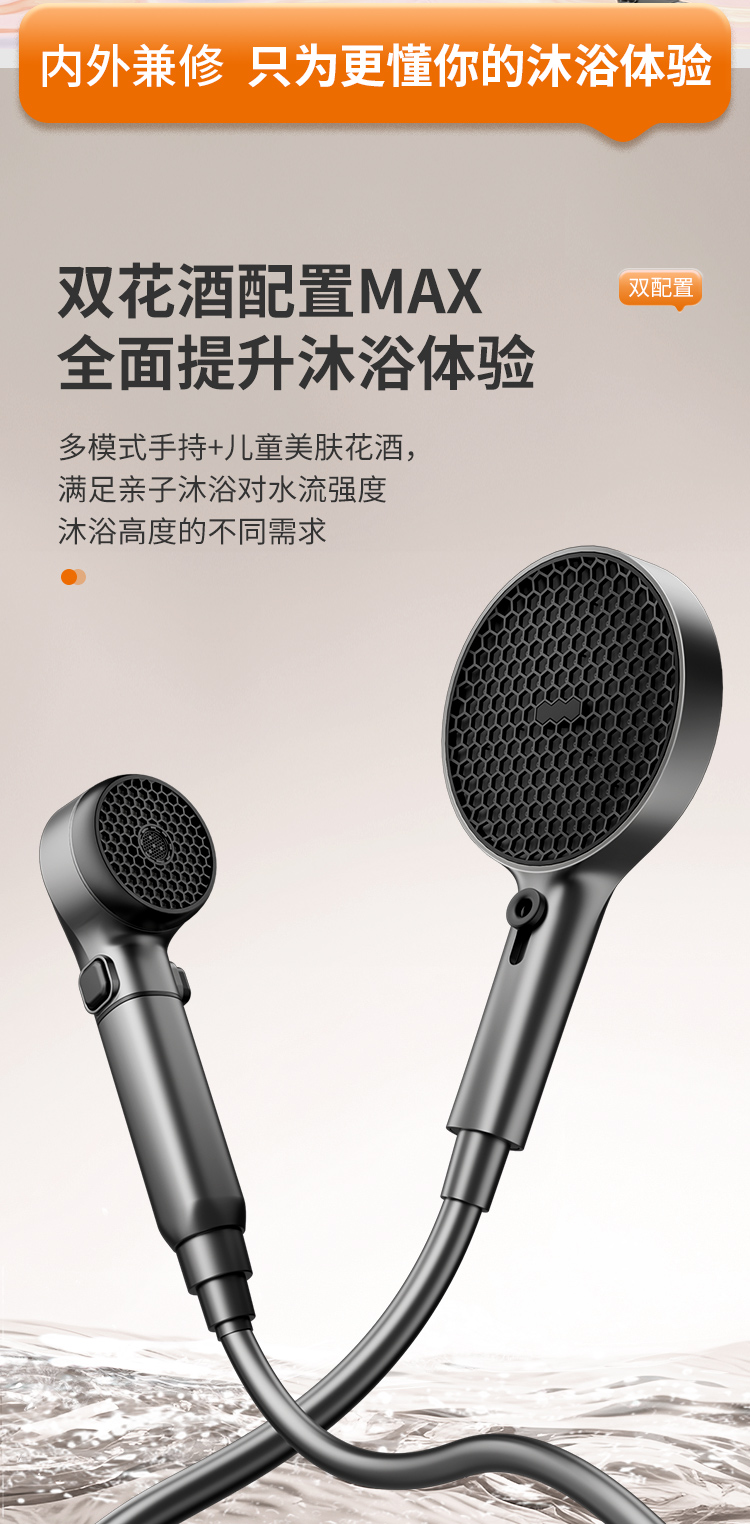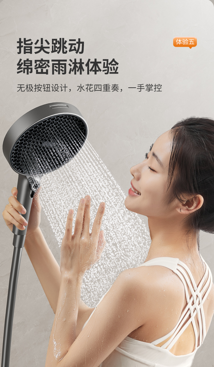 卡贝枪灰花洒家用淋浴套装卫生间氛围灯淋雨喷头浴室恒温数显花洒