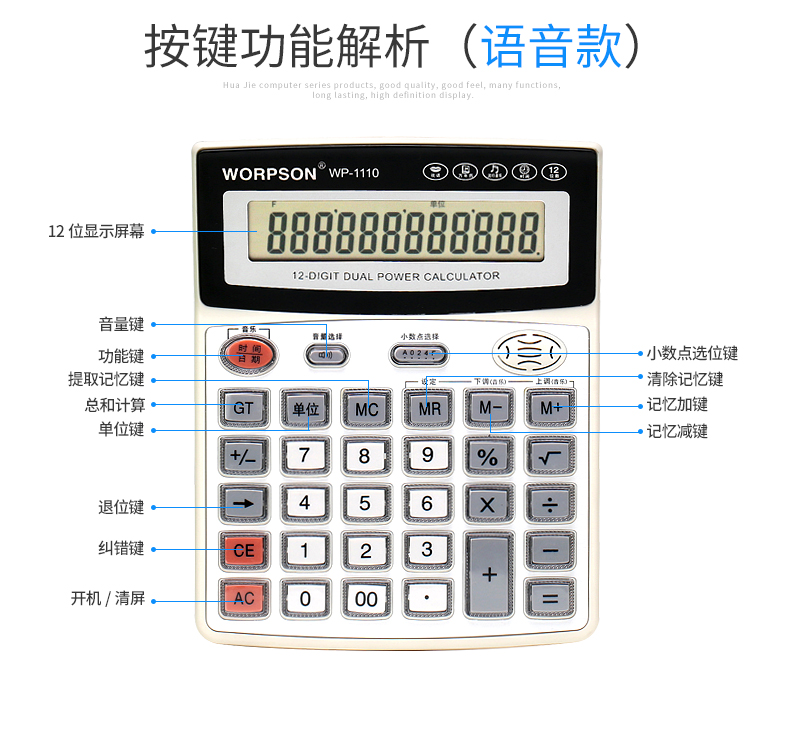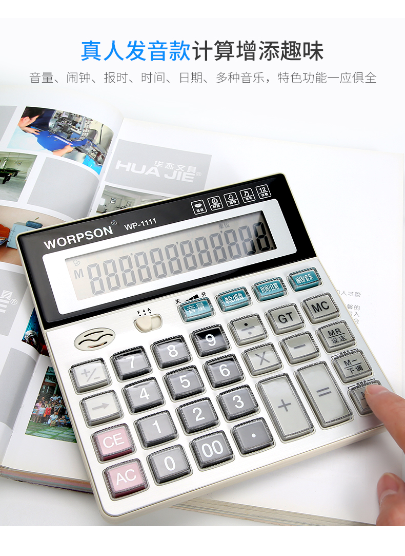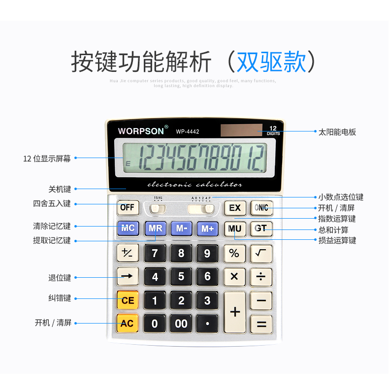 华杰计算器办公用大号学生太阳能科学计算机器小号便携小型网红可爱带语音财务会计大学一建考试专用计算机