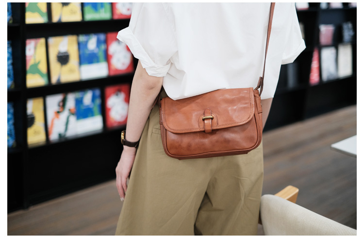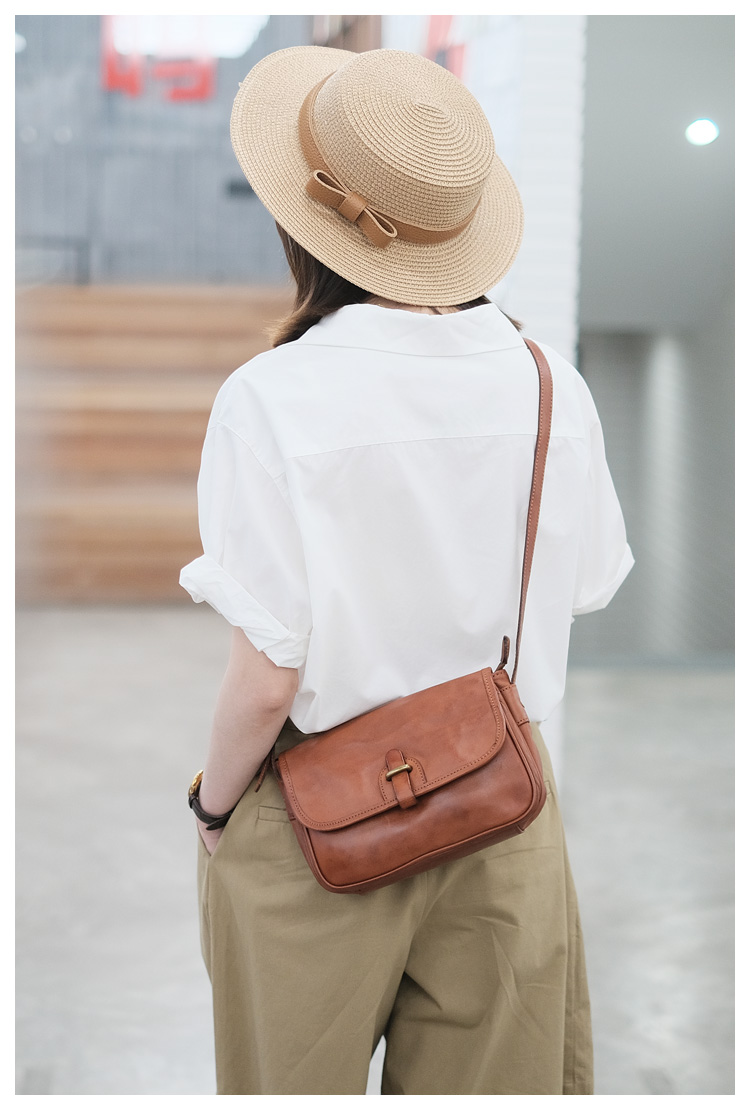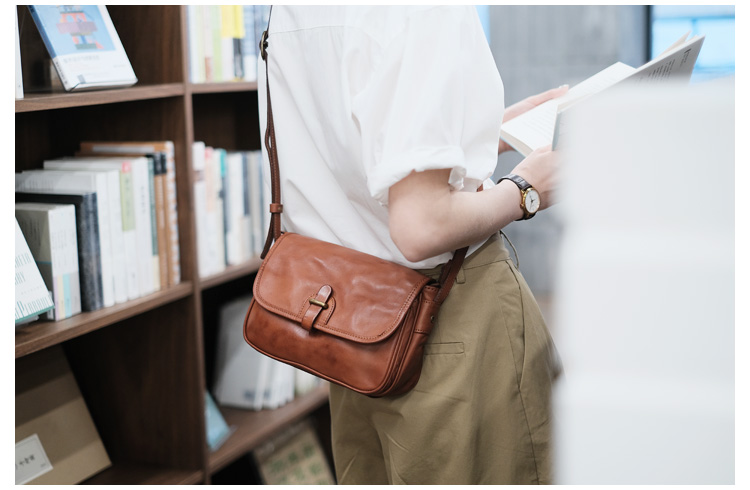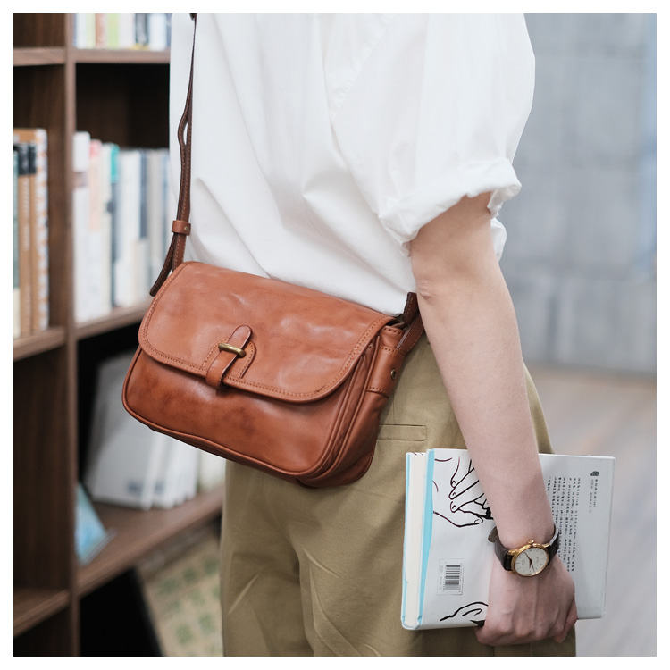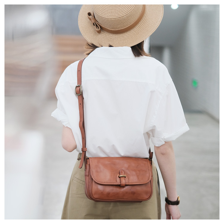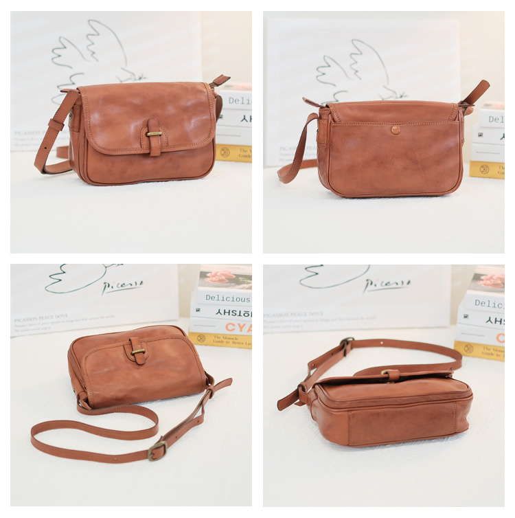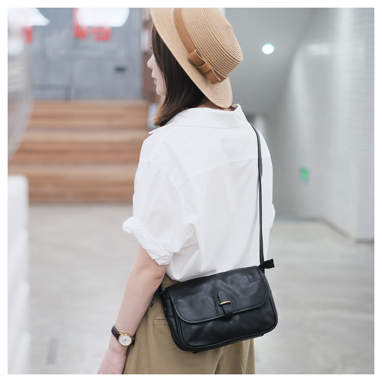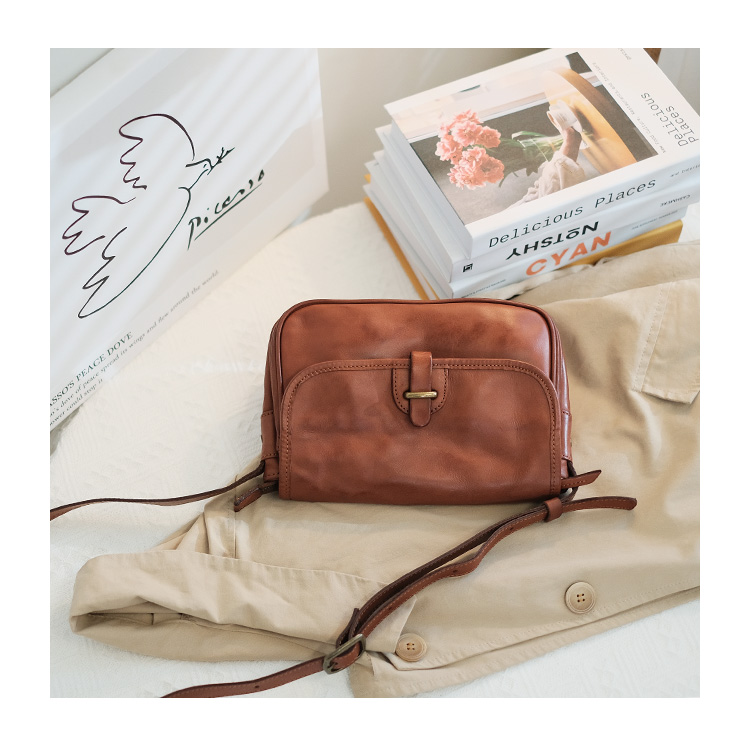 葱木 质感通勤真皮复古小方包斜挎包女 牛皮单肩日系邮差包ins风