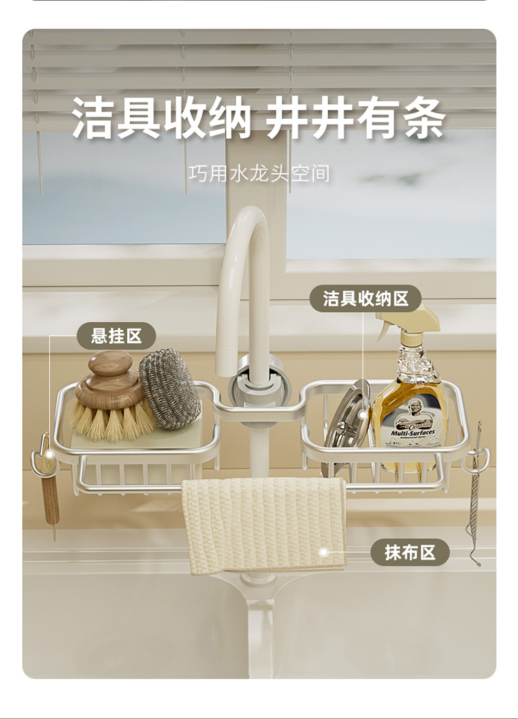物鸣厨房水龙头置物架洗碗洗菜池水槽架沥水篮钢丝球海绵收纳架子