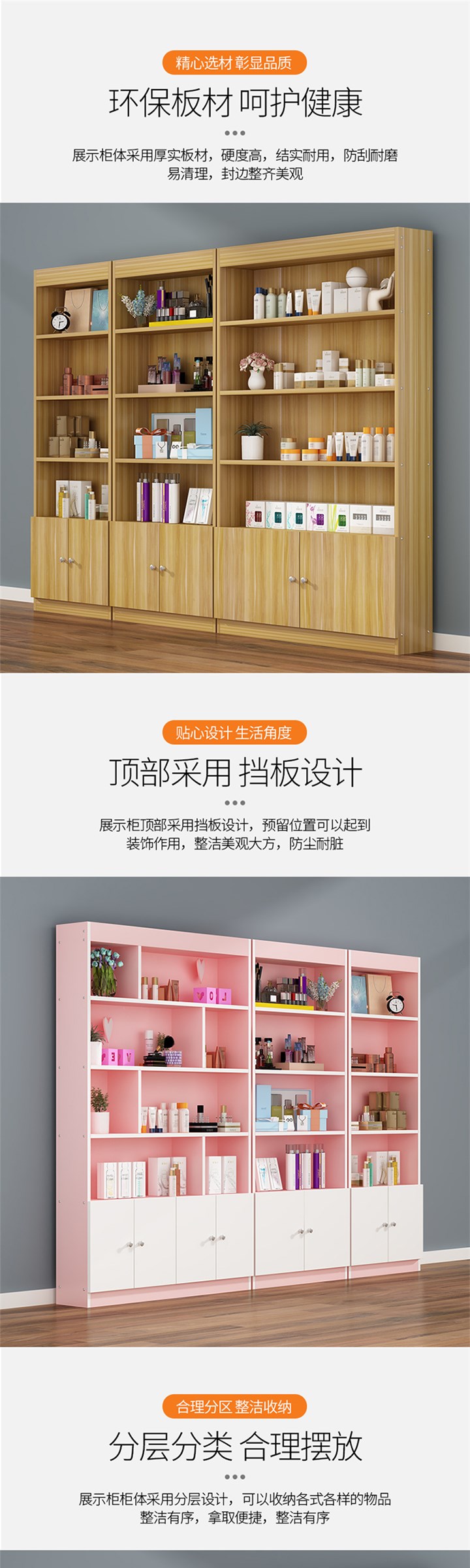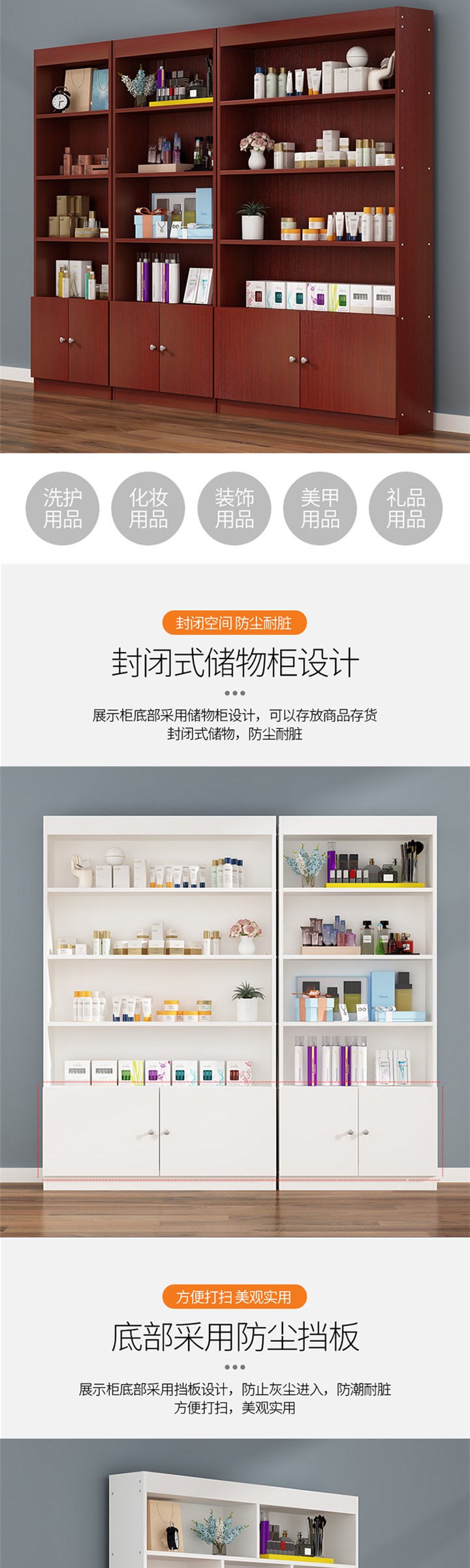 护肤品展示柜美甲柜子落地多功能彩妆小货架化妆品柜美容院产品柜