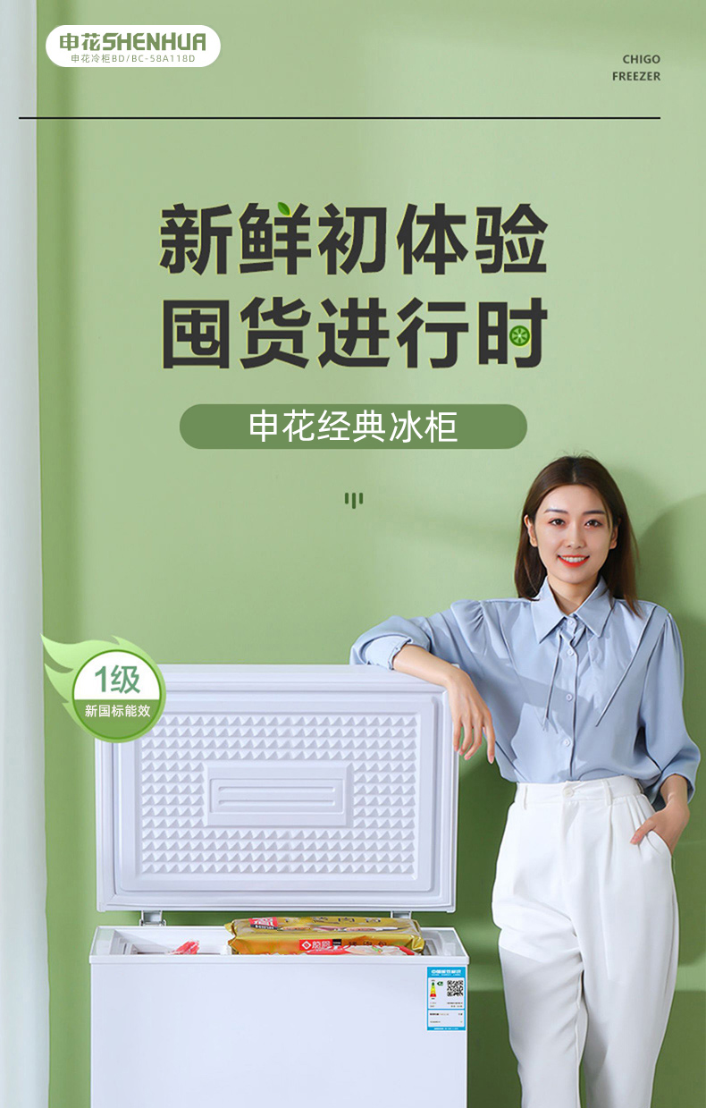 申花一级节能小冰柜全冷冻箱冷藏转换家用小型两用无霜商用冷柜