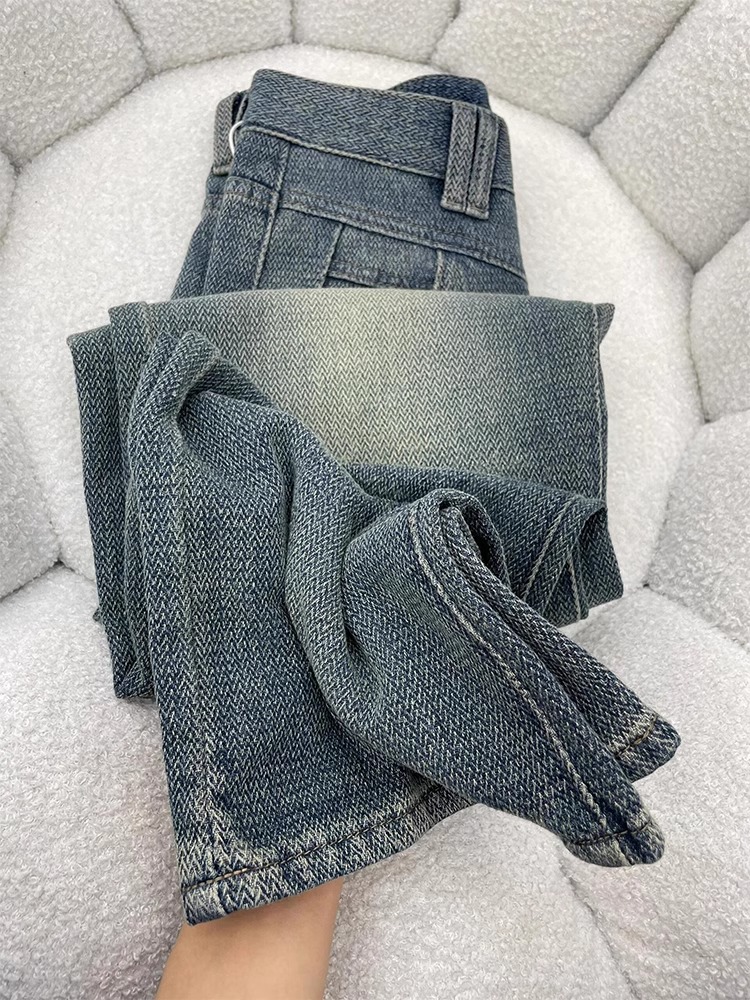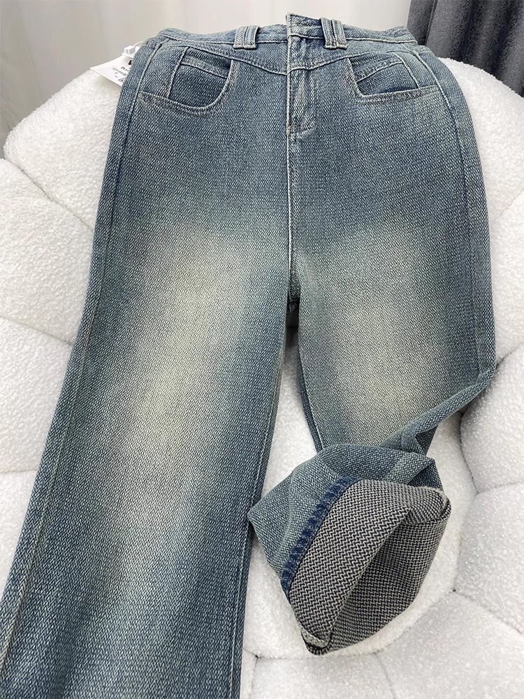 星空纹麦穗牛仔裤女春季胖妹妹mm梨形身材高腰遮胯显瘦阔腿长裤子