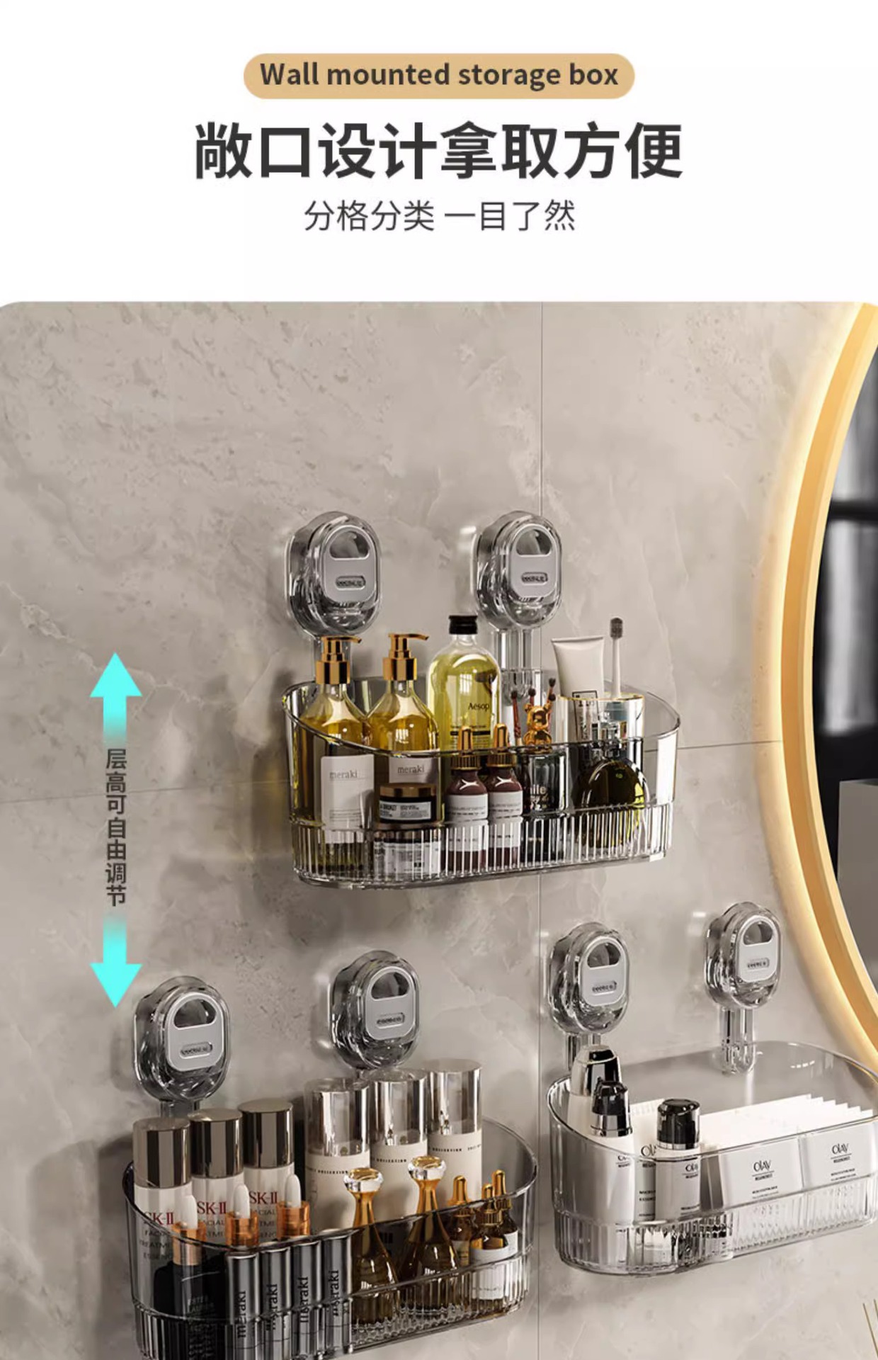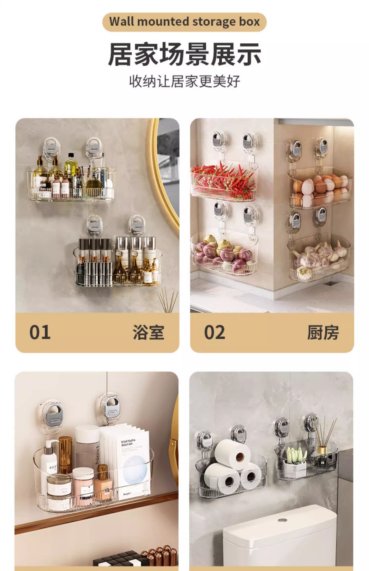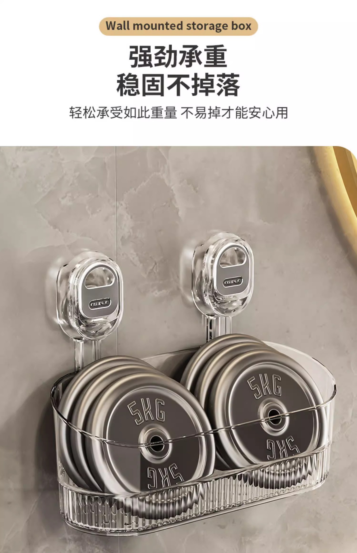 吸盘置物架浴室卫生间厕所墙免打孔壁挂收纳盒_HT5
