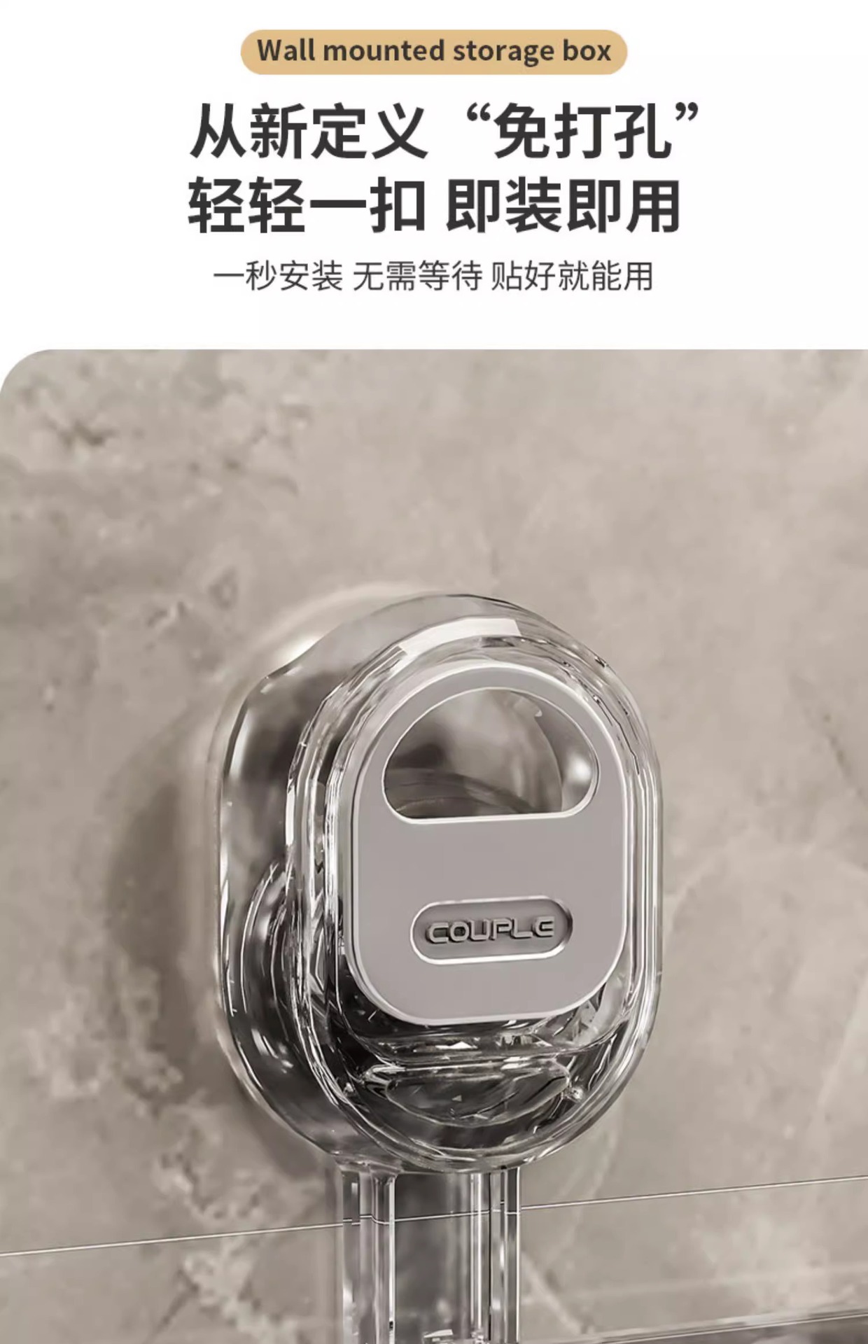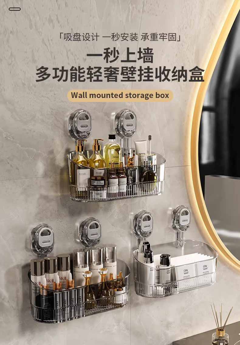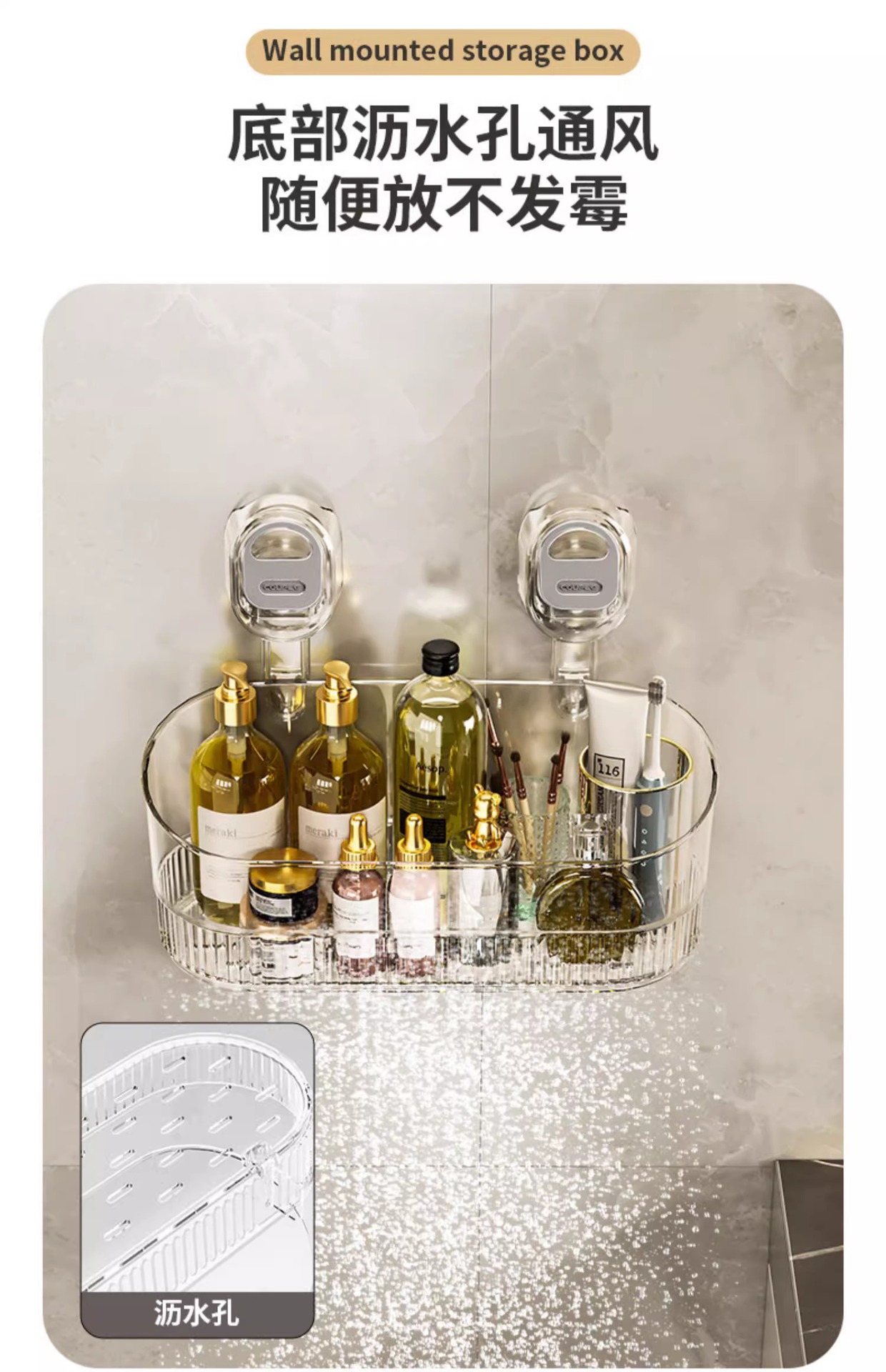 吸盘置物架浴室卫生间厕所墙免打孔壁挂收纳盒_HT5