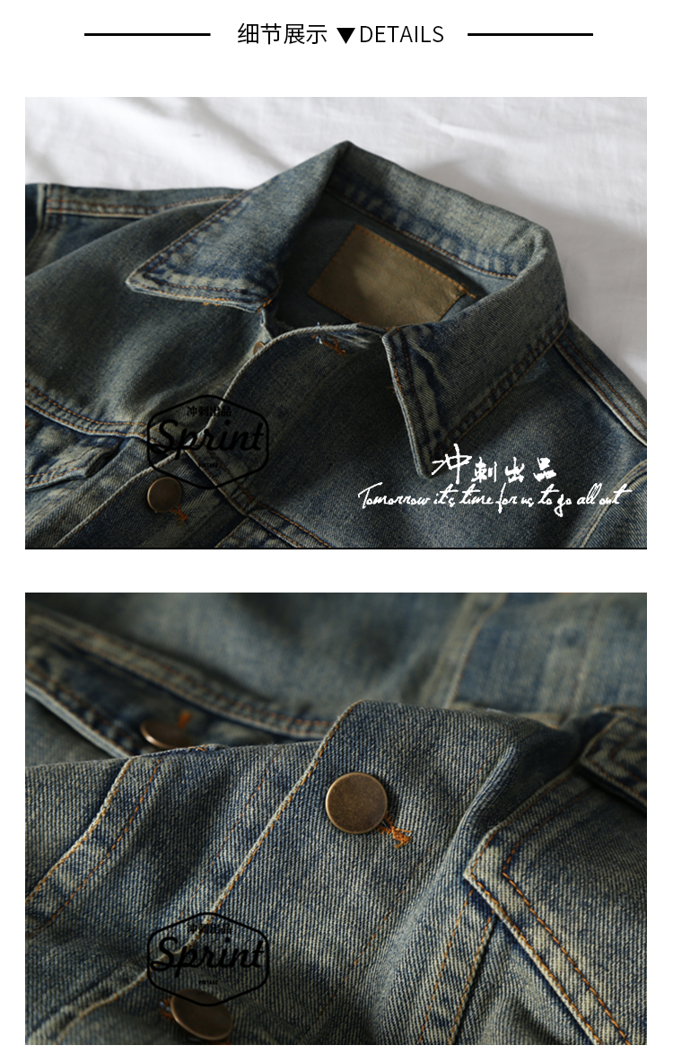 质量过硬 复古脏洗做旧石磨男士牛仔外套 经典短款男女休闲夹克衫