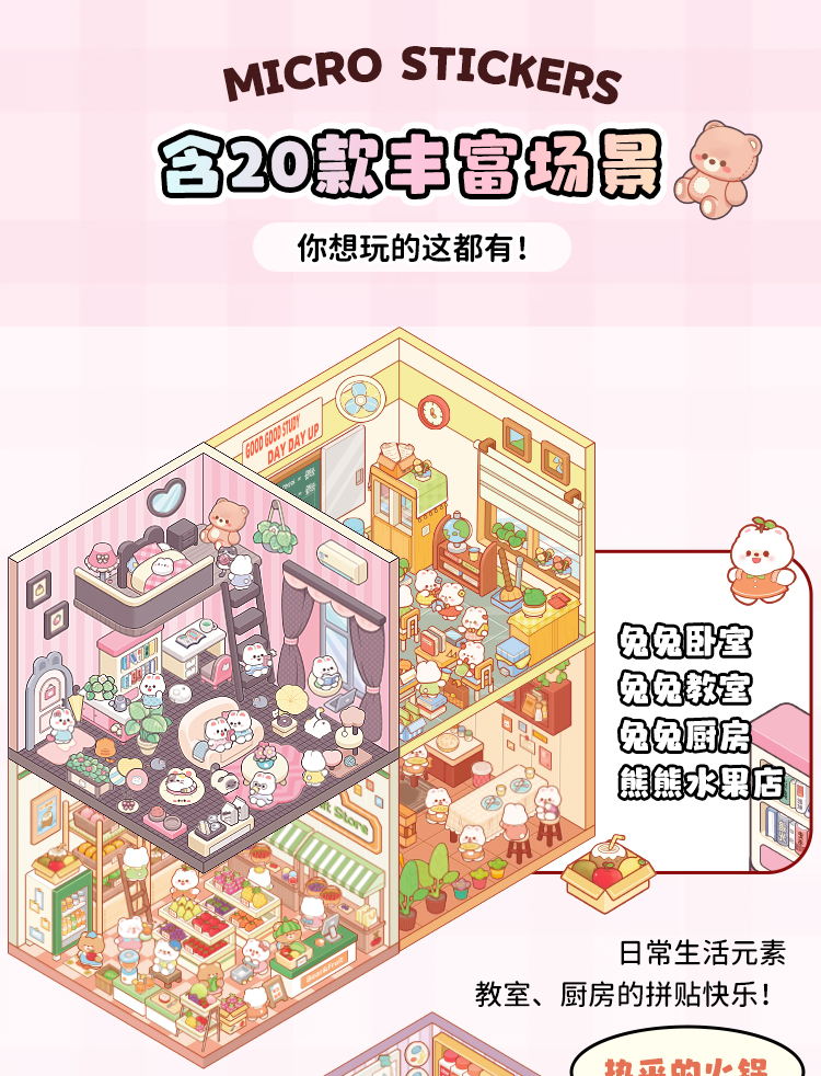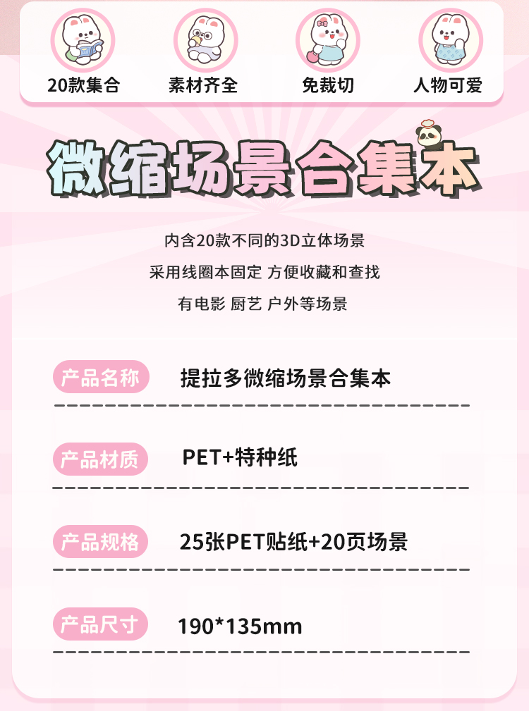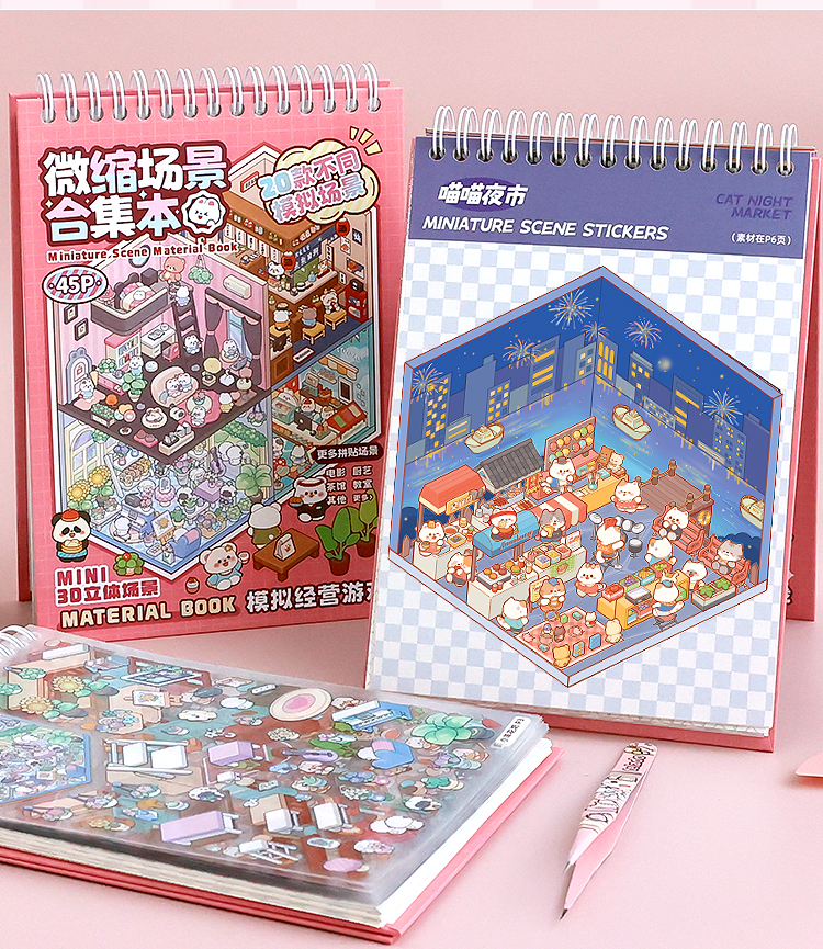 提拉多微缩场景合集本造景贴纸场景小贴纸3D立体视觉微缩小屋女孩儿童益智玩具diy手帐贴纸装饰素材创意贴画