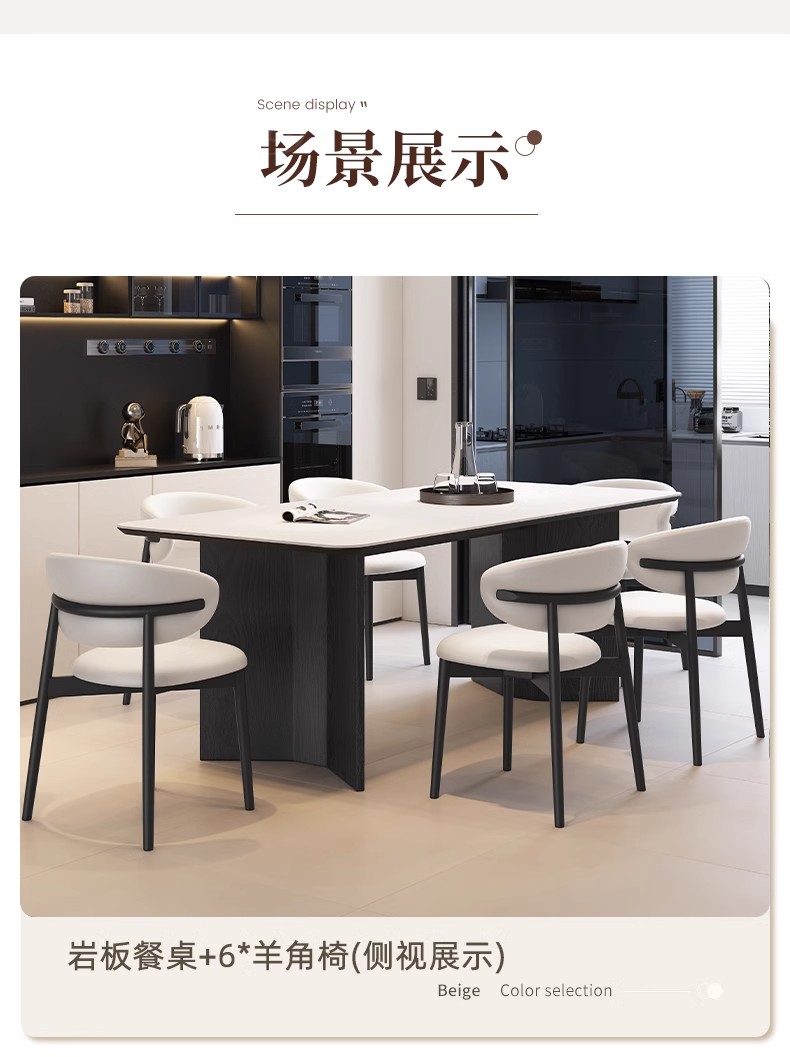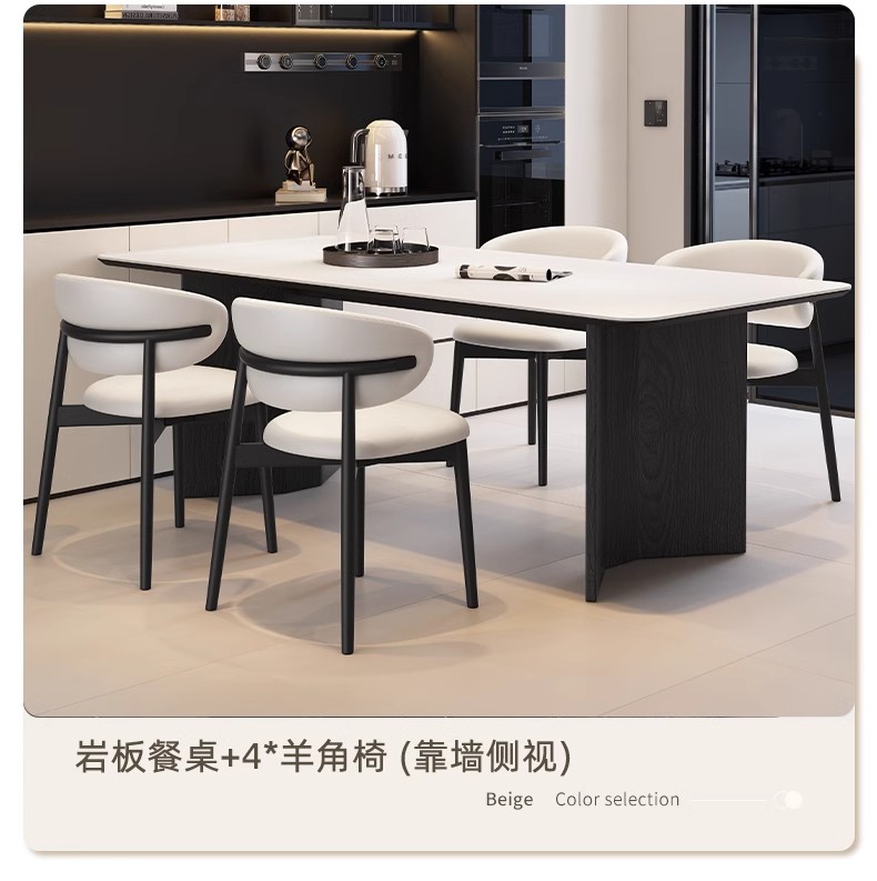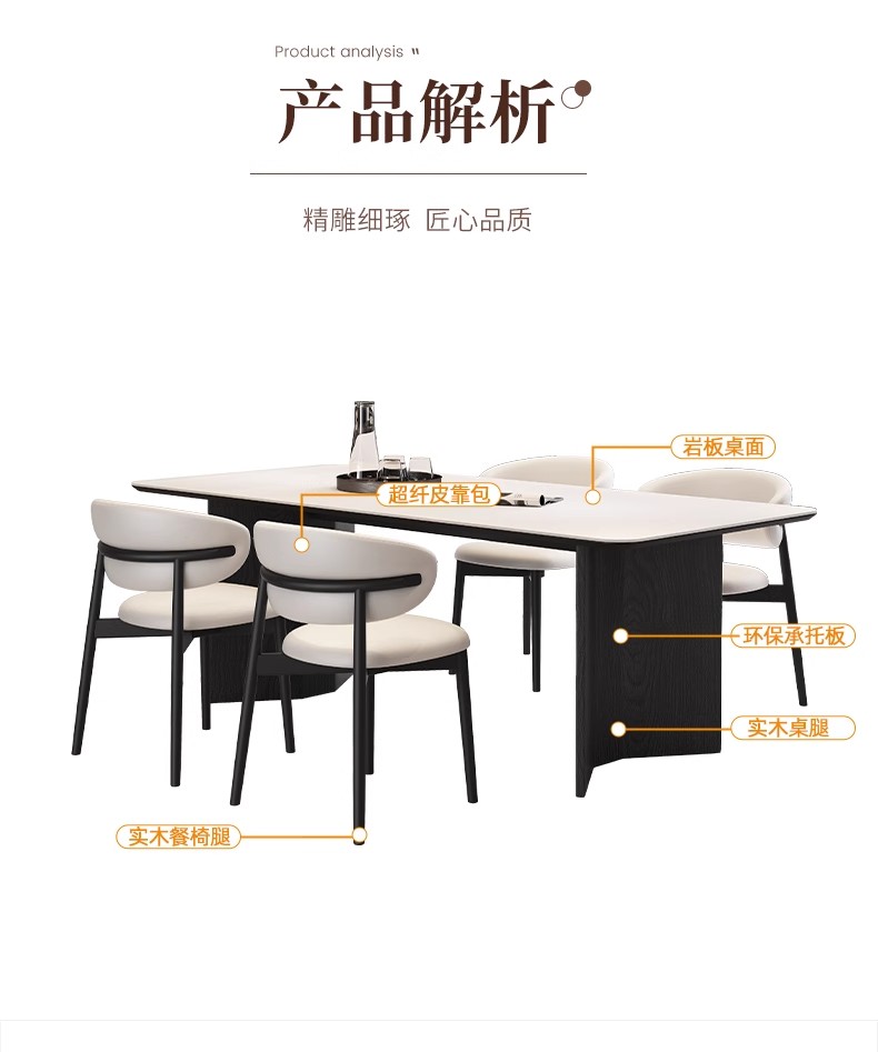 实木意式岩板餐桌椅餐桌组合饭桌小户型家用长方形现代简约桌子
