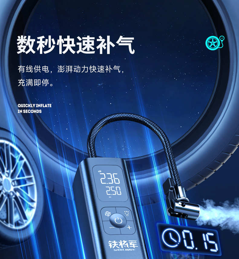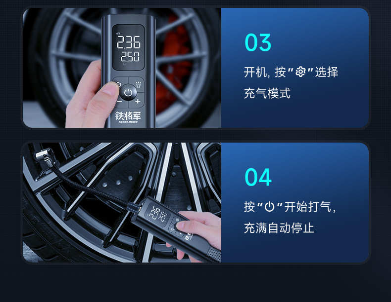 铁将军车载充气泵便携式车用轮胎电动充气球户外洗车充气泵一体机